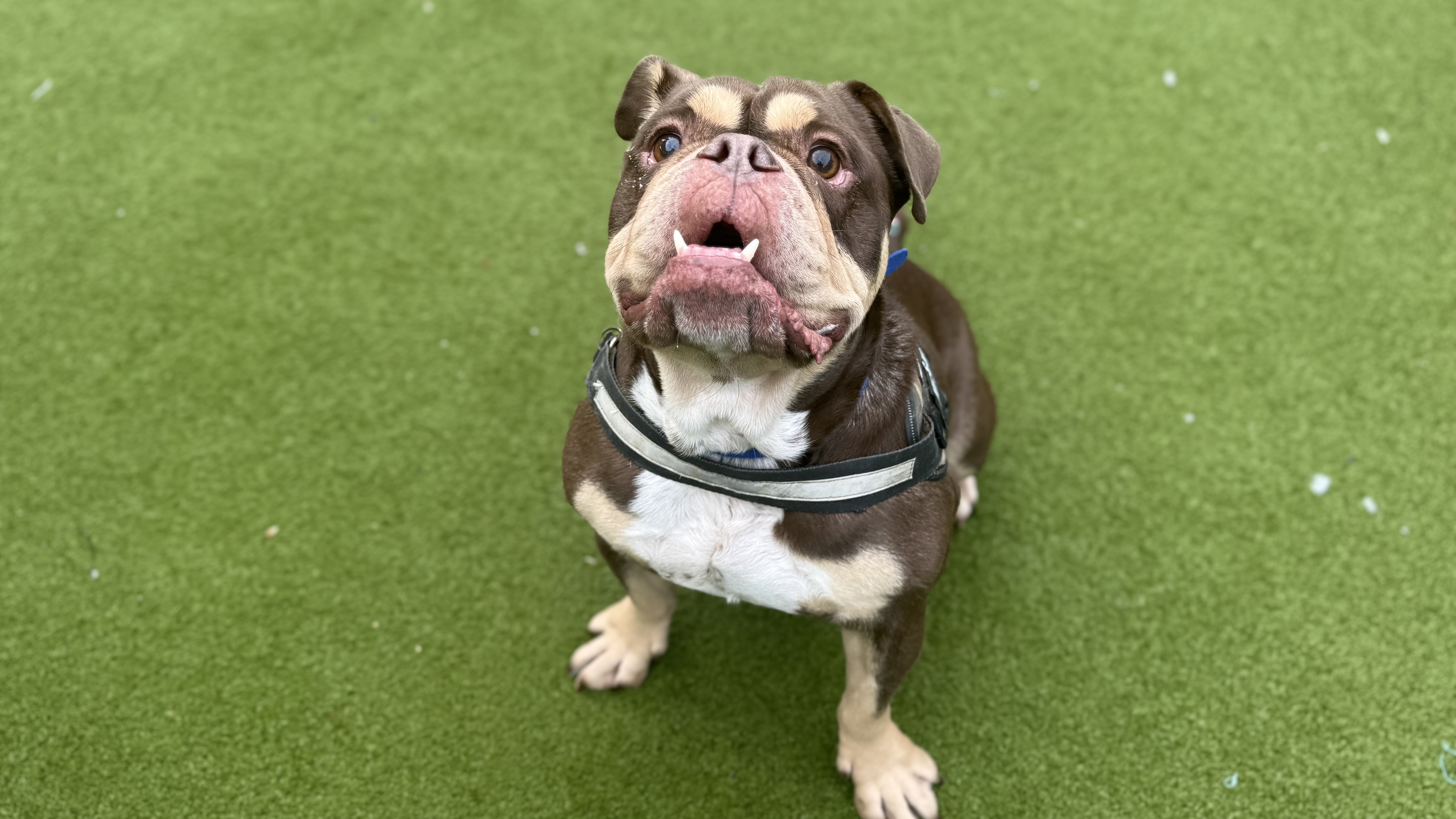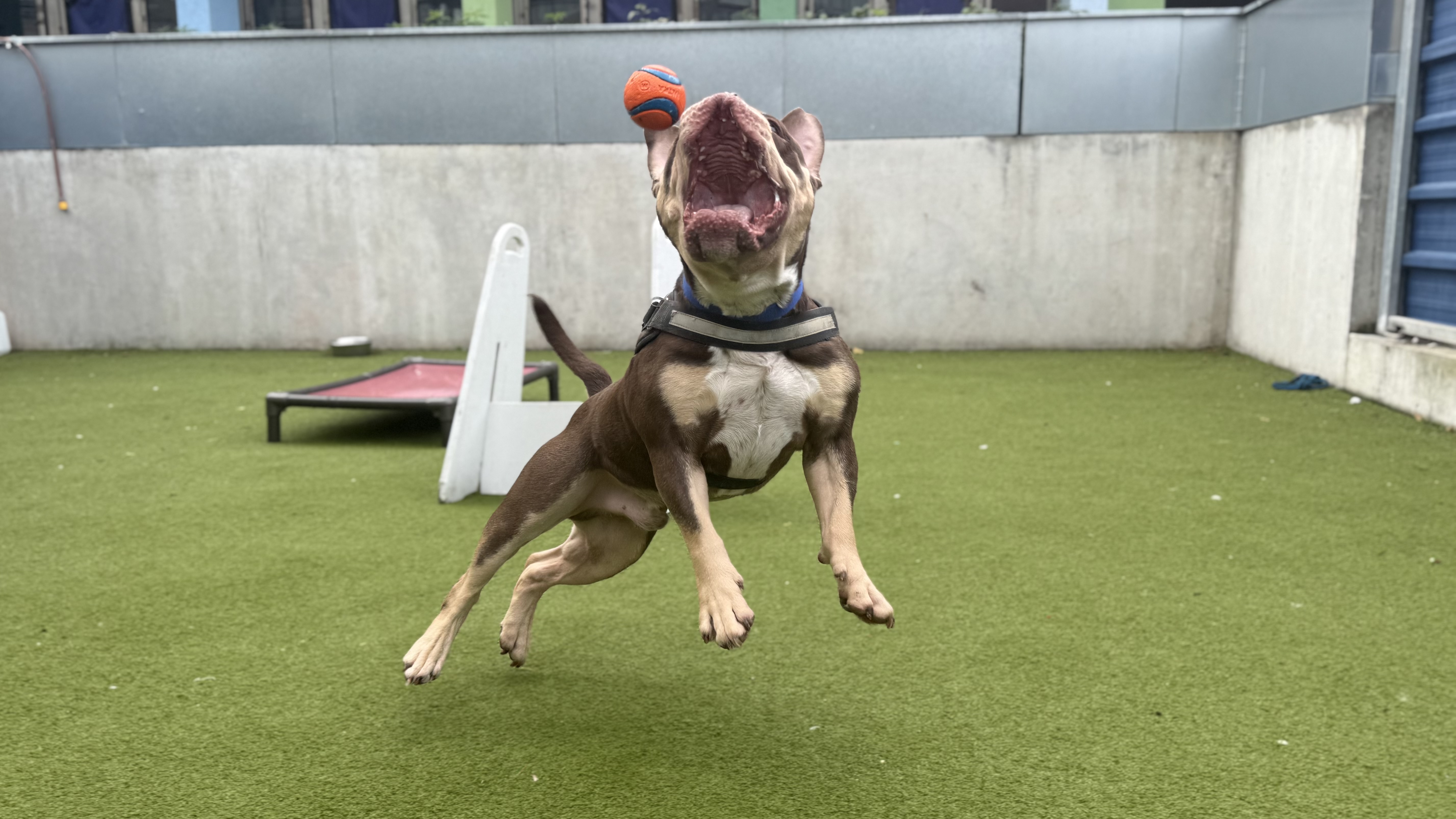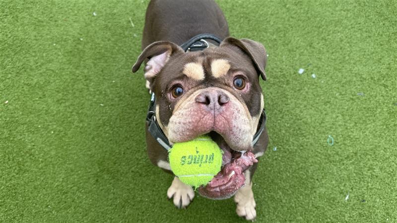 Dennis likes other dogs and has some lovely social skills in place being a friendly boy who can be playful with the right matches. He does have a very bully and bargy style of play, particularly when he's being pushed for interaction by another dog and trying to diffuse the situation!