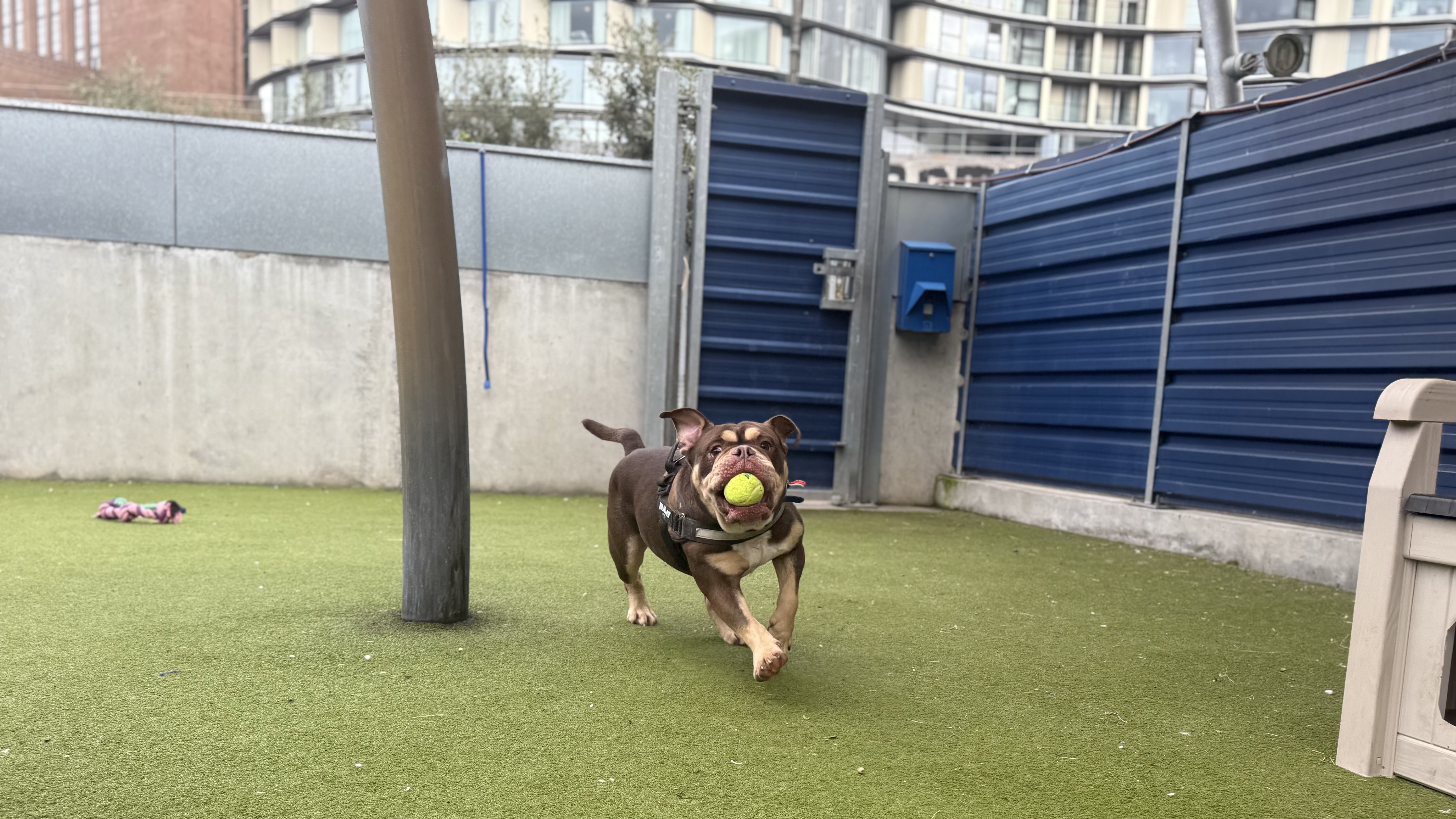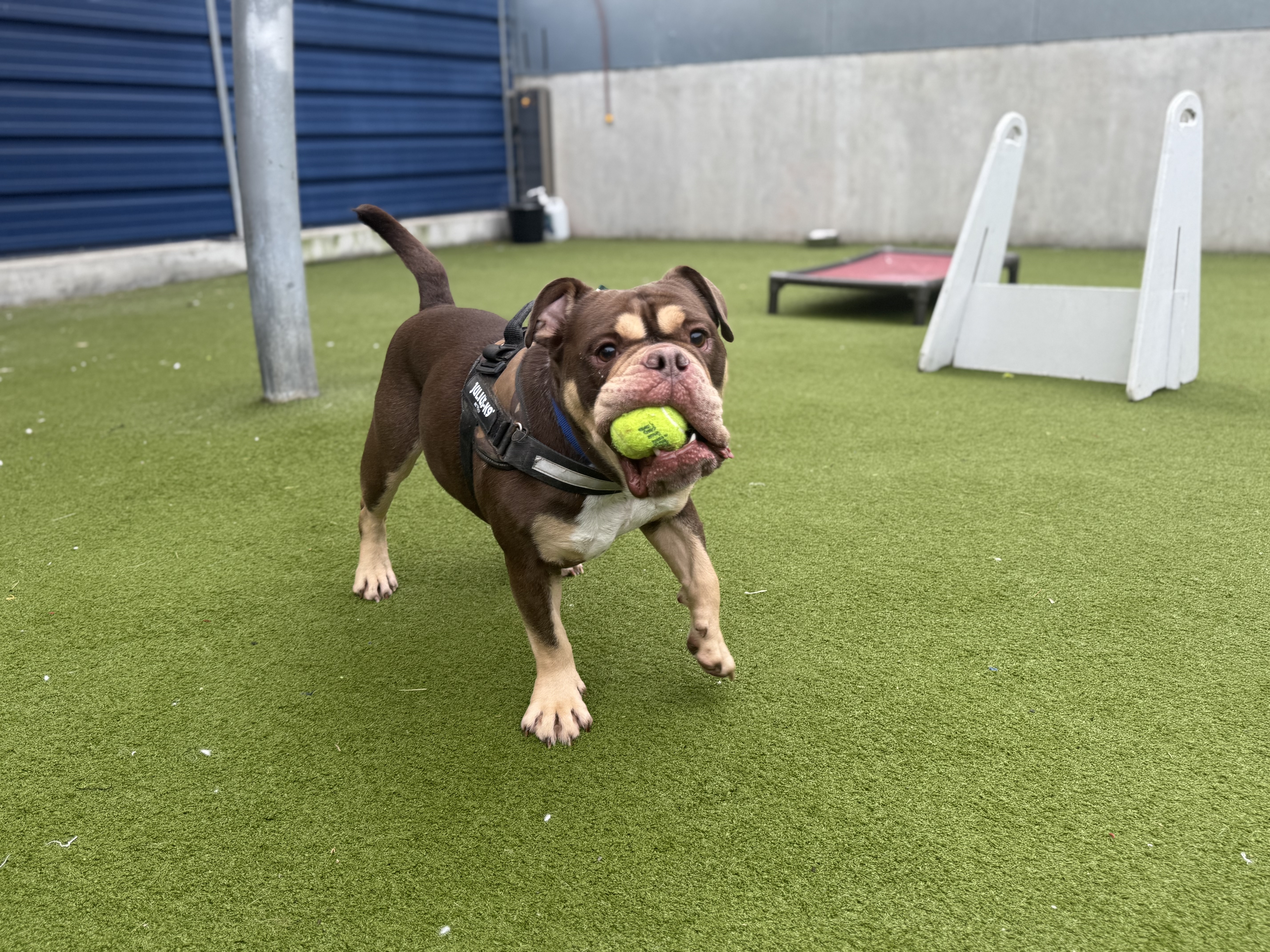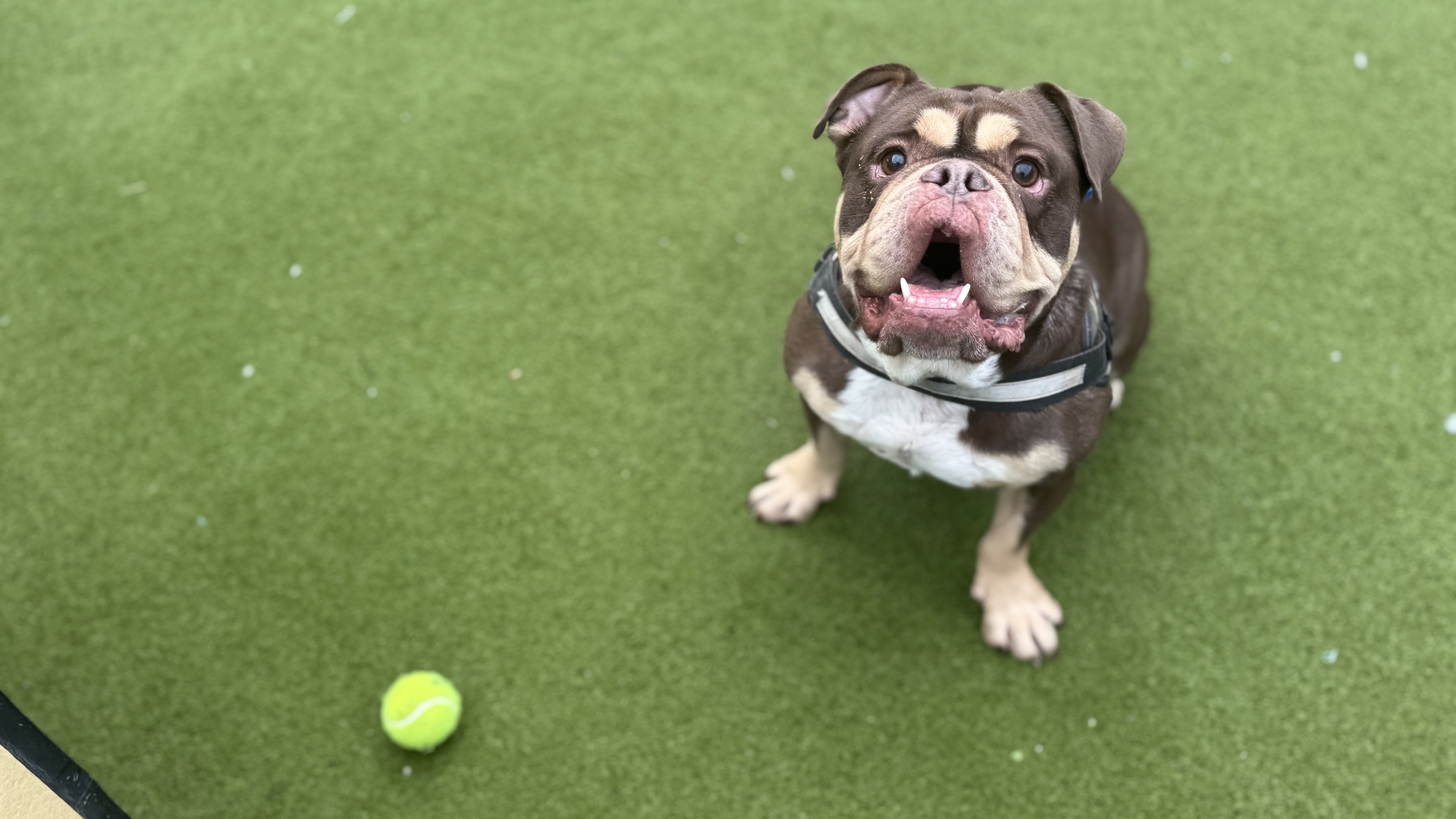 Dennis likes other dogs and has some lovely social skills in place being a friendly boy who can be playful with the right matches. He does have a very bully and bargy style of play, particularly when he's being pushed for interaction by another dog and trying to diffuse the situation!