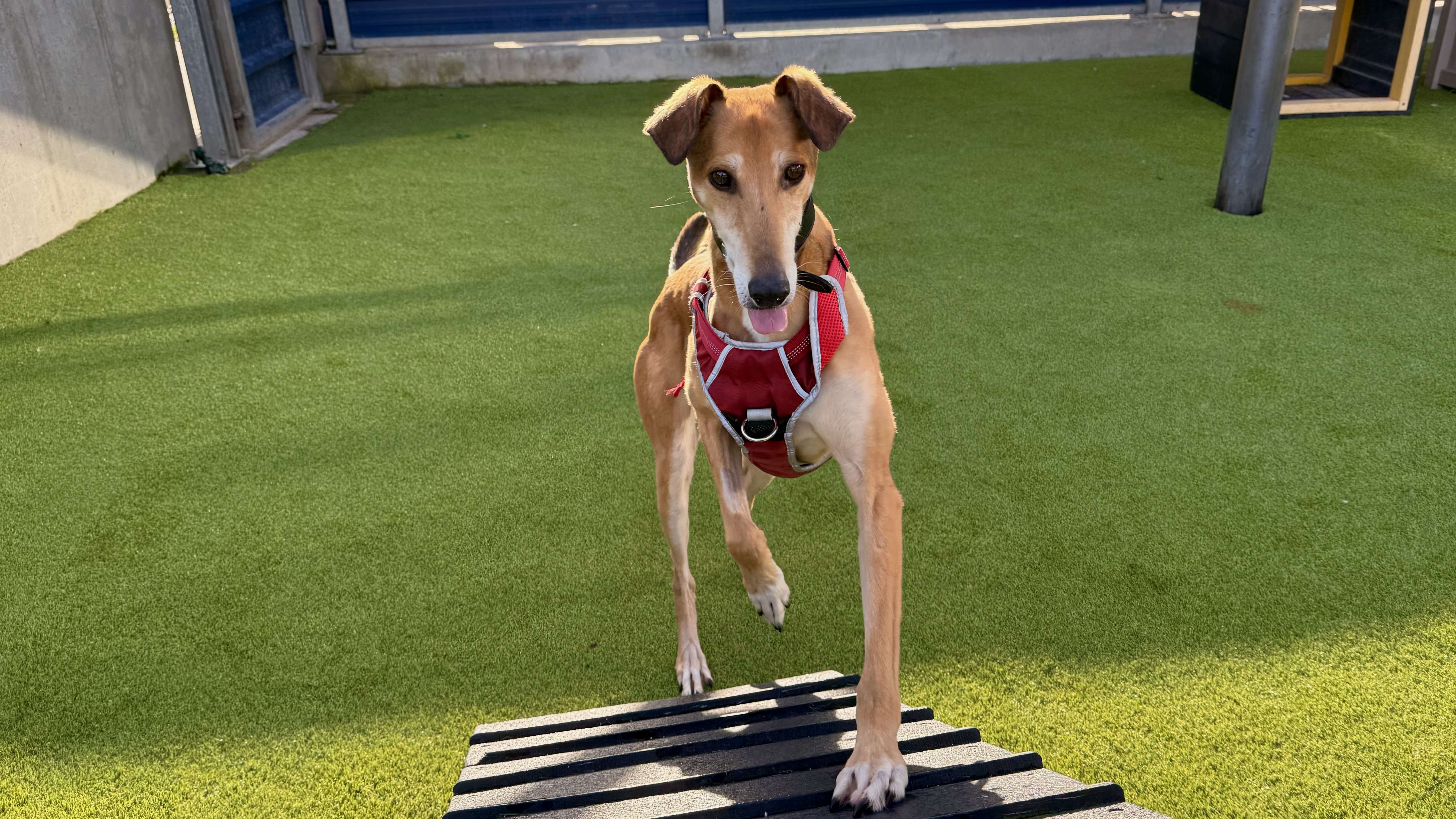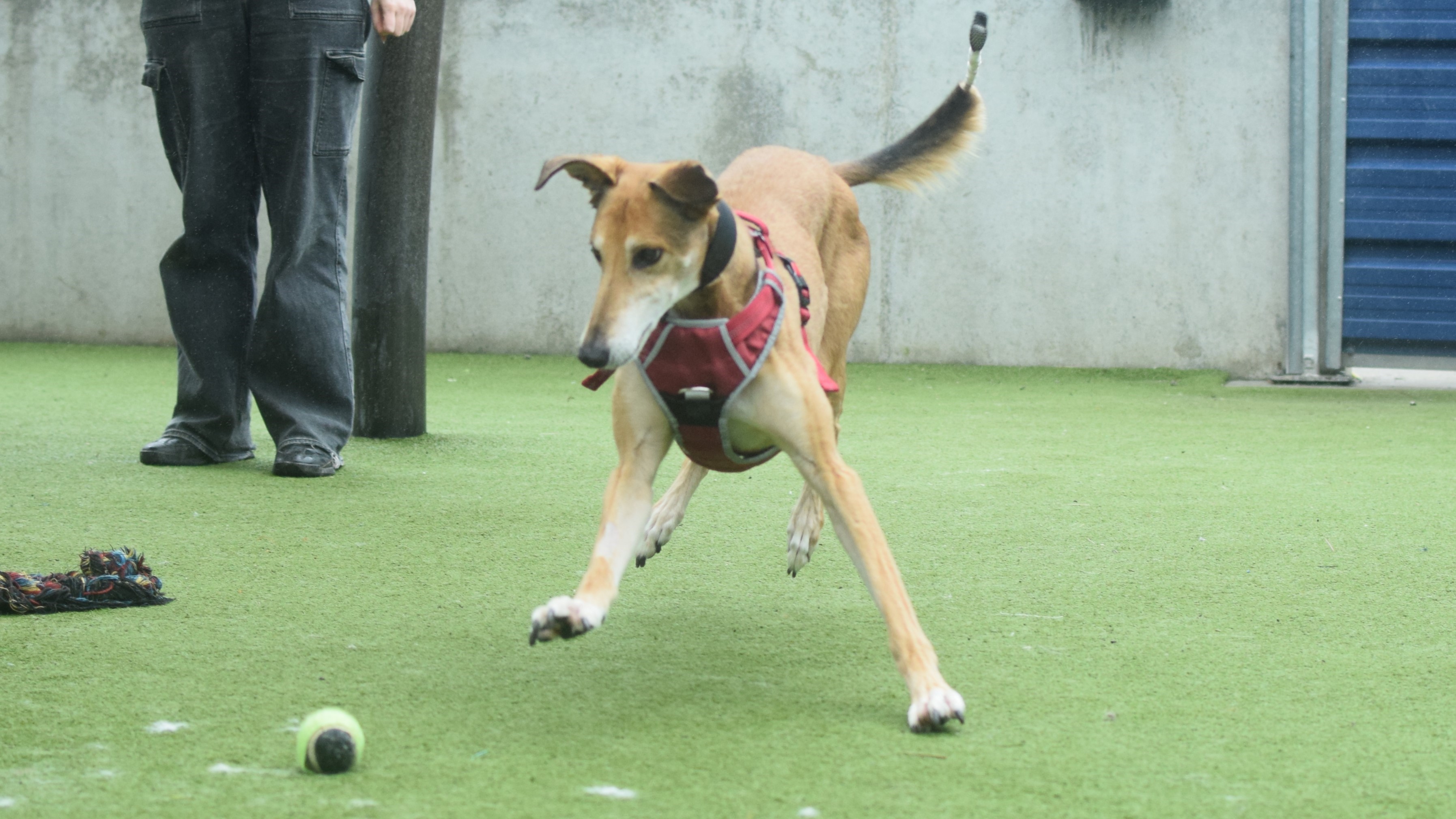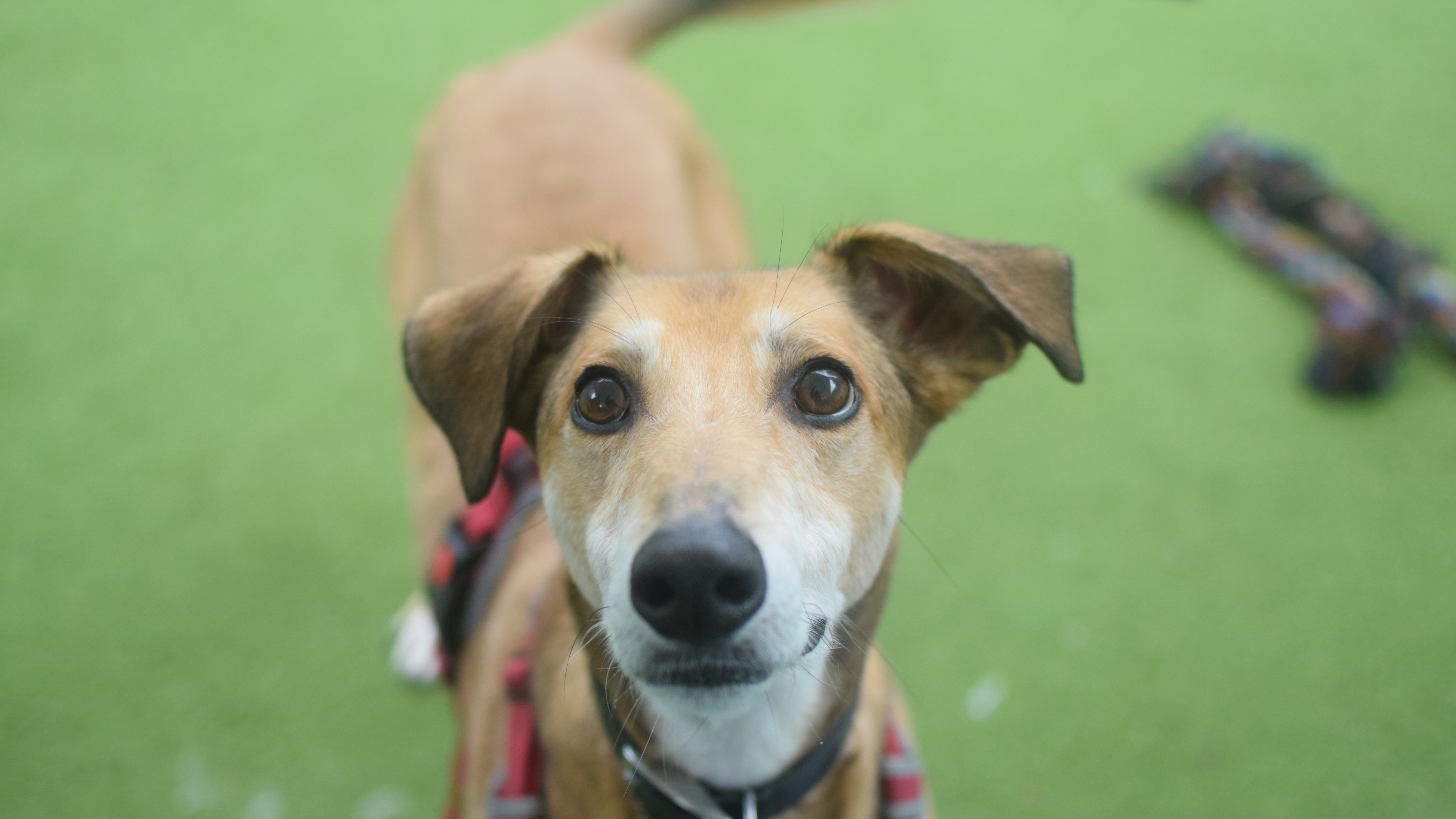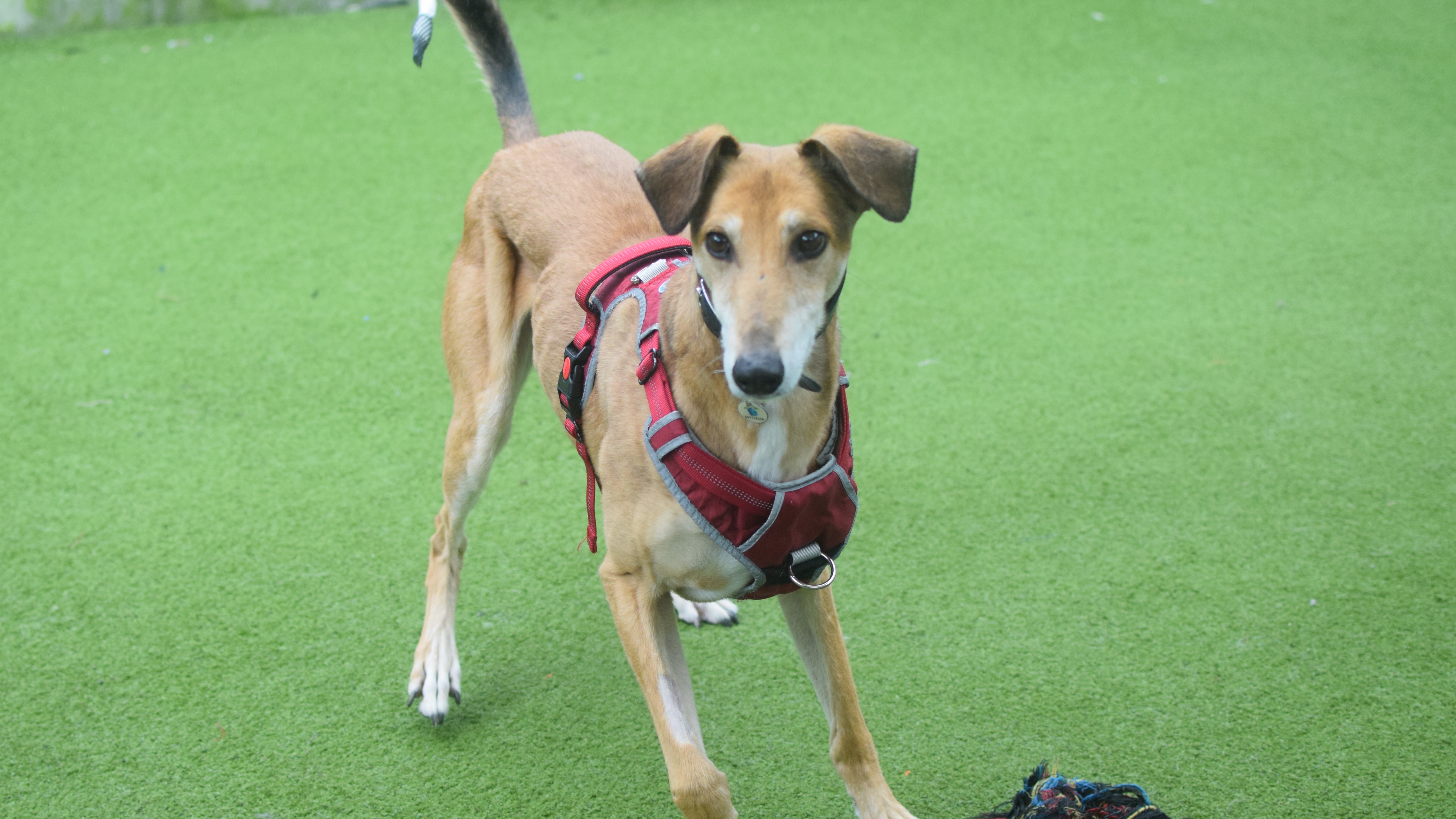 Dimitri has shown some lovely social behaviours on lead around other dogs but has struggled with off lead interactions. He is keen to play, but on his terms and is quick to tell off. He is not currently looking to live with another dog but would benefit from local dog friends!