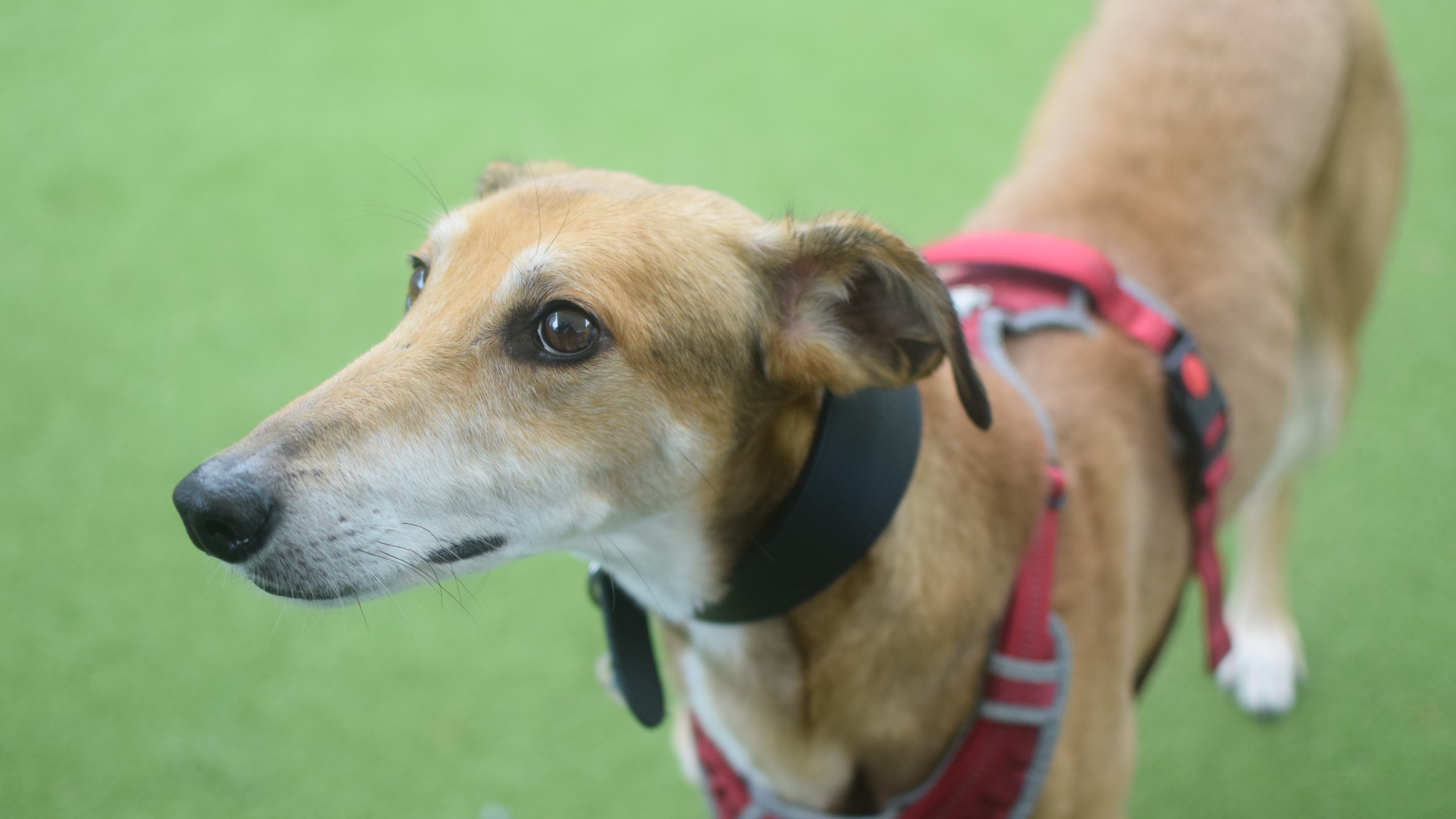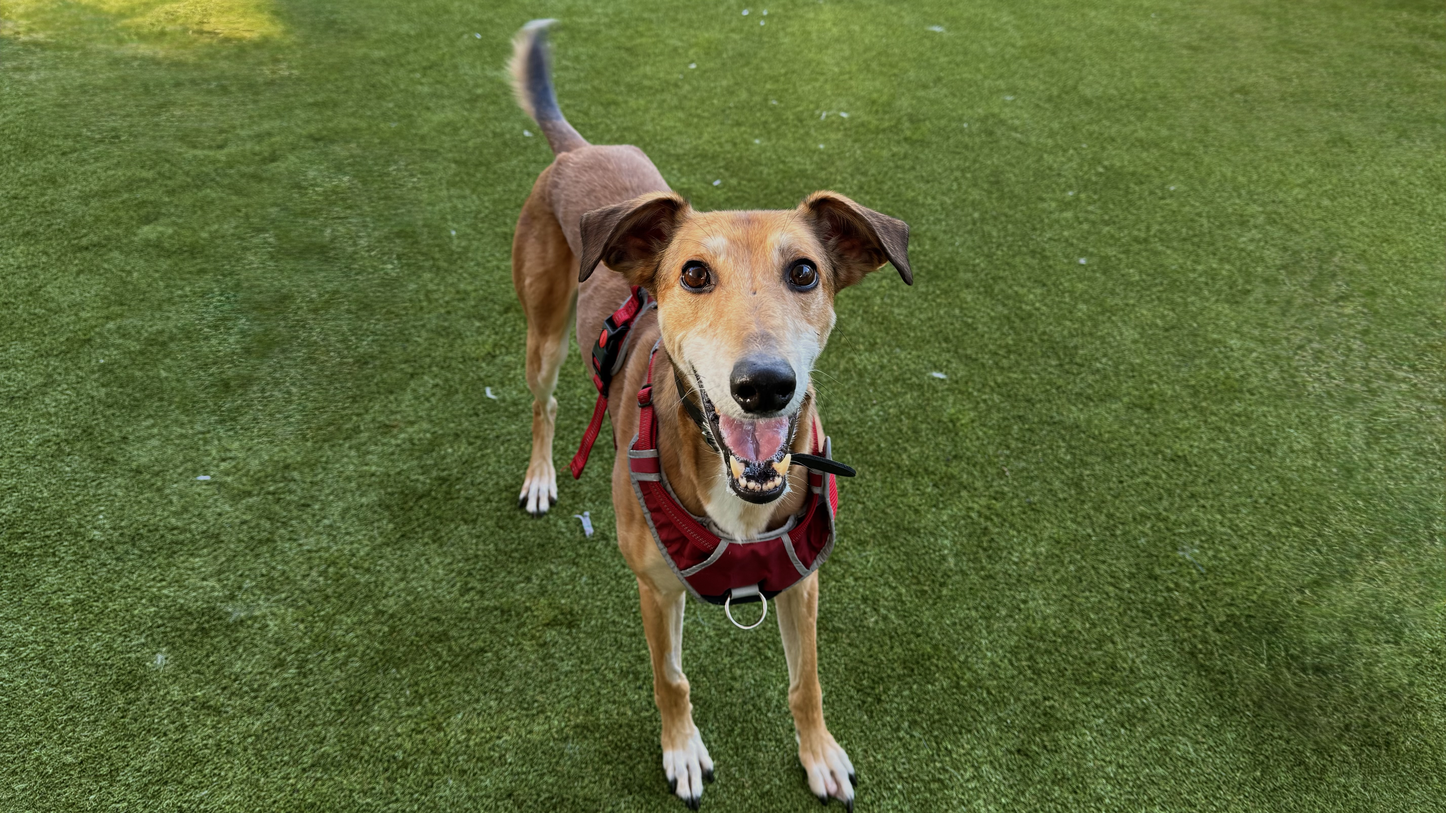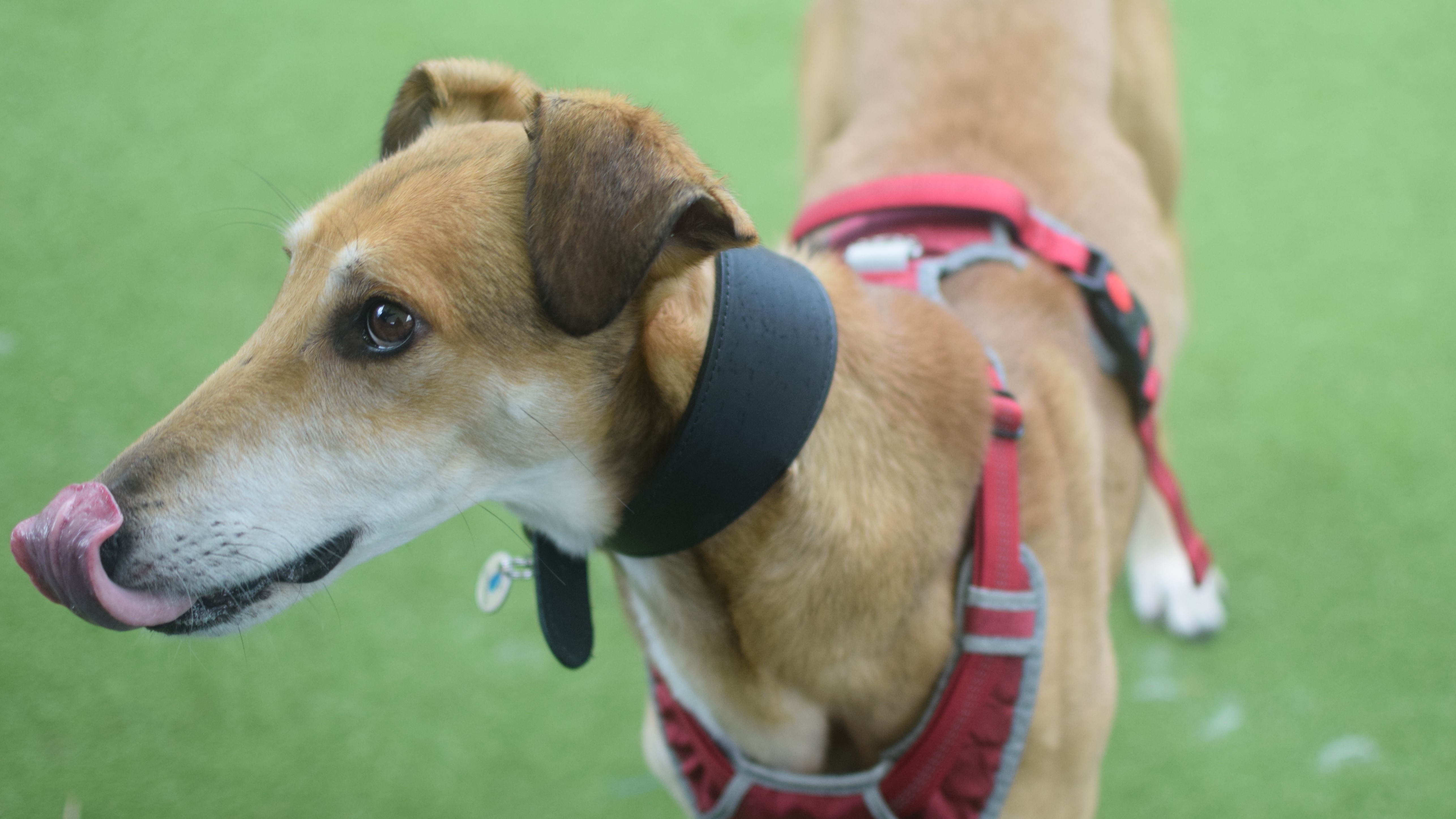 Dimitri has shown some lovely social behaviours on lead around other dogs but has struggled with off lead interactions. He is keen to play, but on his terms and is quick to tell off. He is not currently looking to live with another dog but would benefit from local dog friends!