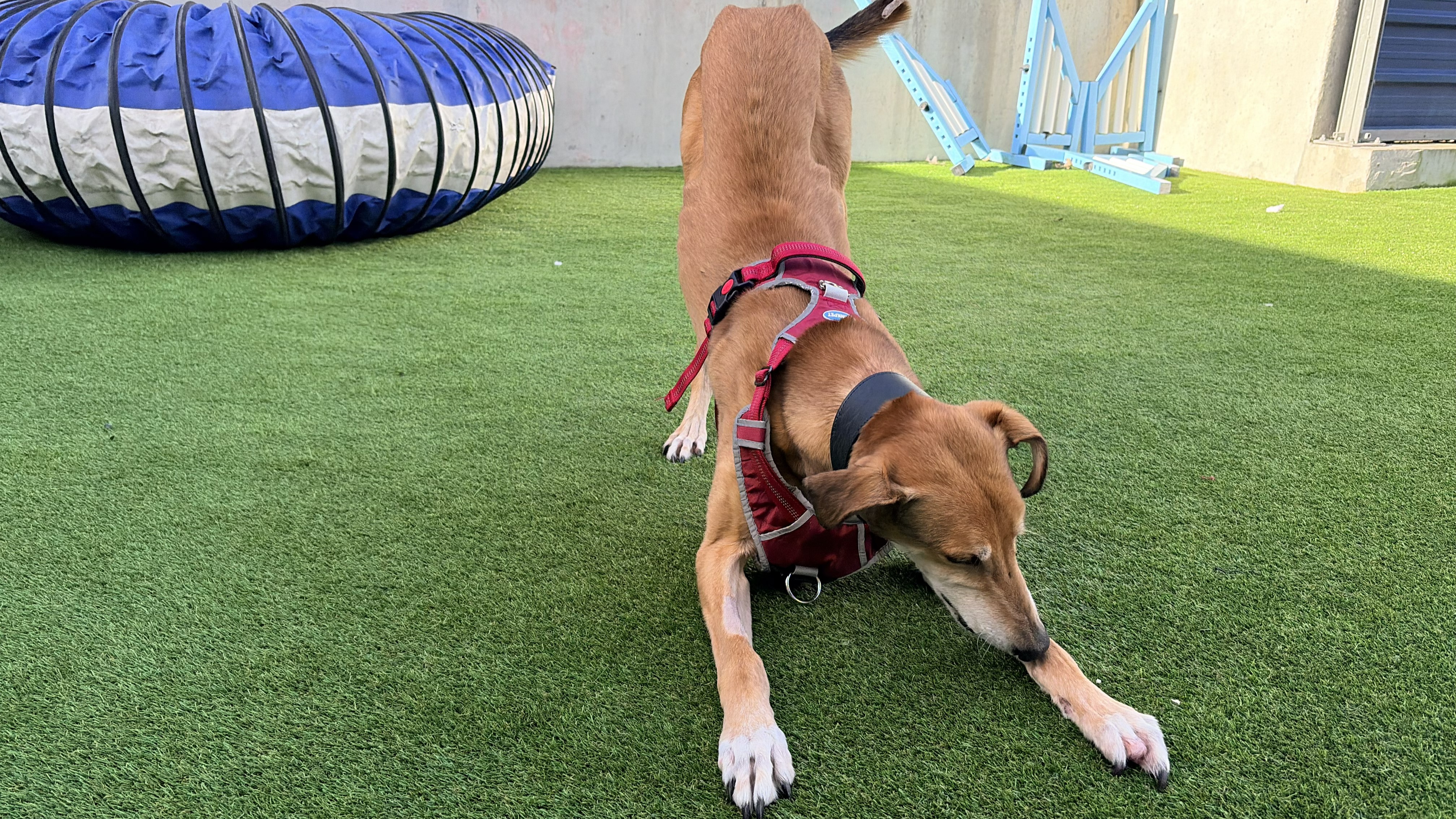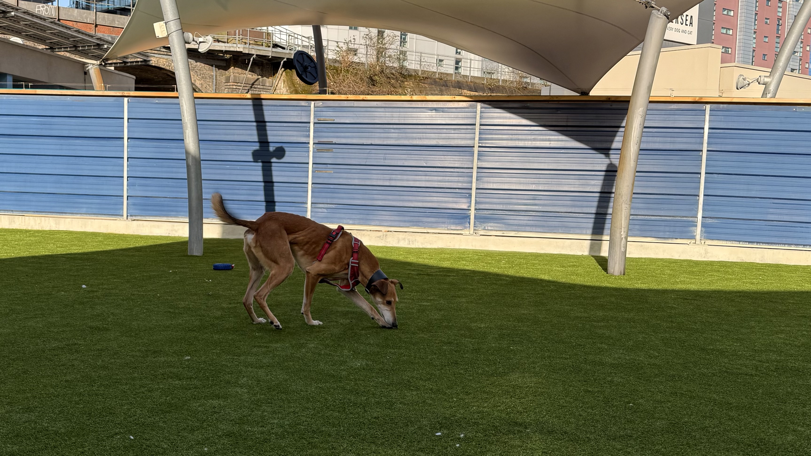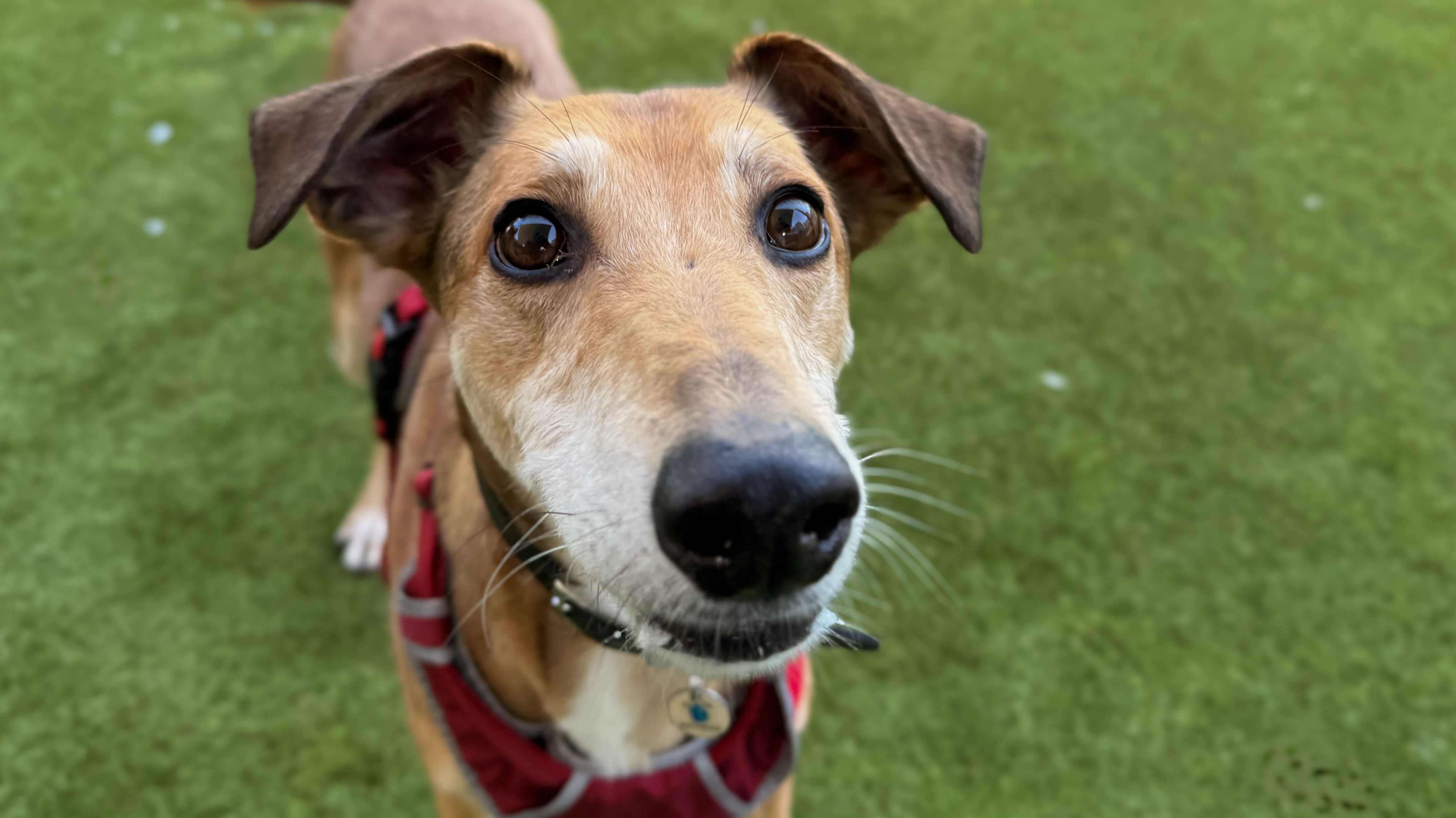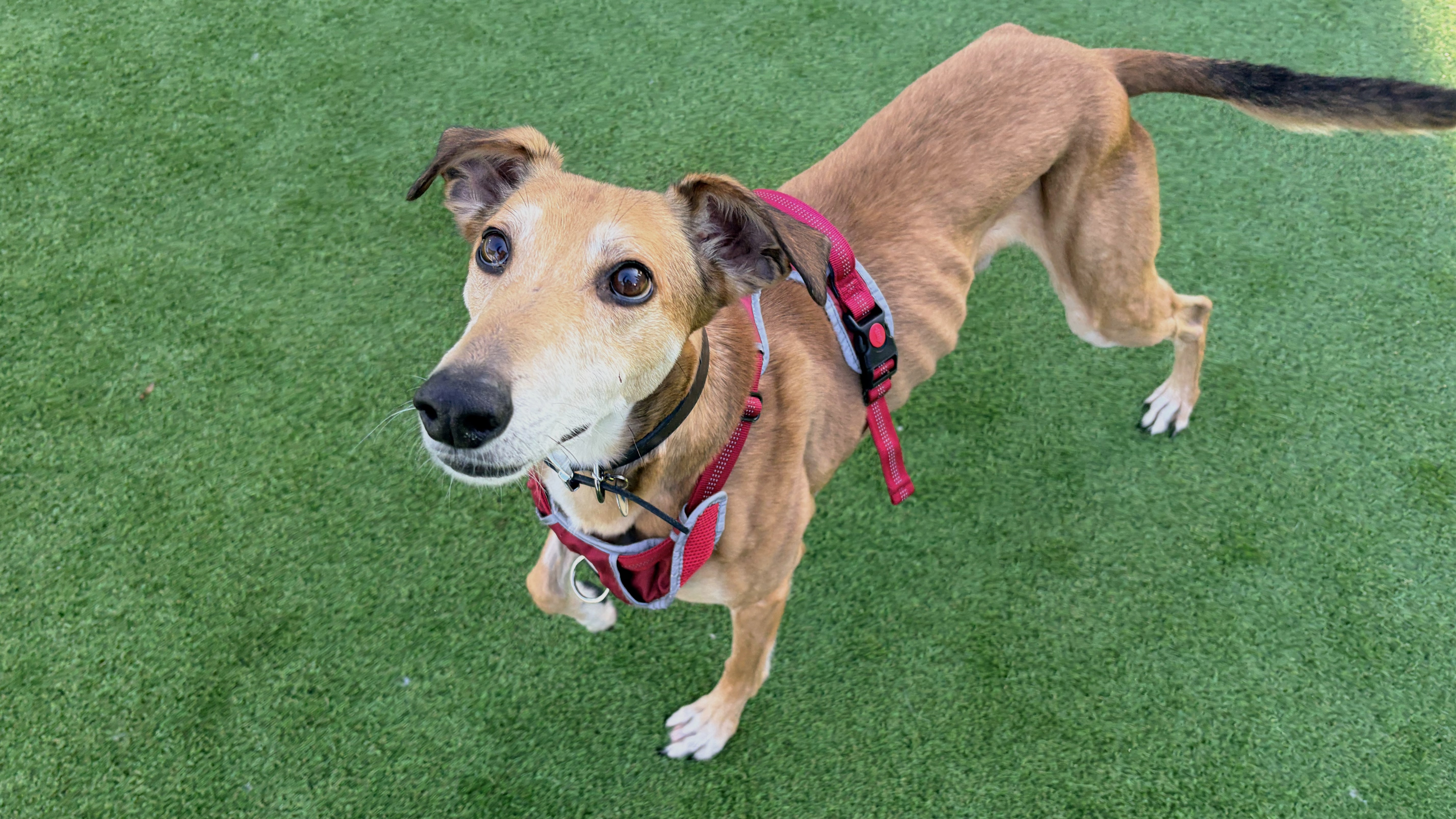 Dimitri has shown some lovely social behaviours on lead around other dogs but has struggled with off lead interactions. He is keen to play, but on his terms and is quick to tell off. He is not currently looking to live with another dog but would benefit from local dog friends!