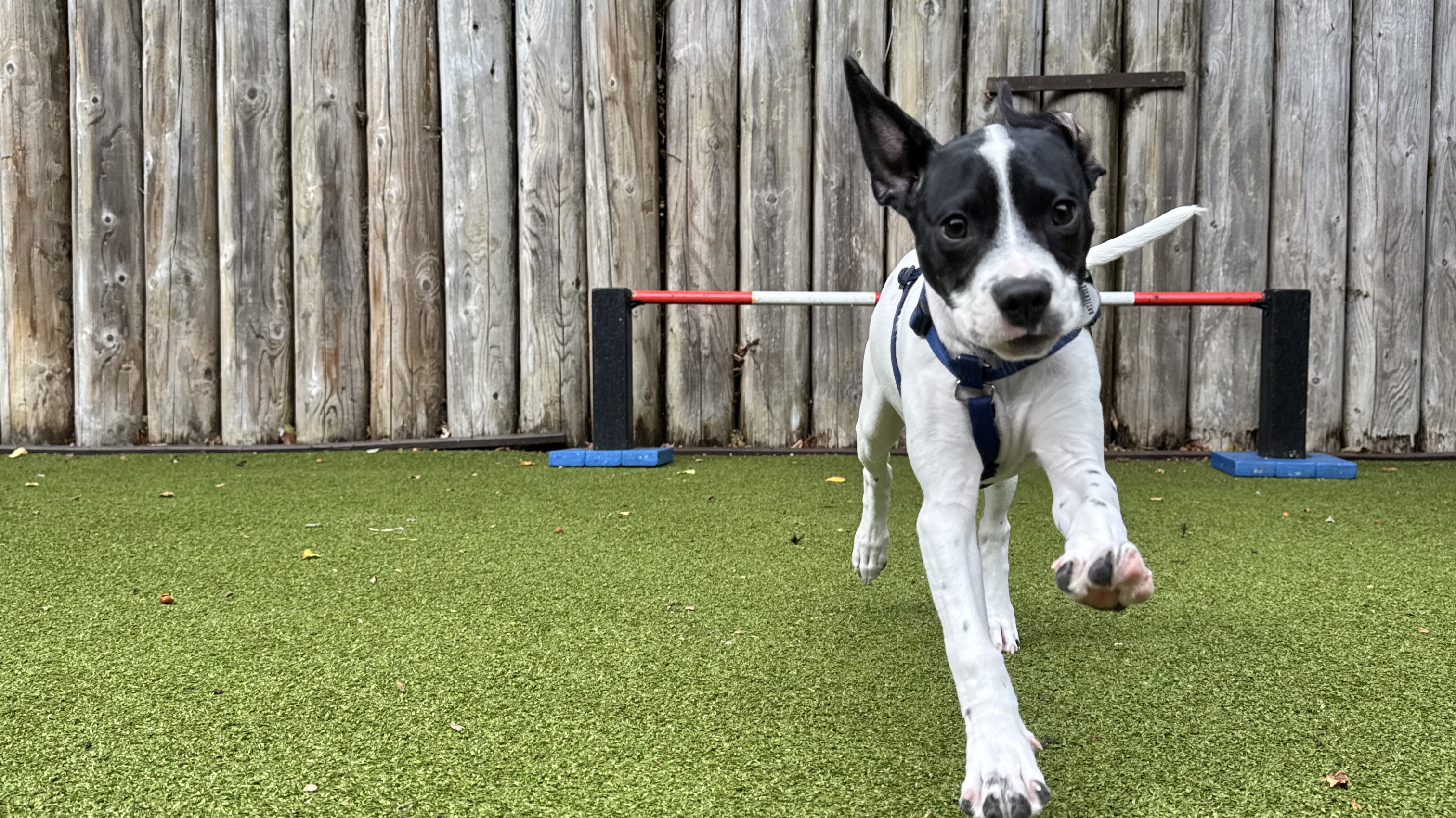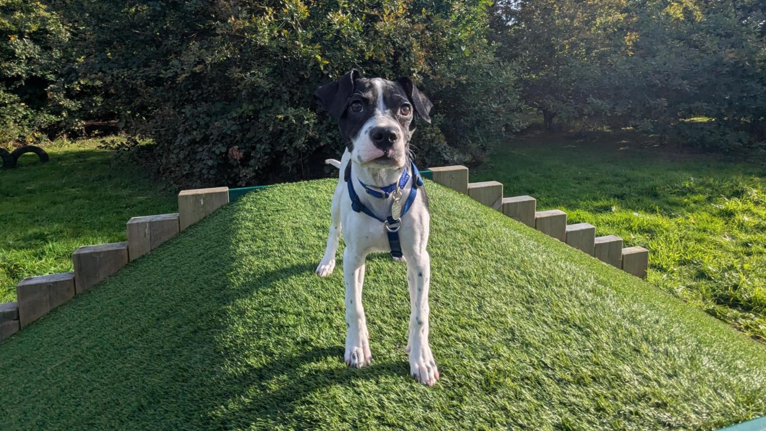 Domino is a young puppy who hasn't had much experience of the world so will need house training from scratch, help learning to be alone and a gentle introduction to the world and all its wonders. Domino has a bit of a worried side so is looking for new owners with a good understanding of body language, who are comfortable advocating for her around new people and dogs. Domino has also found kennels to be stressful and so new owners with bully breed experience and overstimulation experience would be preferable.