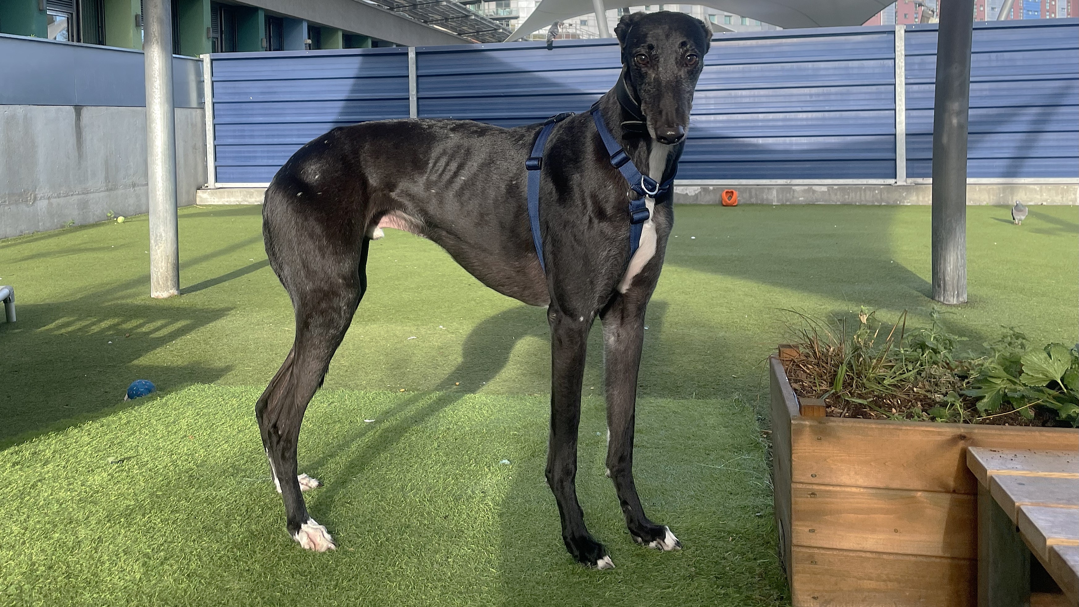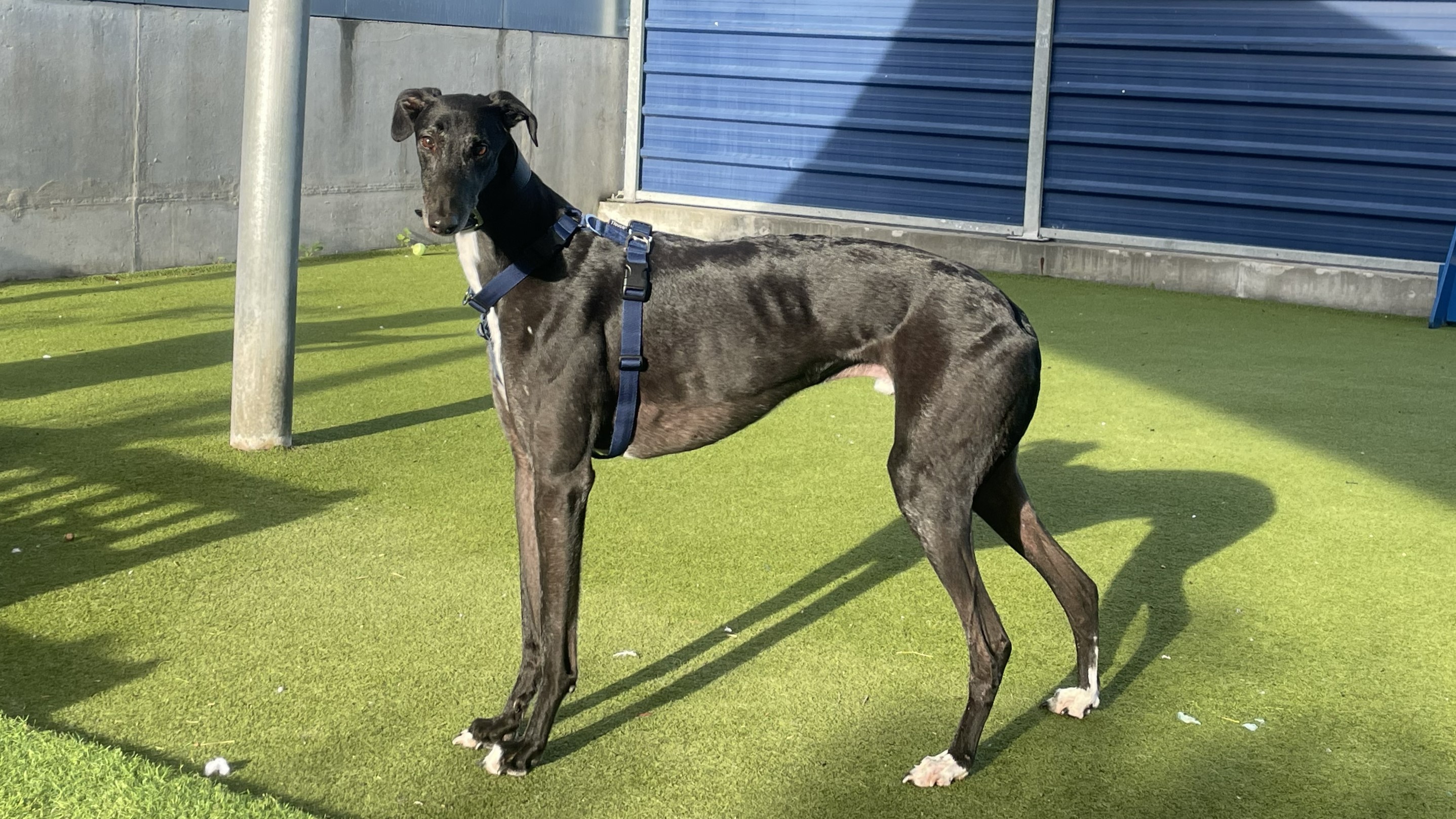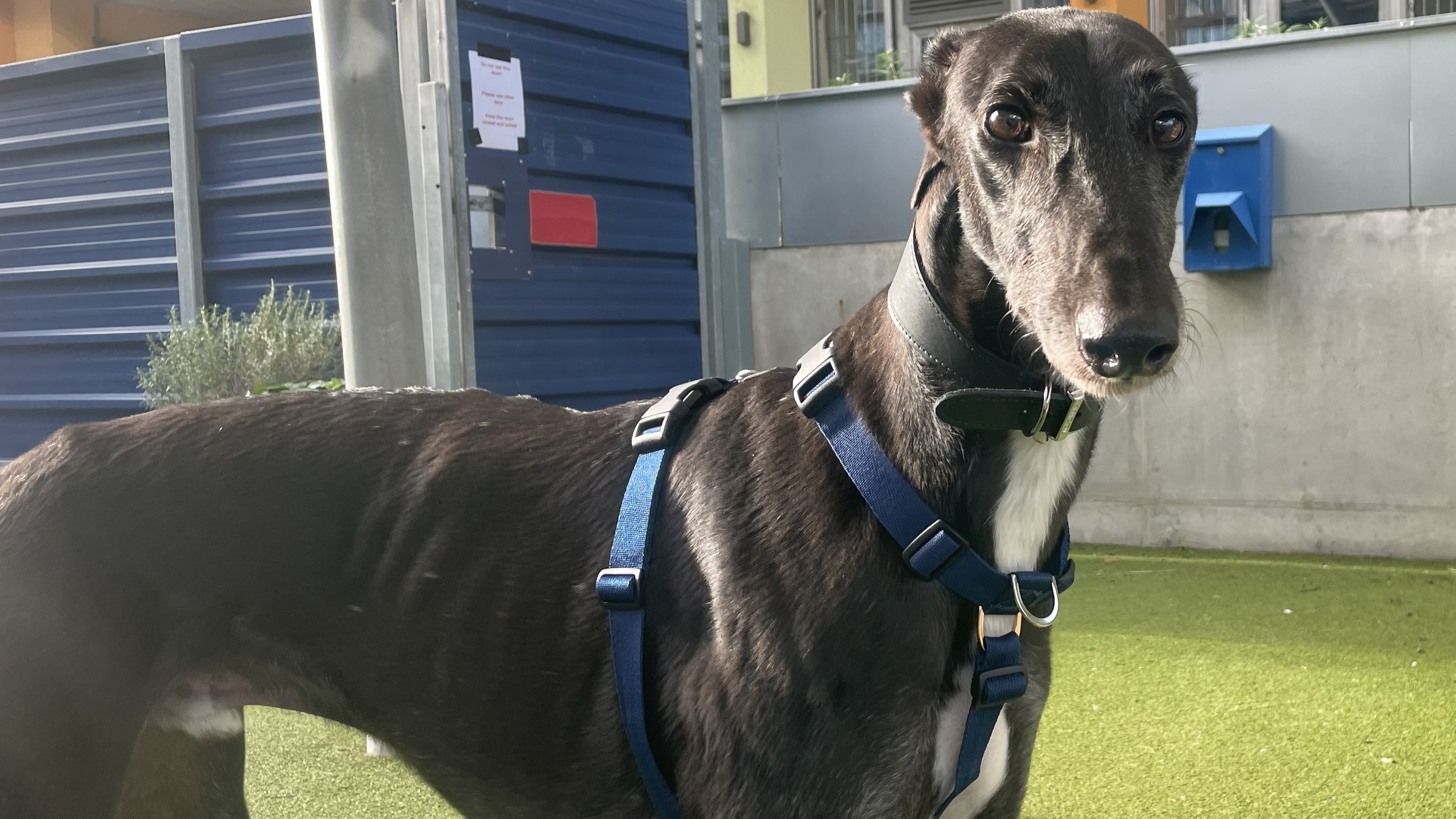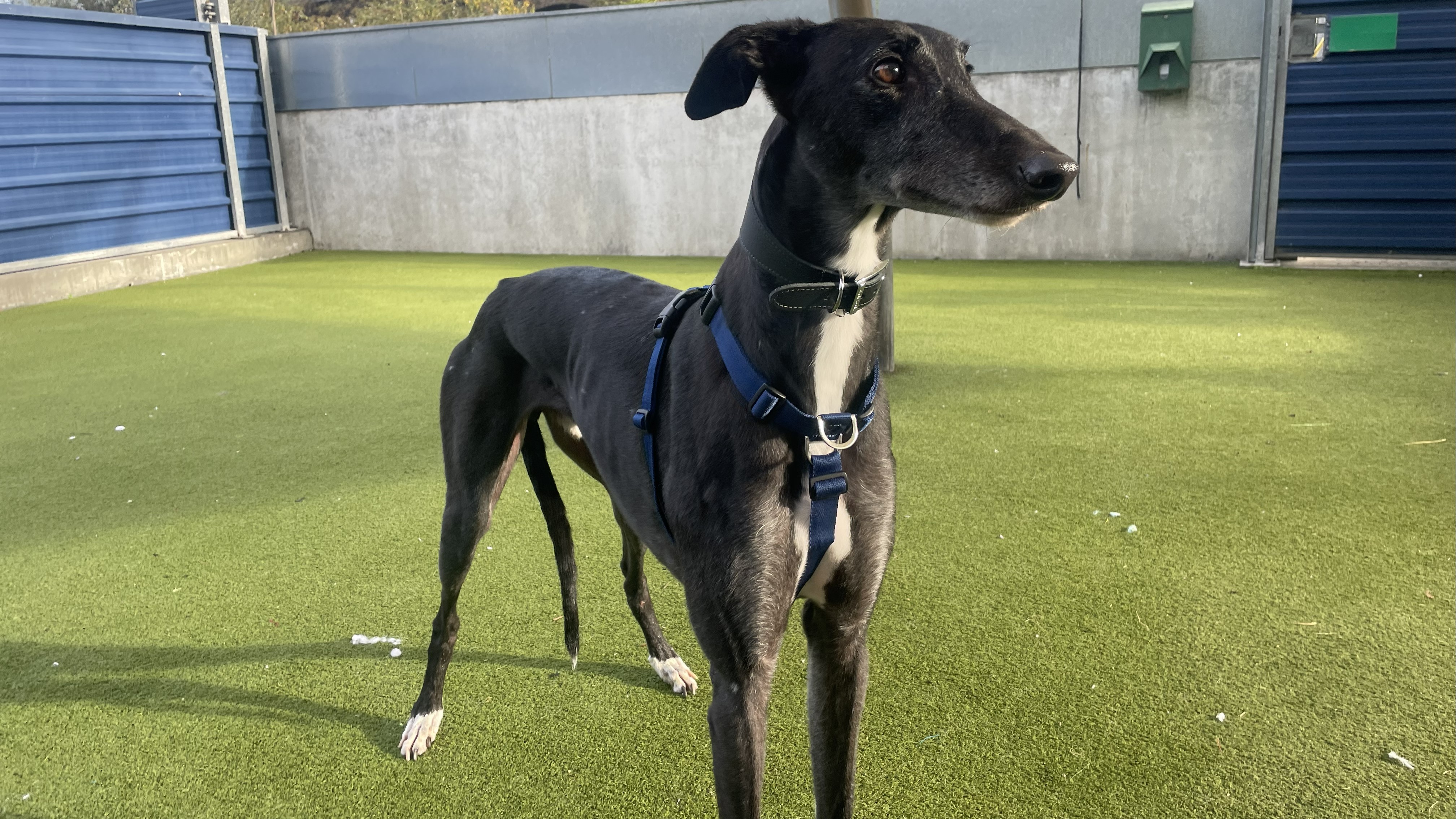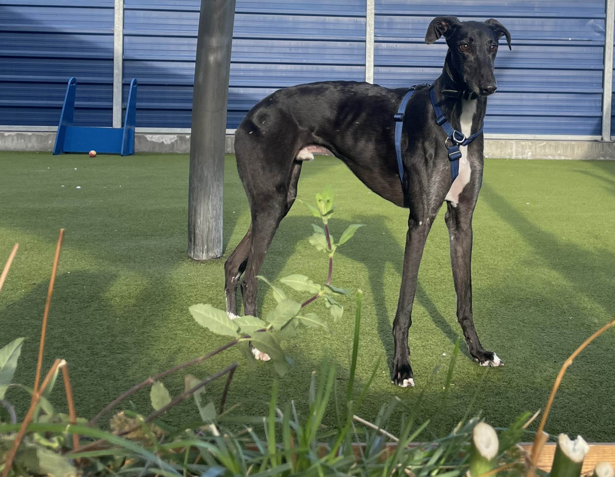 Sweet Eddie is an ex-racer looking for an understanding new family who will be there to encourage him to step into the big wide world and to his confidence. Life can be a bit scary for him as he has mainly lived in racing kennels but he’s trying hard one step at a time, and so far has been a true gentleman.