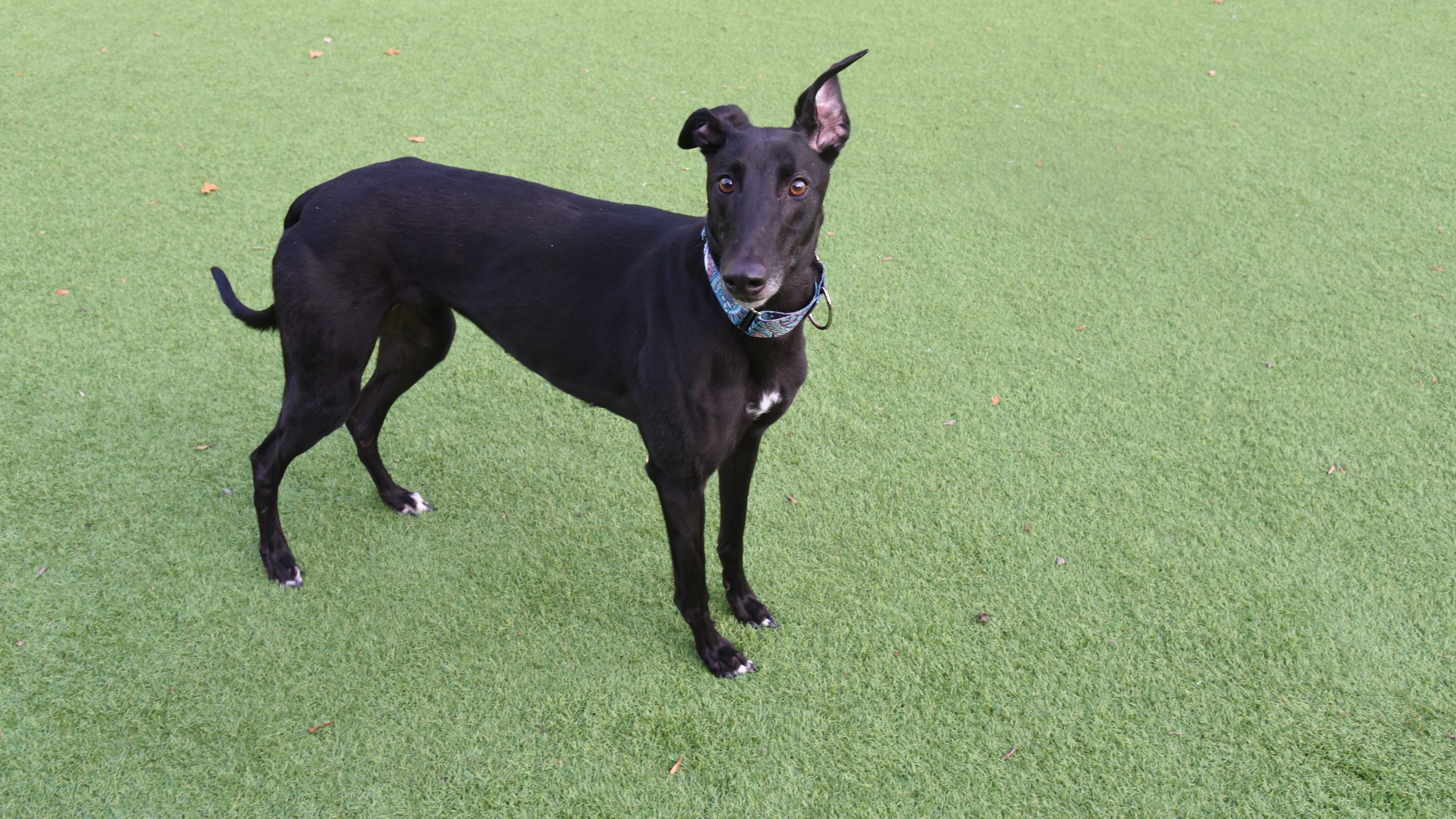 Eileen is a bubbly Greyhound with an endearing personality. She loves nothing more than making new human friends as she gets lots of attention and cuddles, which she laps up at every opportunity. She is currently based in Battersea Old Windsor