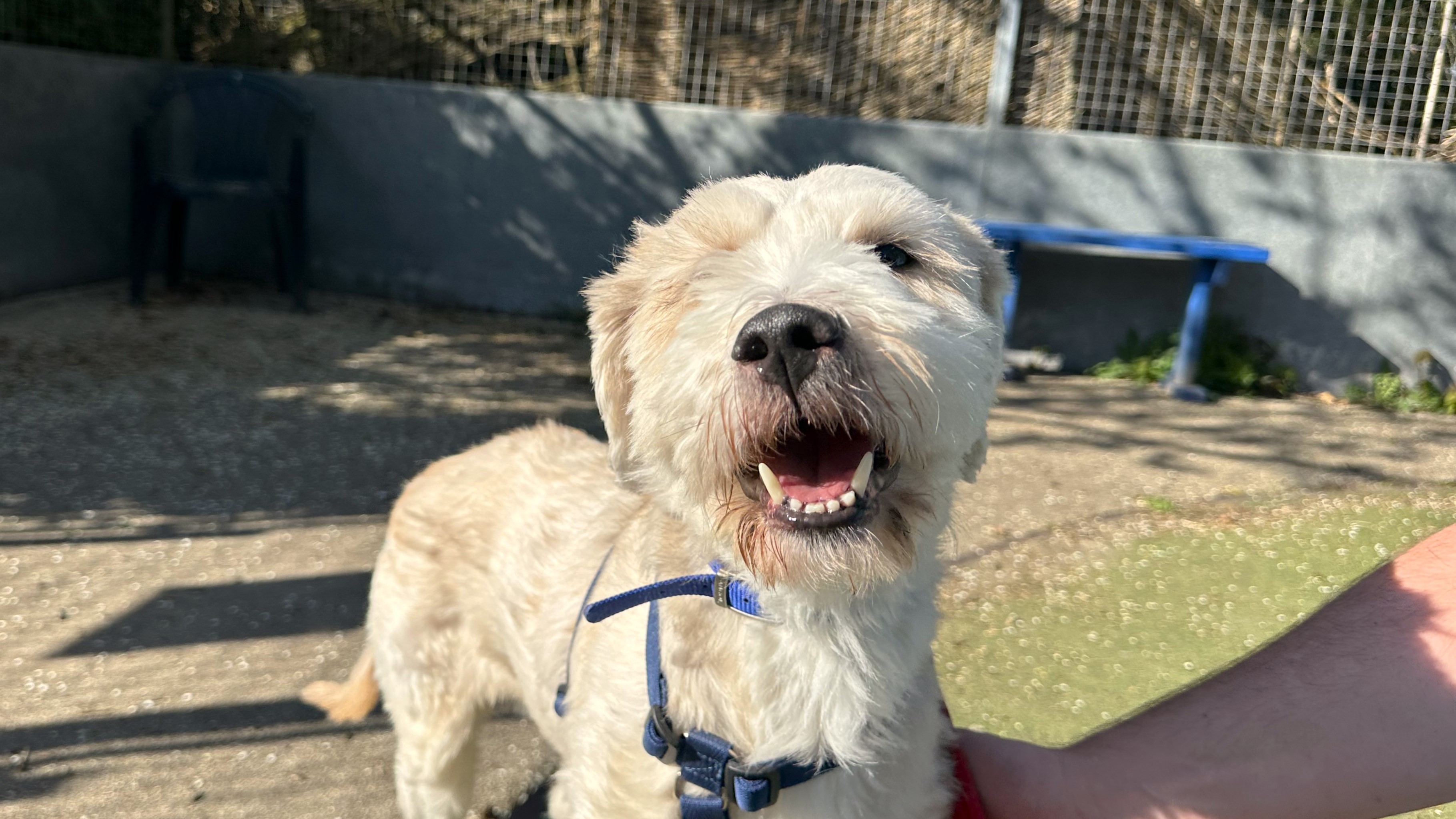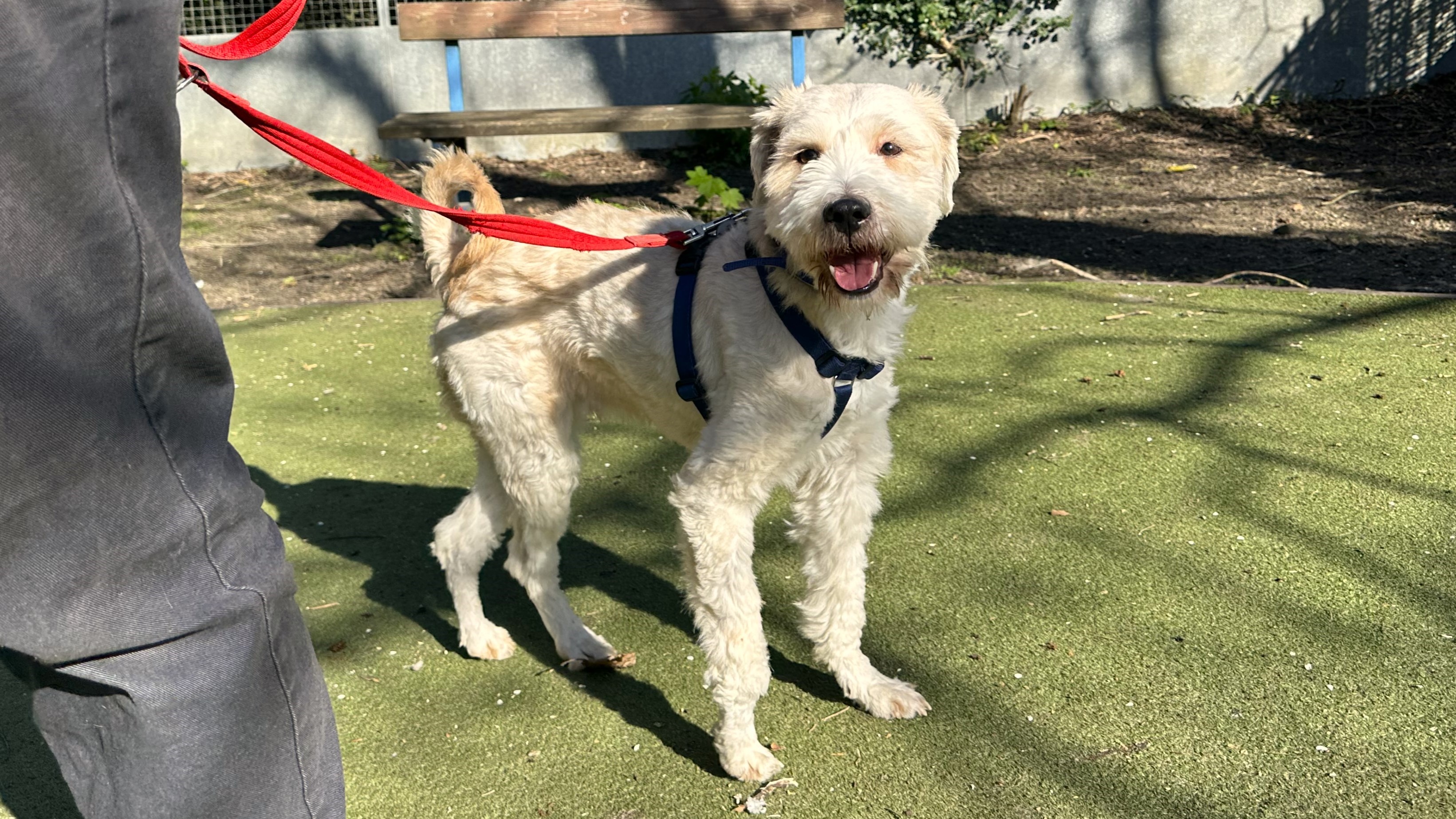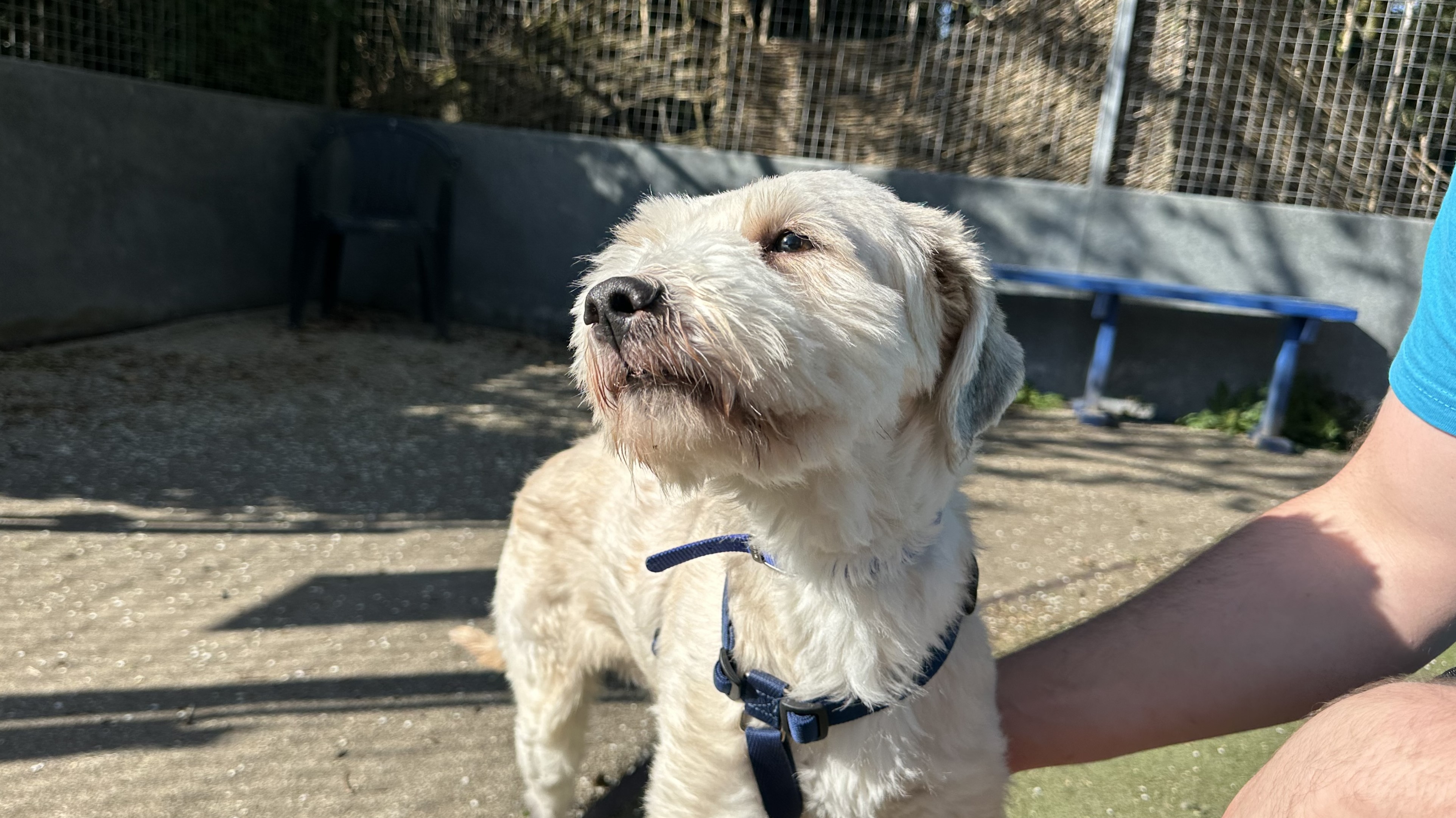 Elliot is a very worried boy and will need time, patience, and gentle encouragement to come out of his shell. He isn’t the type of dog who will bounce into a new home with instant confidence—he’s more the type who will quietly watch from a distance, taking everything in before deciding whether it’s safe to join in.