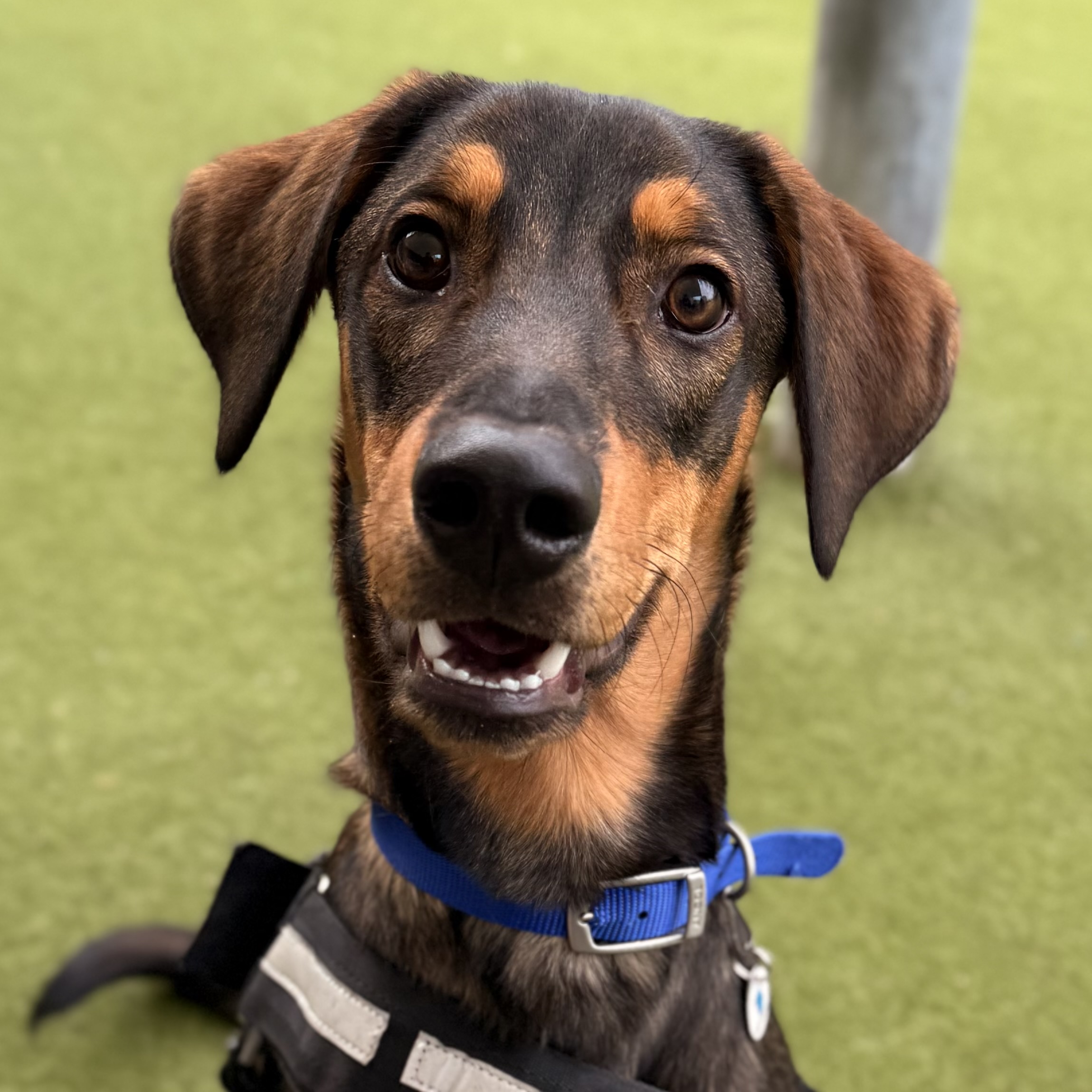 He is an adorable young boy who is looking for a family who can provide him with ongoing training around new people to ensure he can continue to mature with a good set of foundation skills to help conquer the big wide world. He is nervous when meeting new people and will vocalise this and with training and guidance has shown to pick up training and reduce his worried behaviours that we have seen as he slowly gains his confidence. We will require owners to help him gain confidence and to fight those worries head on! He warms up really quickly with lots of tasty treats so will be be sure to continue to thrive in a new home.