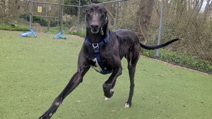 Finley will need to wear a muzzle on his walks but this is much a part of his normal day as is a harness and lead . He does need a private secure garden so he can practise his fun poses and would love a quieter walking area where he can explore the sights and sounds of the world without being too overwhelmed . Greyhounds can sometimes be overlooked but once you've met one you'll see why they can be a fantastic addition to your home.