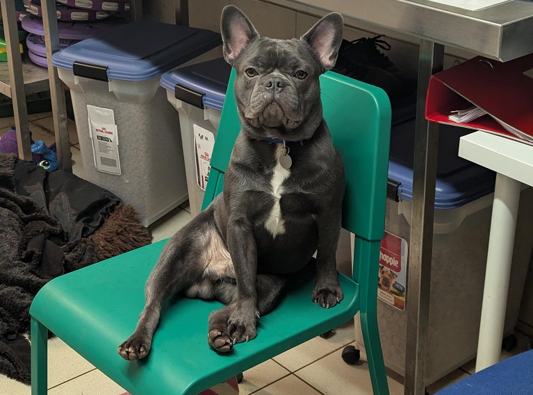 François was found as a stray, so we have limited information on what his life was like before he came to be in our care. He has proven himself to be a friendly and well rounded boy who likes attention from people and to sit on laps. He has shown social behaviours around other dogs, though does demonstrate typical French Bulldog body language that those familiar with the breed will know well. François is not house trained when in his kennel, though is clean when he spends time in the kitchen, so he might some reminders in this area.