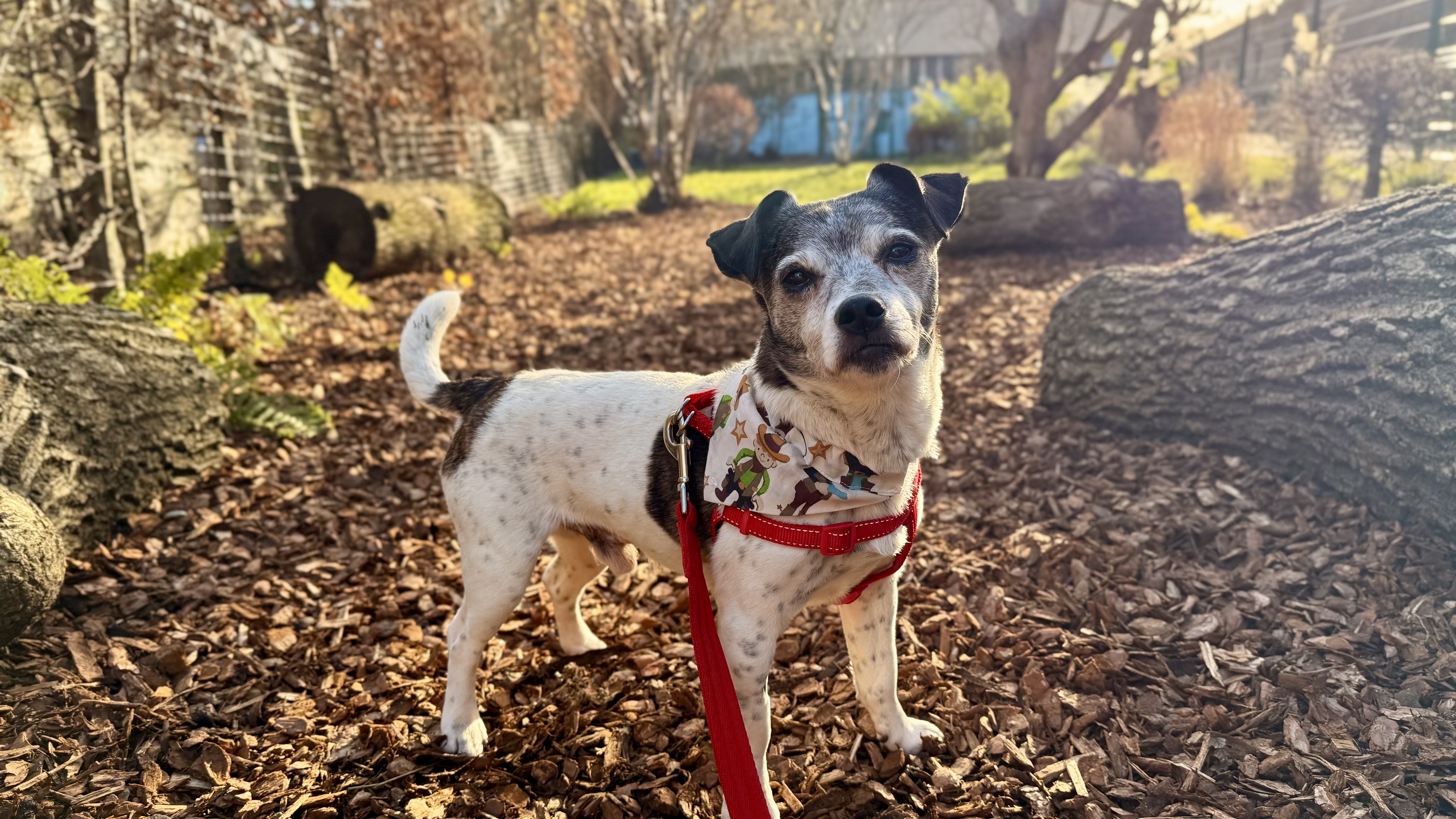 He adores human company and is happiest when he’s close by for cuddles and reassurance. When out and about, George enjoys pottering along at his own pace, walking beautifully onlead, taking time to sniff and explore the world around him.