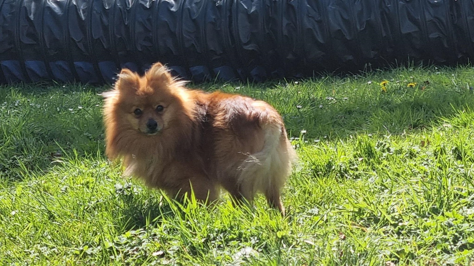 Dashing Gerald is a diddy little German Spitz, possibly crossed with a Pomeranian. This delightful ball of auburn fluff came into our care after being found as a stray. He has proven himself to be a sweet boy and quite typical of the Spitz breeds - slightly aloof until he is comfortable with you but then a lot of fun and affection!