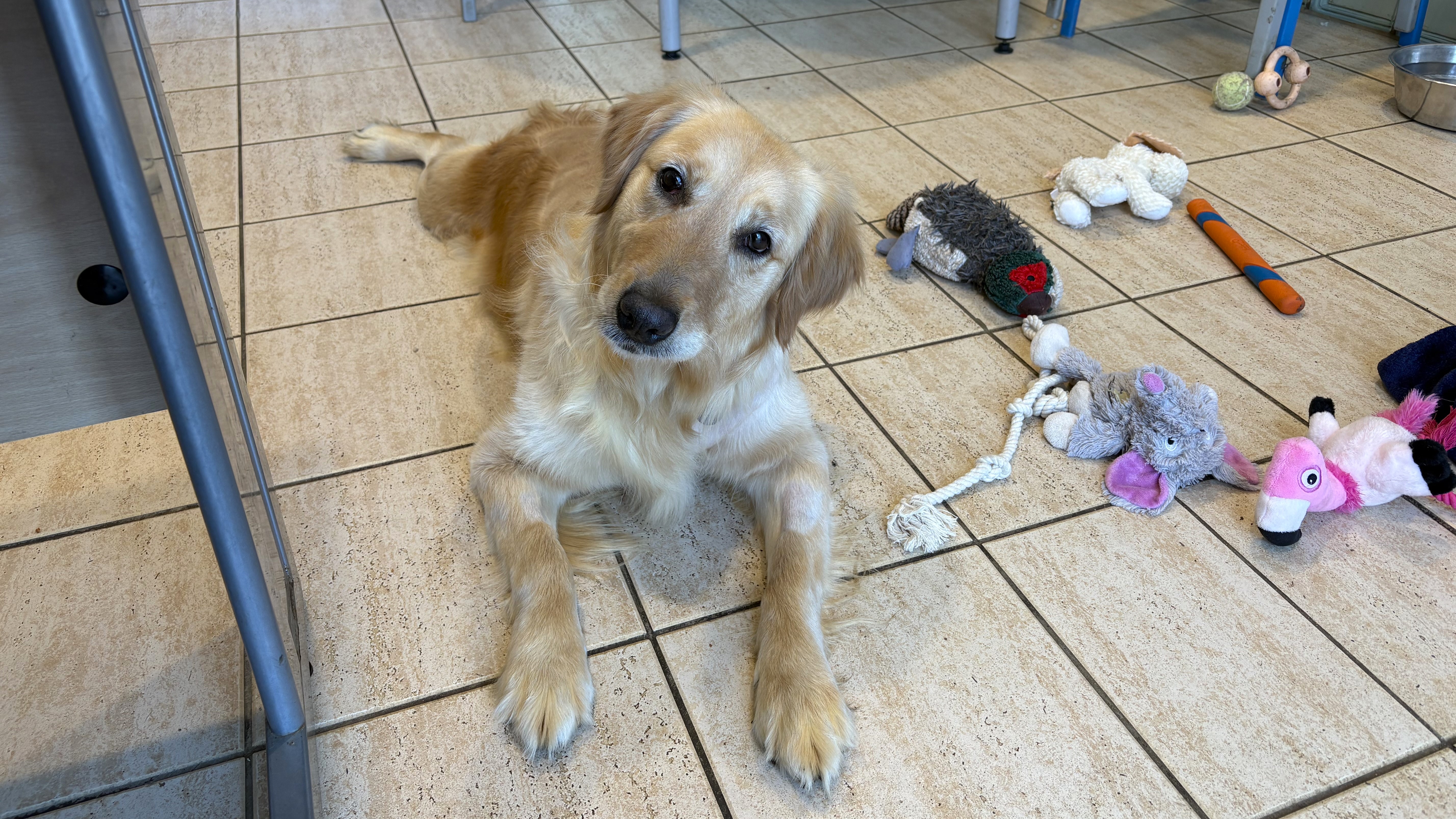 Goldie is an adorable and gentle Golden Retriever. She is a worried girl, and she can take a lot of time to bond with new people. Once she has, her bouncy and excitable side shines through when given her own time to make friends.