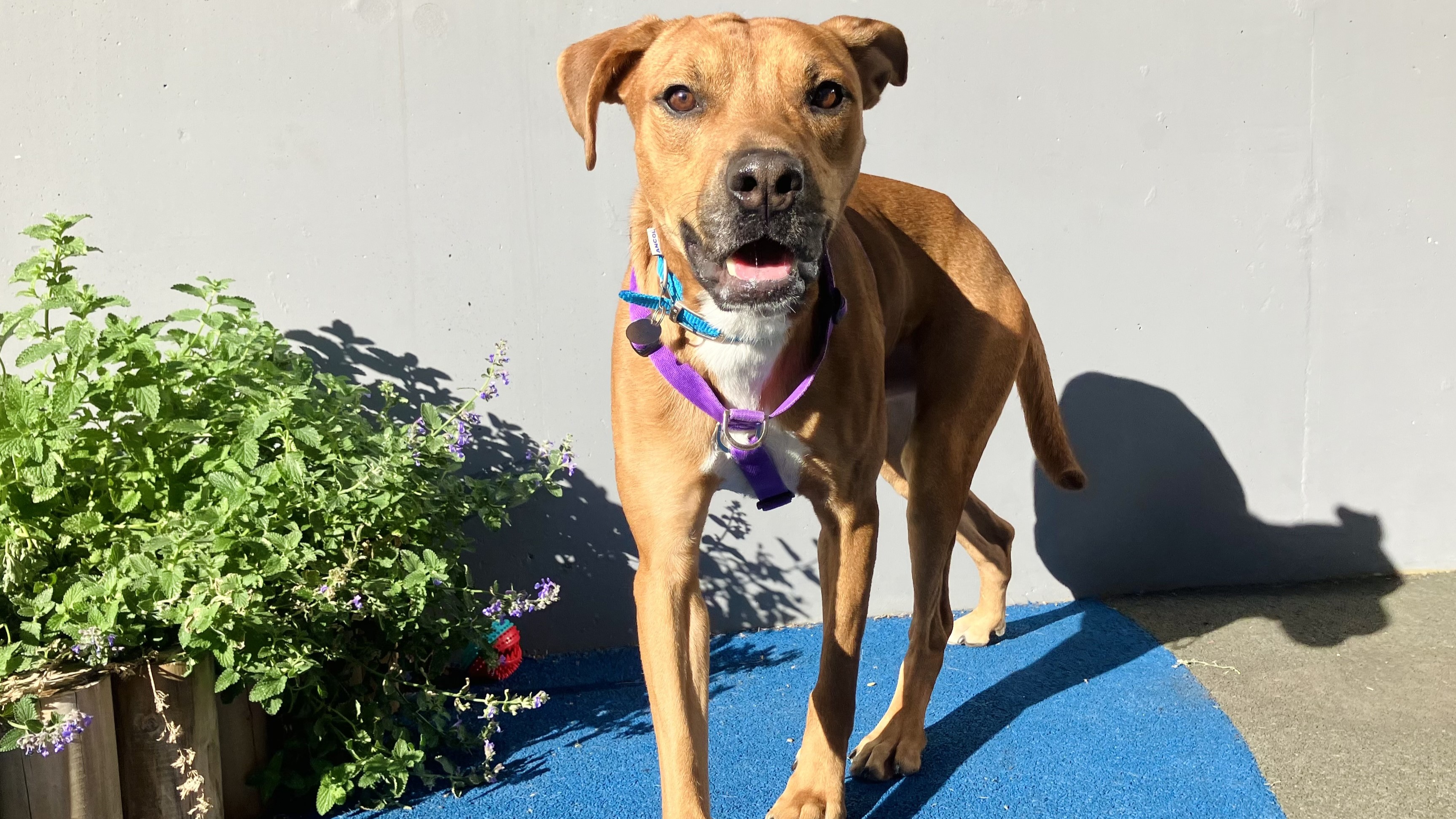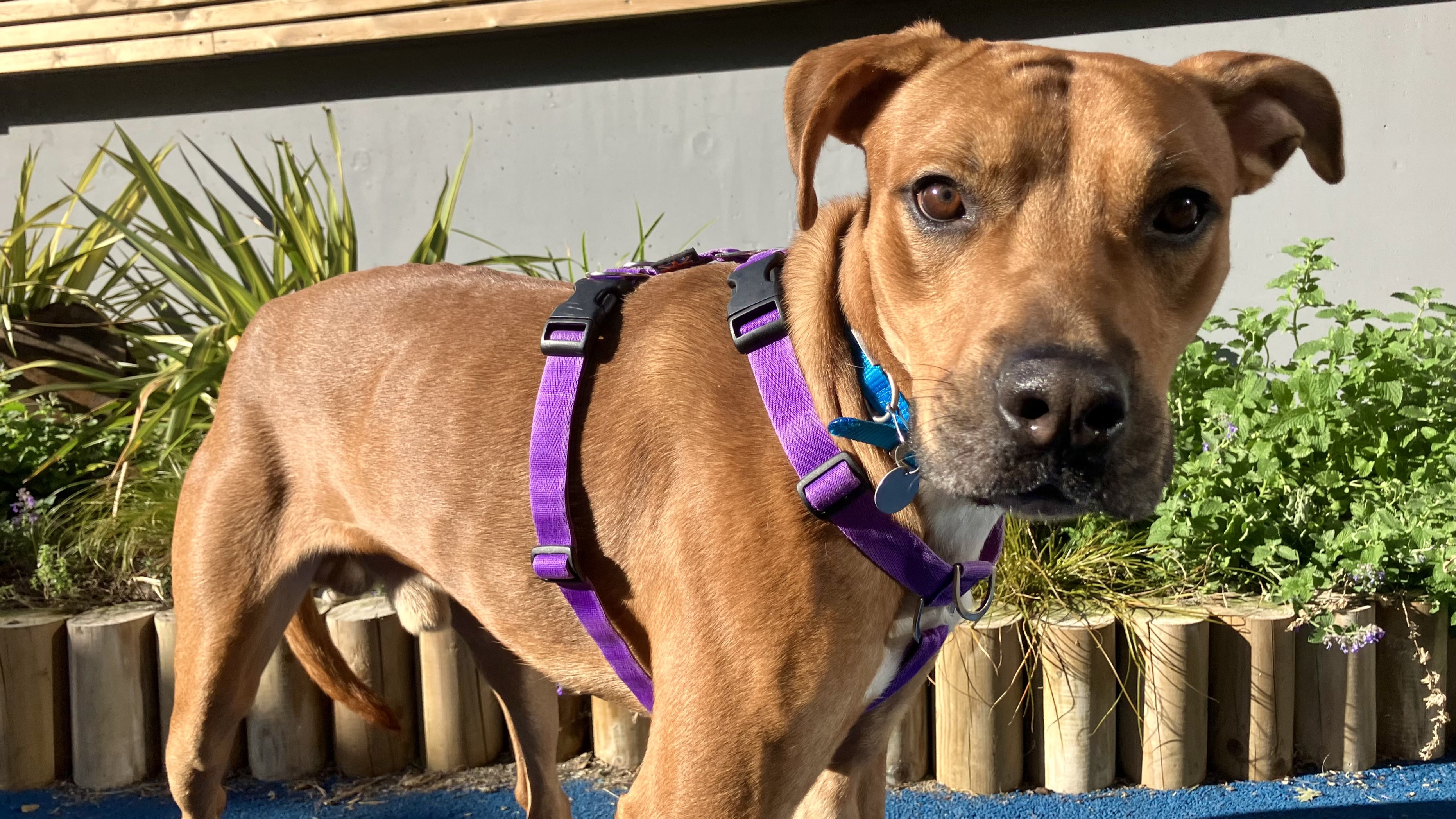 Grape requires some additional training to help him gain some basic skills to put in his "life toolbox". Staff here have been working on these and they need to continue in his new forever home. One of the areas is around clinical handling for vet treatments and Grape will need to be muzzled for veterinary treatment. He requires ongoing training to support and help him continue to build his confidence at the vets.