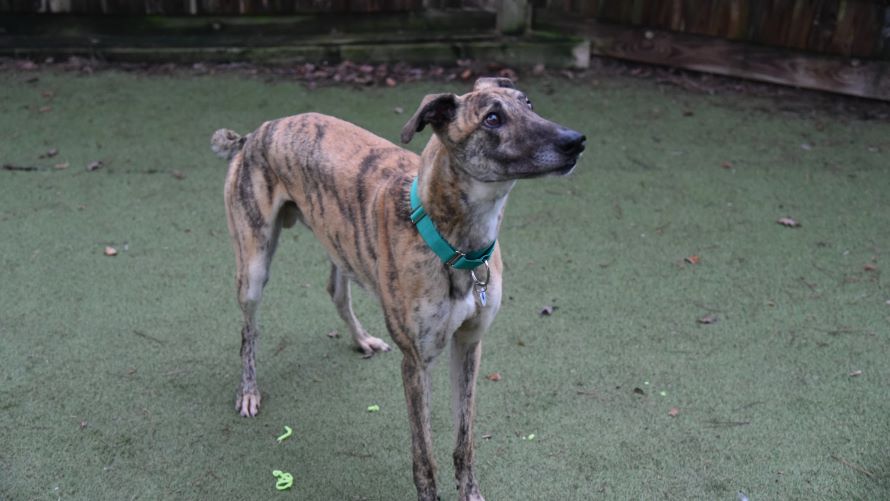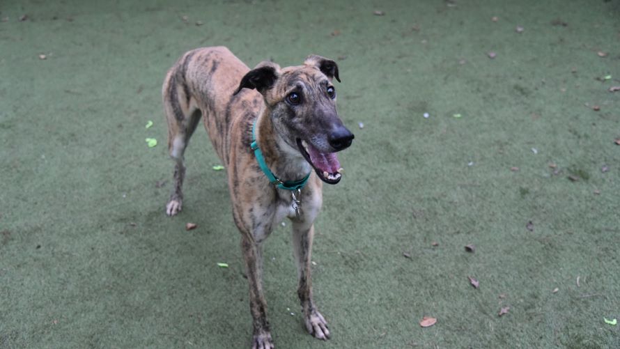 Hero is a gentle and calm Greyhound based at our Old Windsor Site. He is has been friendly towards everyone he has met and loves a fuss, often leaning on your legs. He could live in a home with teenagers that can give him the space he needs when settling into his new home.