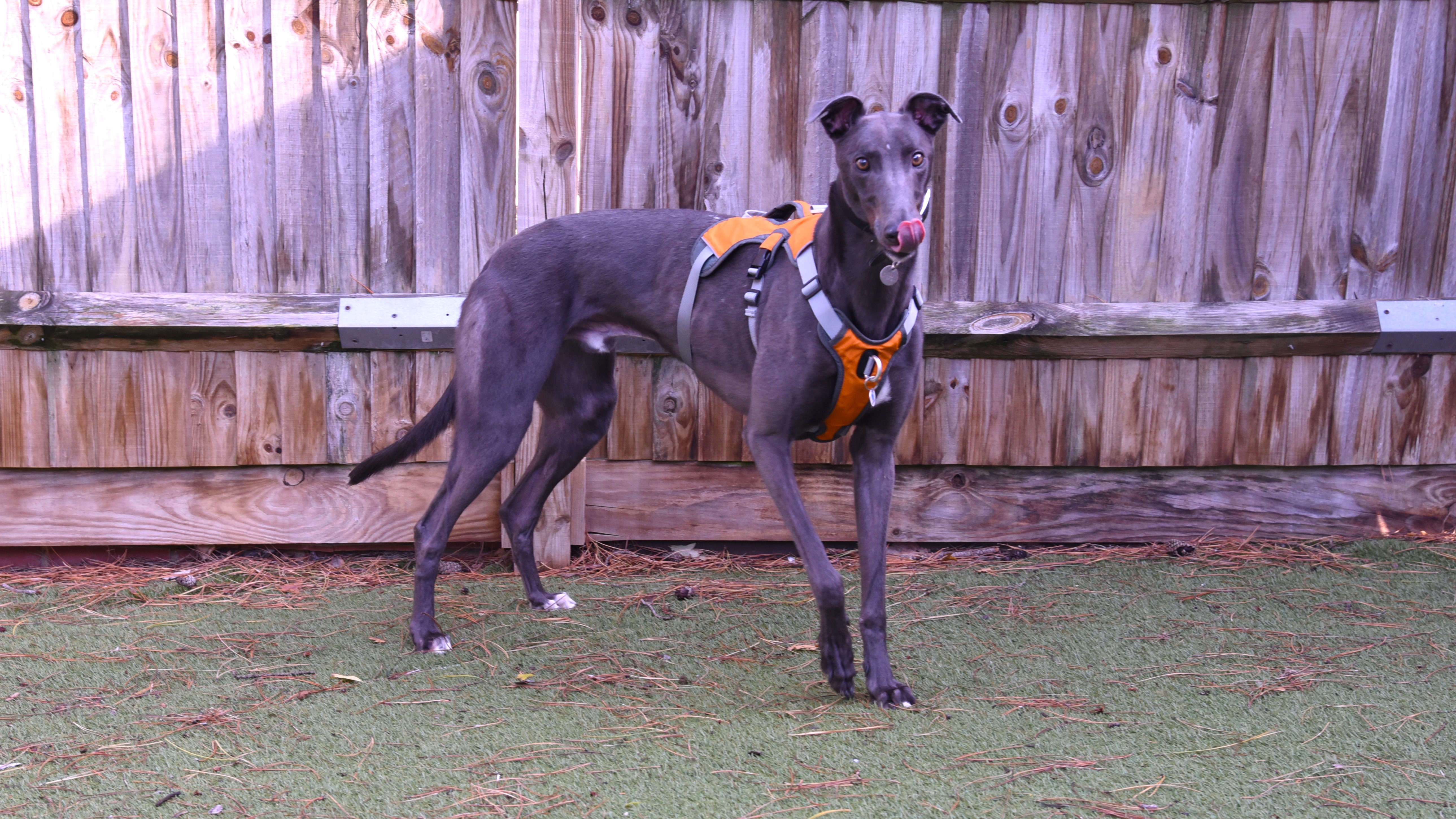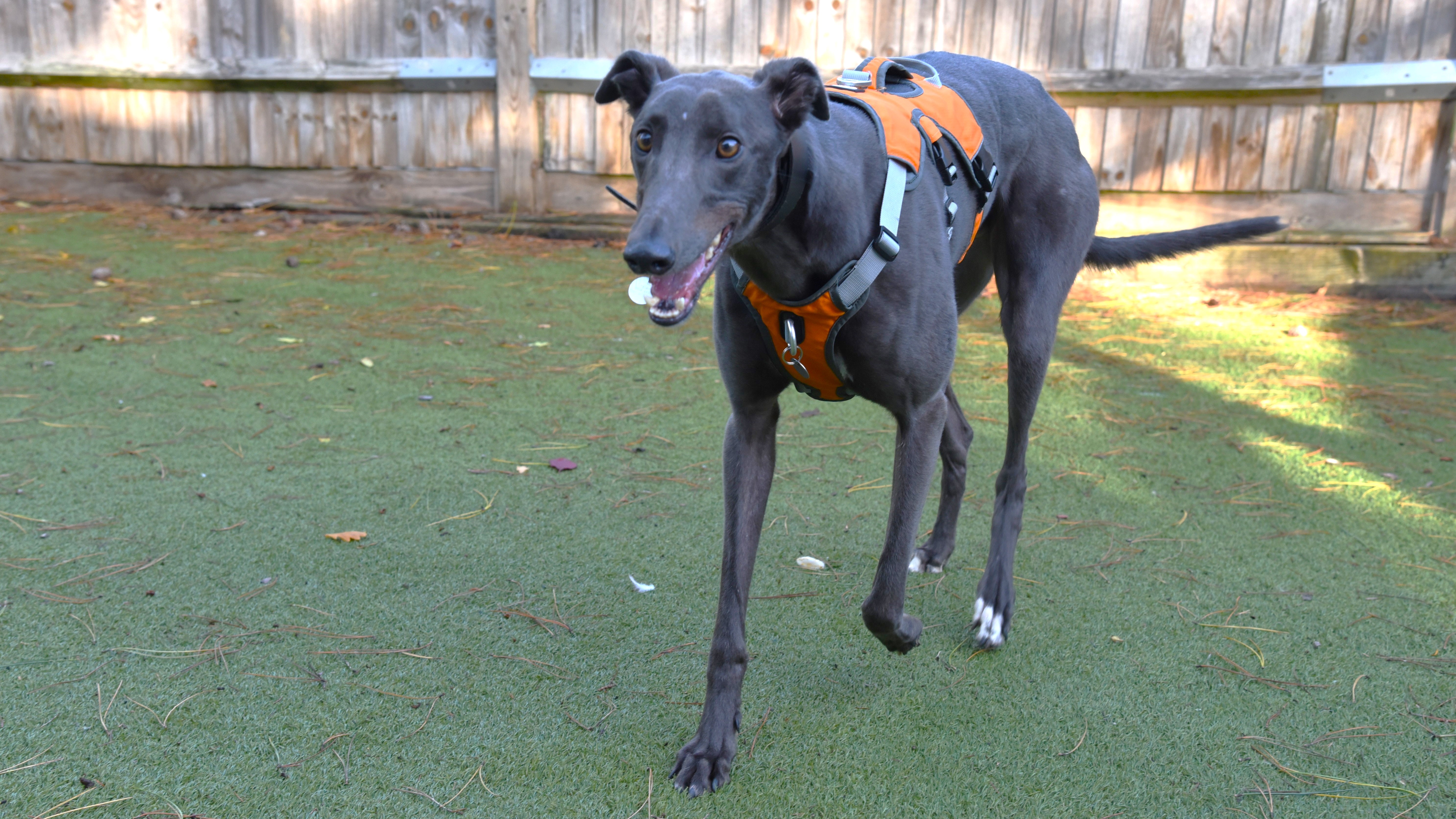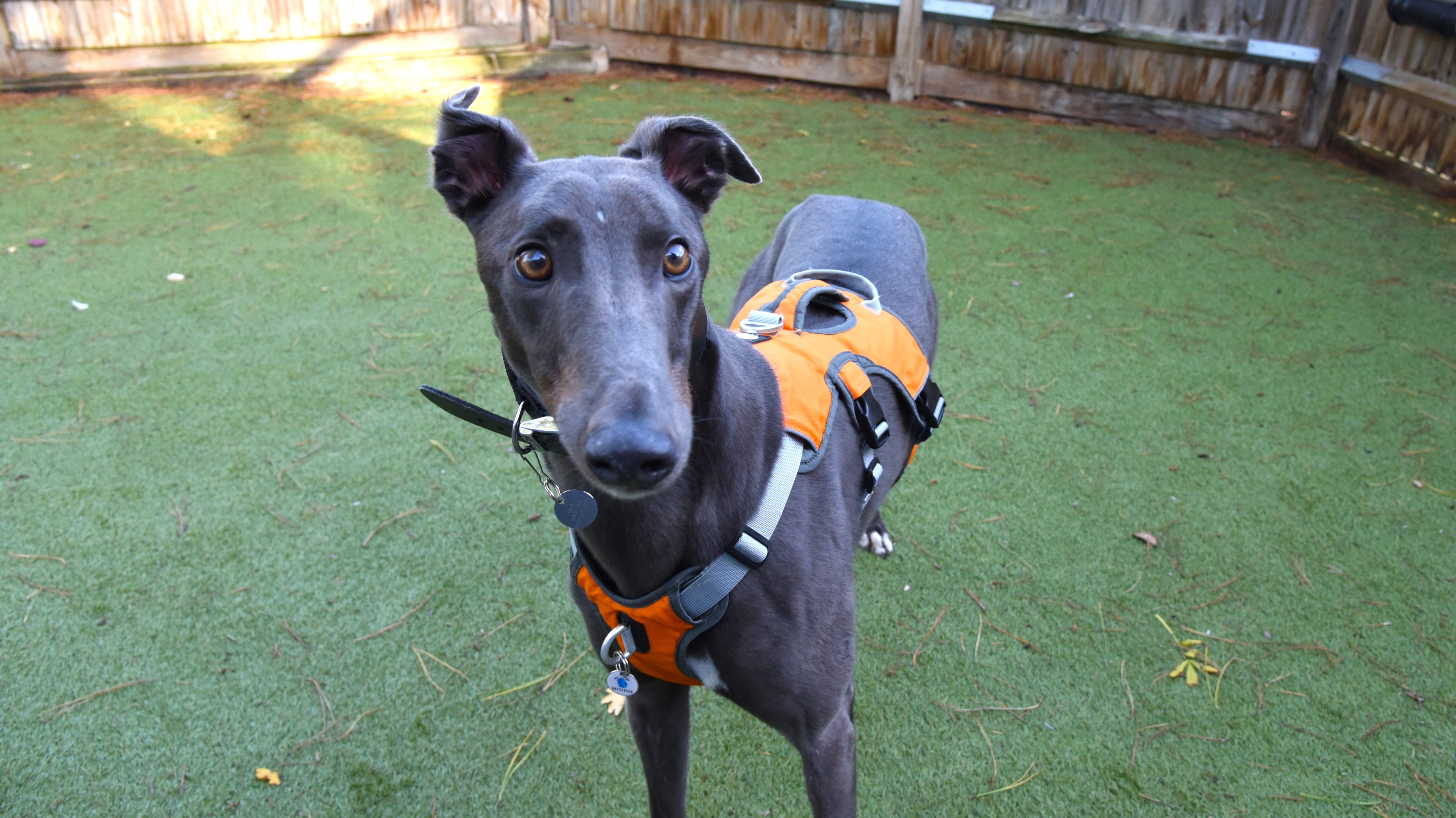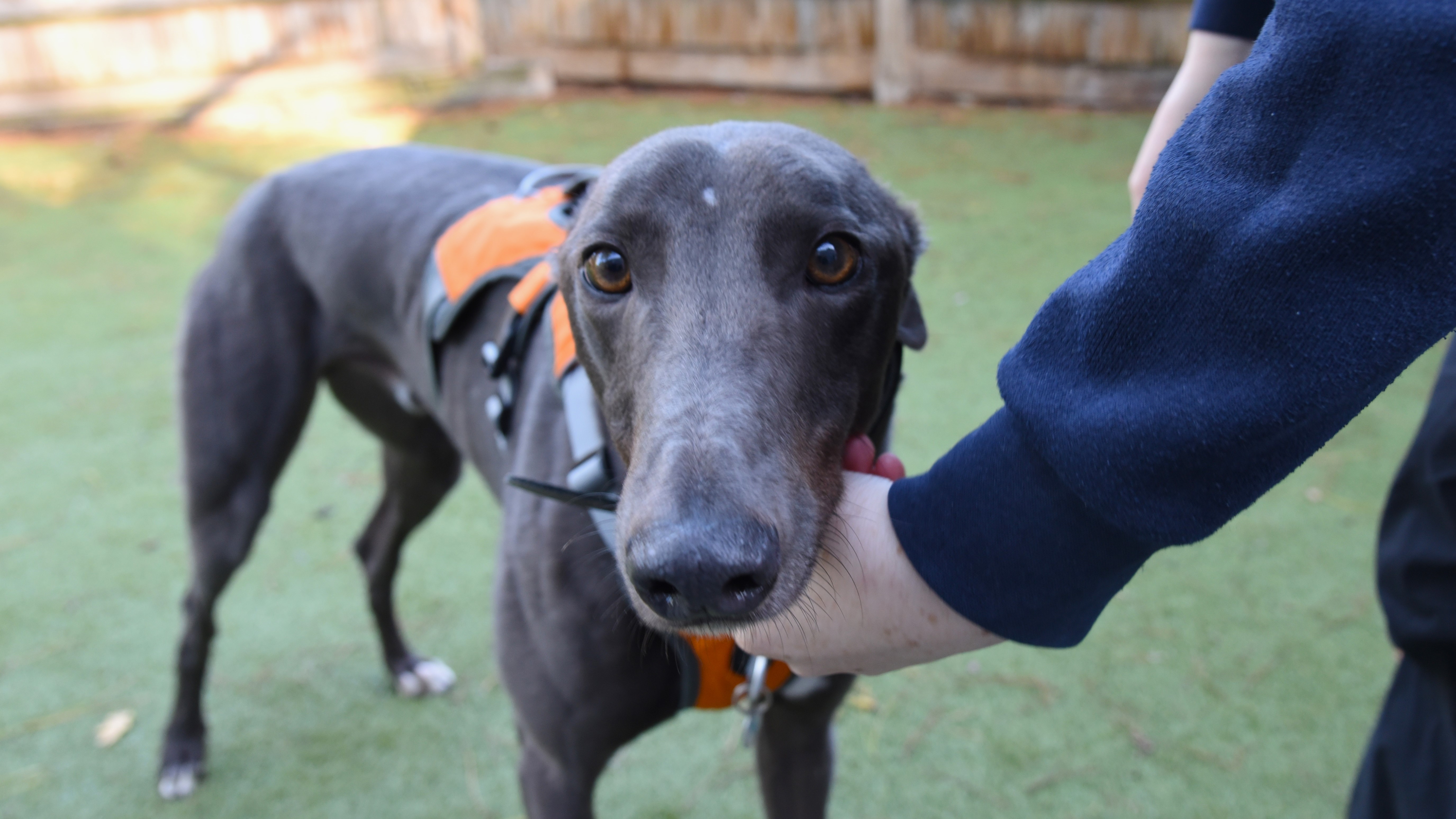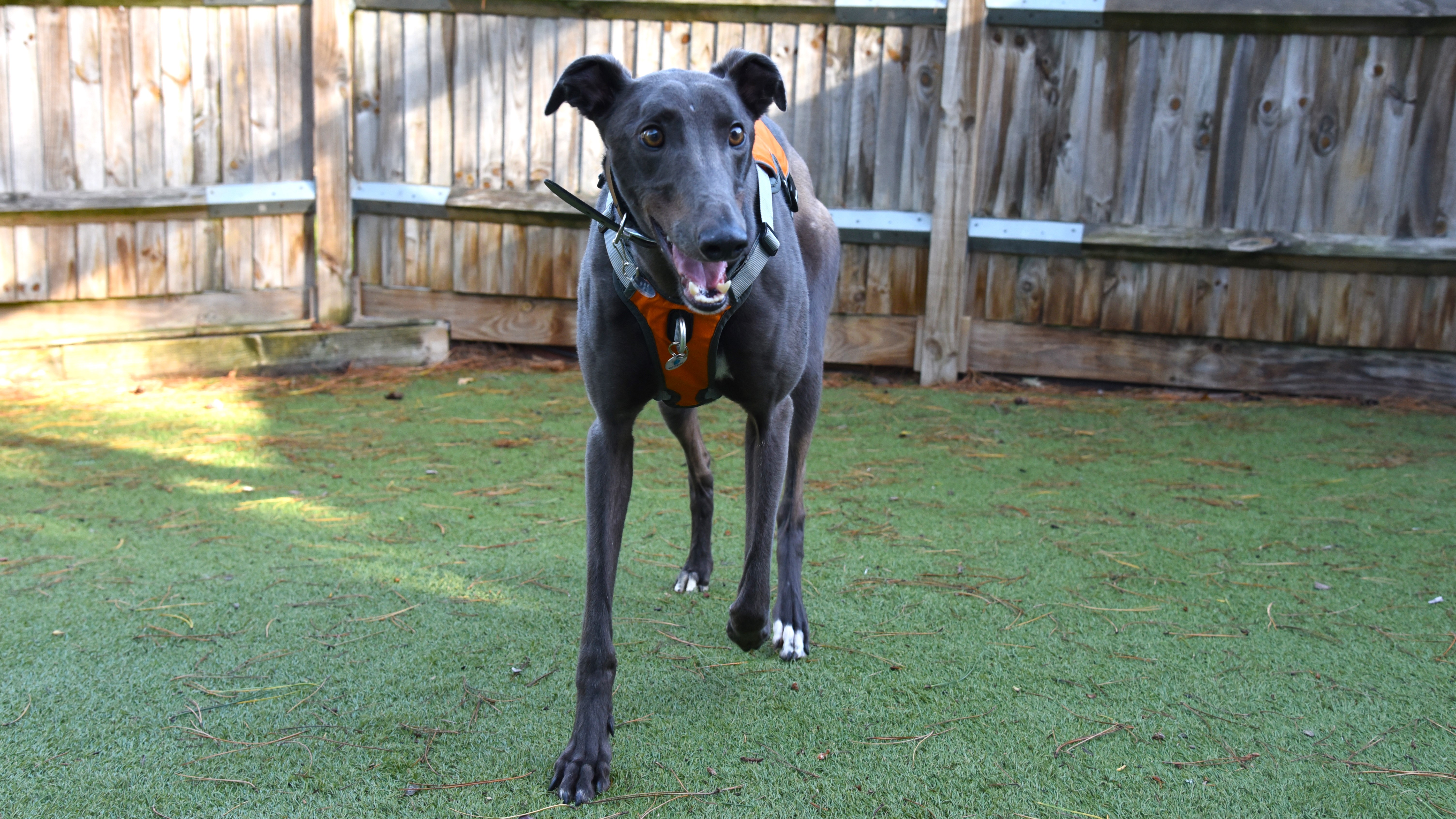 At this stage in his life, Huey would be looking to be the only dog in the household as he can be reactive towards other dogs, especially breeds he may not have seen before. He does have an independent side and much prefers his own company or that of calm Greyhounds. He will be looking for new owners who are willing to continue his ongoing training and to help support and manage his dog interactions.