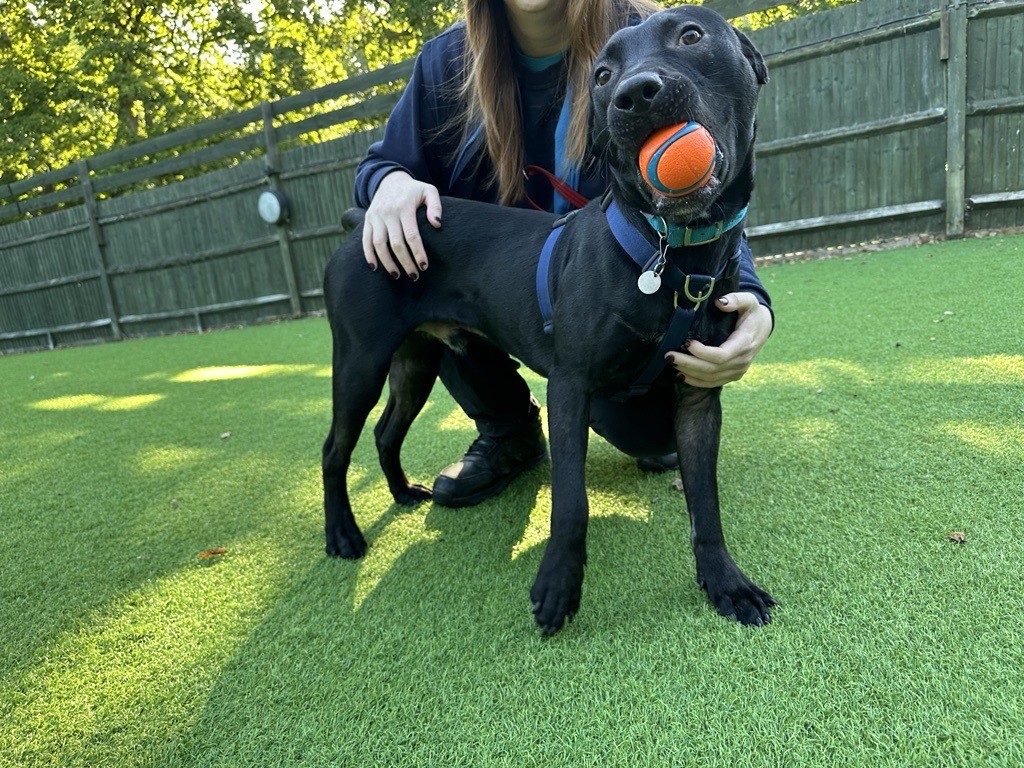 He is a young, energetic dog that enjoys going on long walks and using his brain with food enrichment like Kong Wobblers where he can really interact with it using all of his senses. He will need a private secure garden to burn off energy and receive training without distractions.