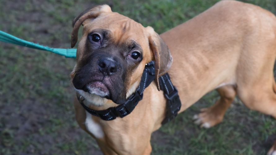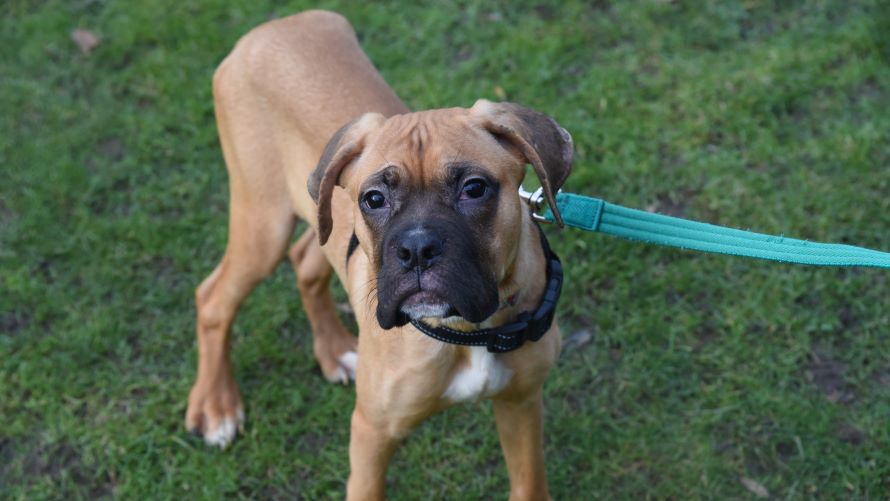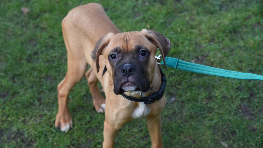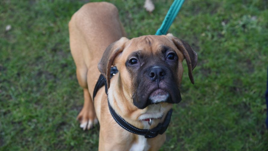 Joshua at Battersea Old Windsor is a young Bull Mastiff cross who is growing in confidence and looking for a home to help continue this in the big wide world.