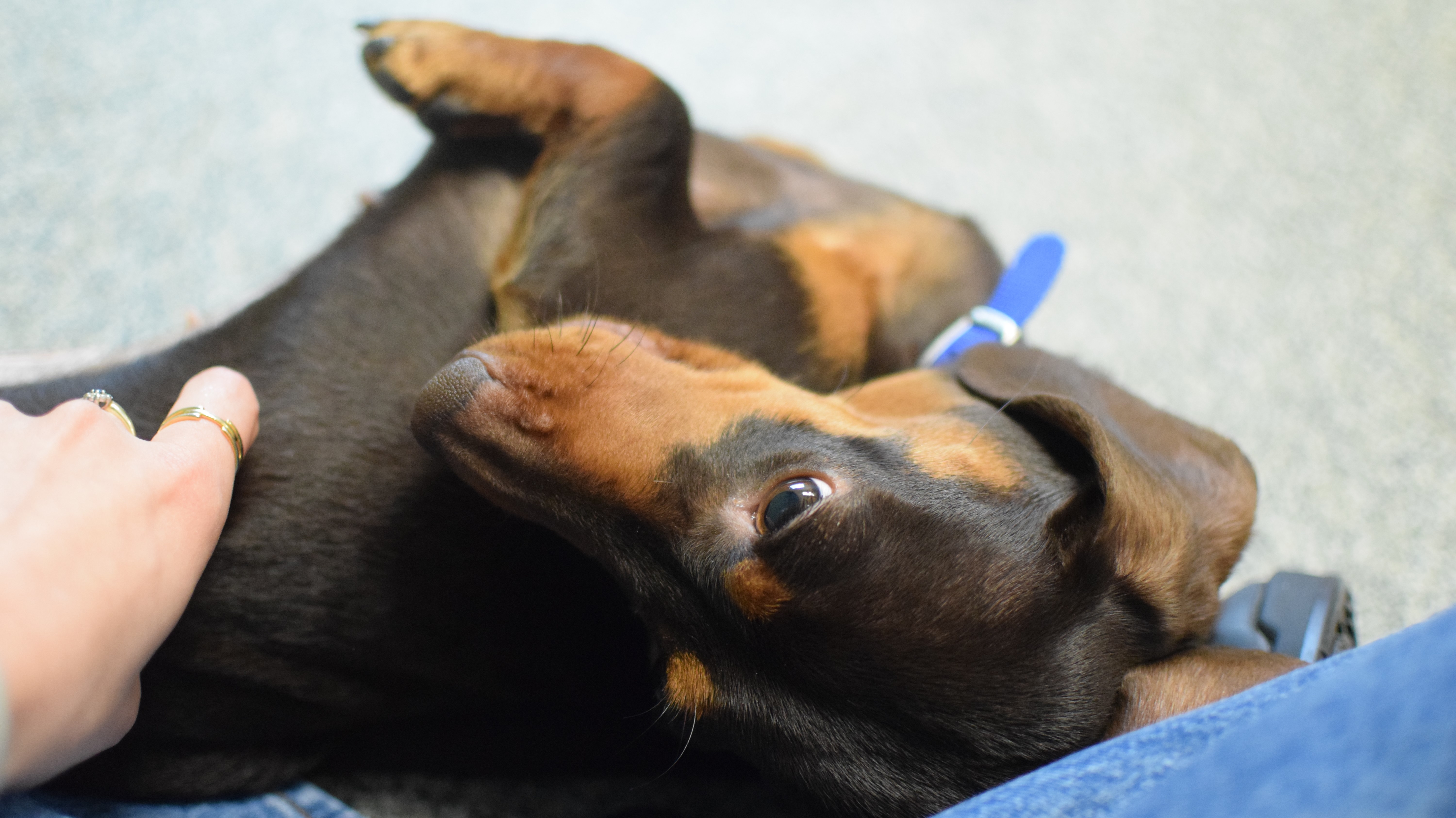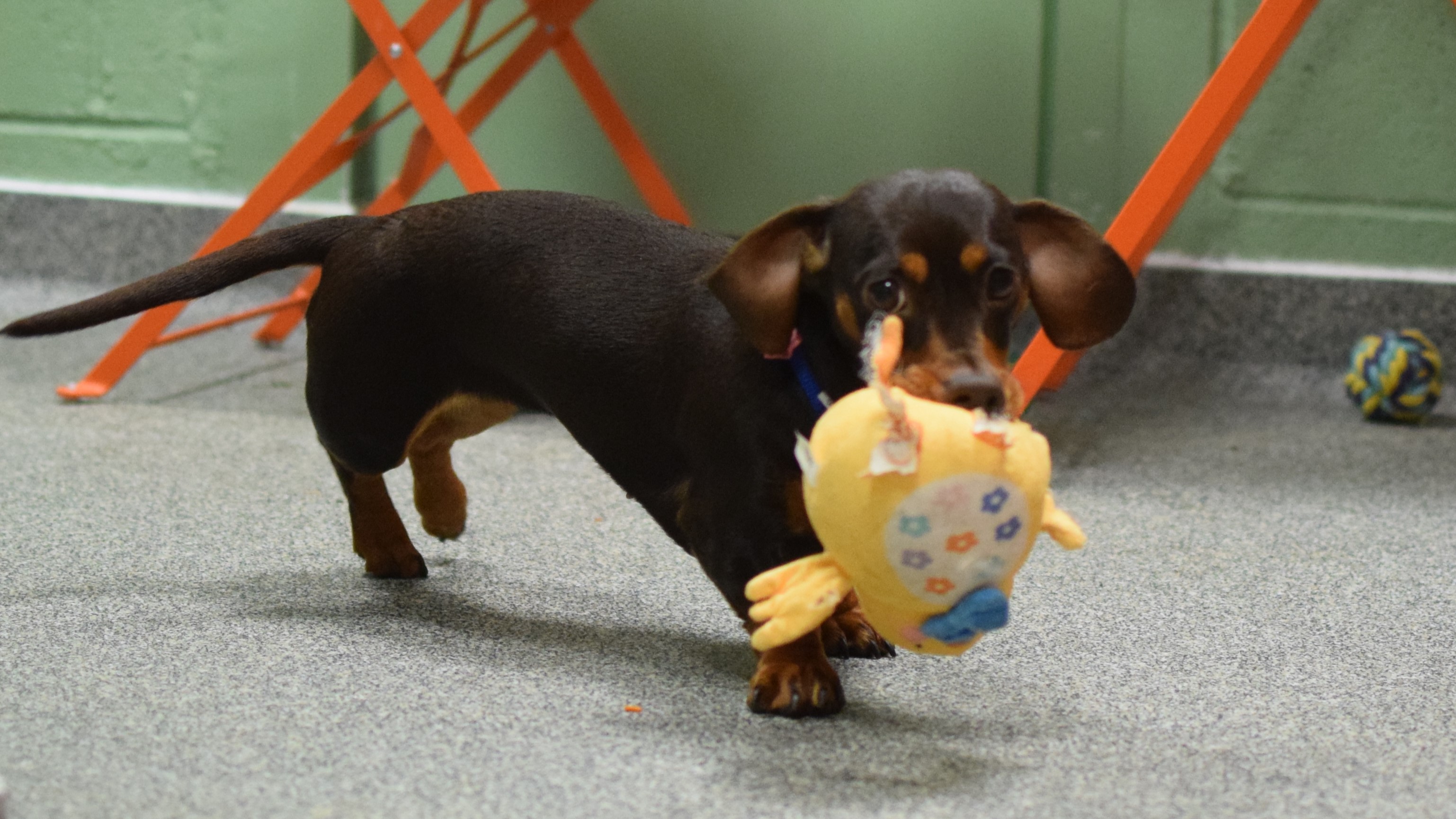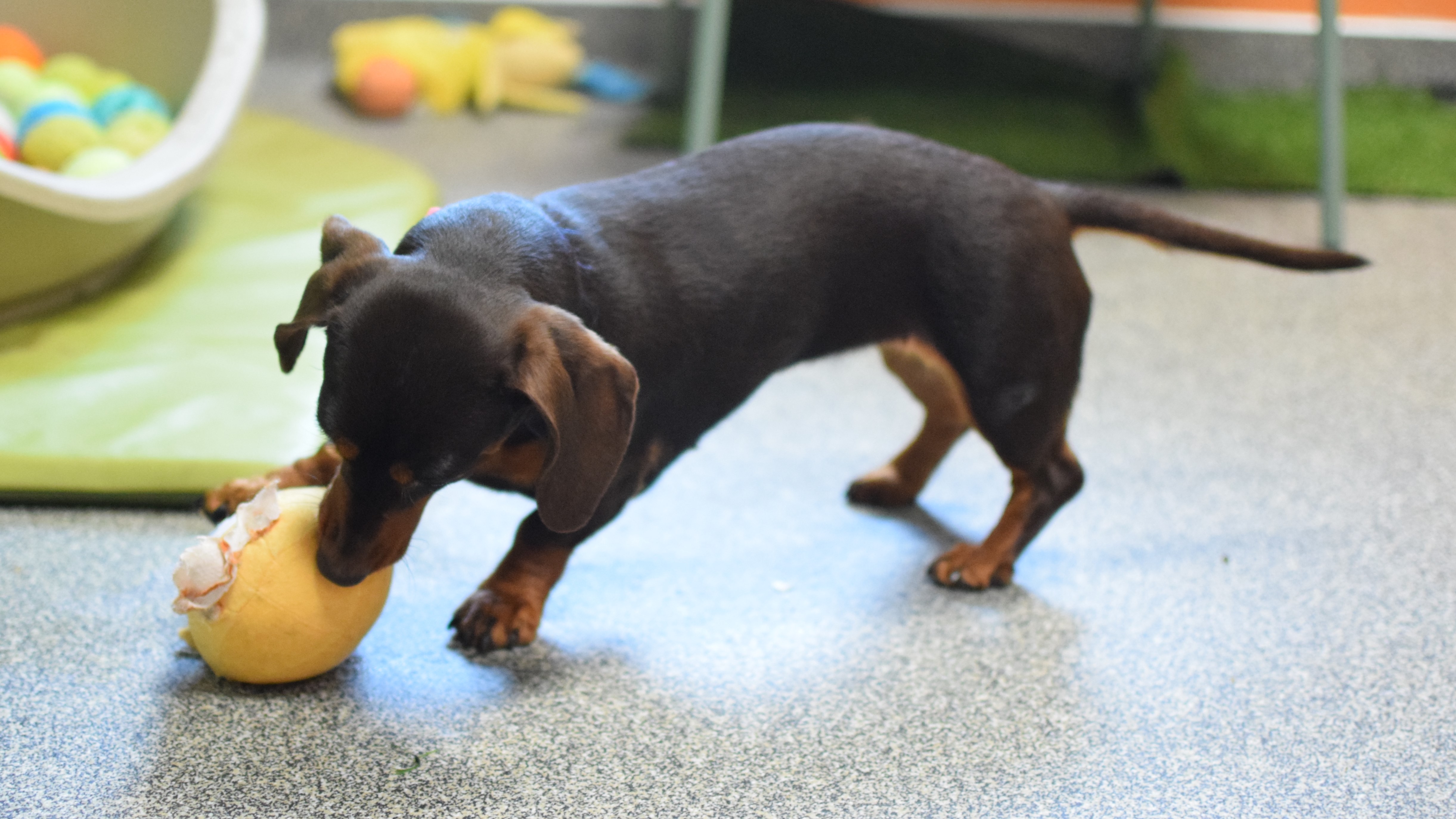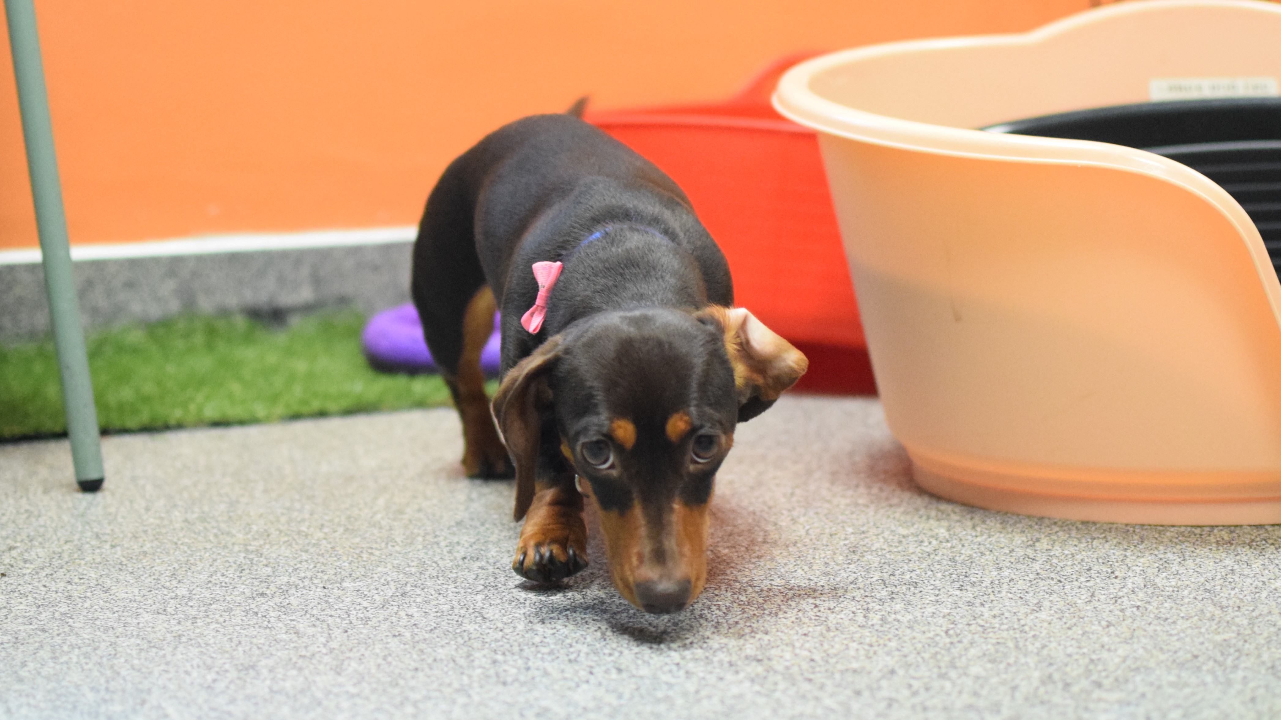 She can be quite the vocal girl around other dogs - as a typical daxi! She can be a little worried around unfamiliar dogs but is friendly once properly introduced and playful once built in confidence.