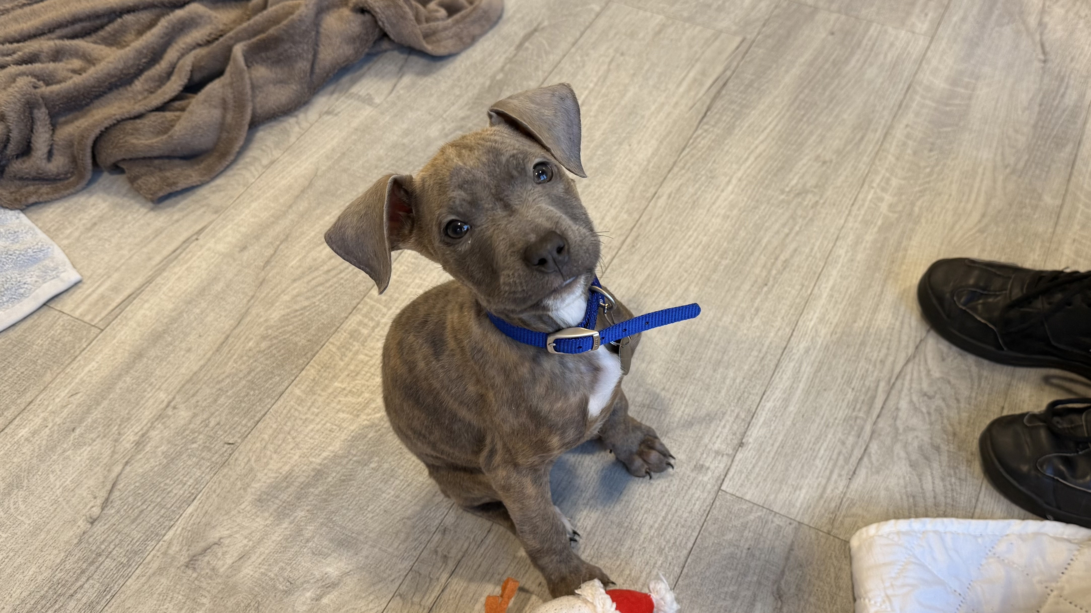 Like all puppies, she is full of curiosity and enthusiasm. She loves exploring the world around her, playing with her toys and settling with people.