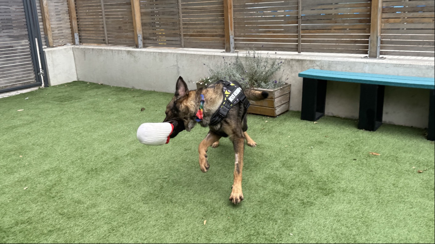Lion can be a typical Shepherd and is a vocal boy when he thinks a treat is on the cards and if kennelled near the kitchen the whole block knows it. He is a friendly boy with everyone he meets and once you're on his friend list, which doesn't take long, he loves a fuss and cuddle.