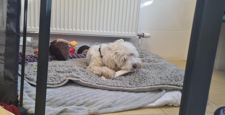 Little Milo does have some anxieties around strangers, which show themselves as him being reactive by barking and grumbling at people he does not know. This will be Milo's main area of training and management and he will need very sensible owners who can see past his cute looks and breed type and appreciate he is quite a complex boy who will need time, patience and careful support. This being said, he will repay his owners tenfold with affection and fun. People who have a quiet lifestyle who have had dogs with stranger wariness or reactivity before would be ideal for Little Milo.