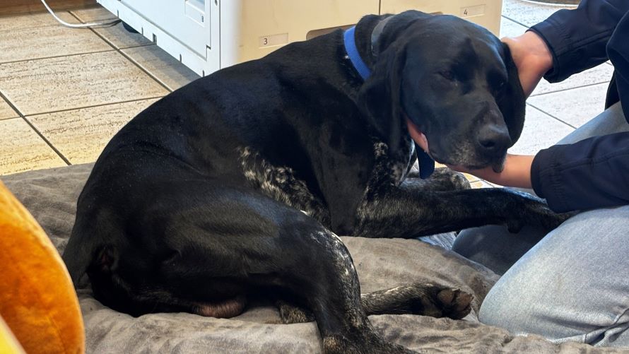 He has a lovely history from his previous home and was housetrained, travelled well in the car and was happy to greet visitors. Here at Battersea Old Windsor we have seen Louie to be very affectionate- if you sit on the floor with him, he tries to climb onto your lap or will flop his head onto your legs for a stroke of his soft ears.