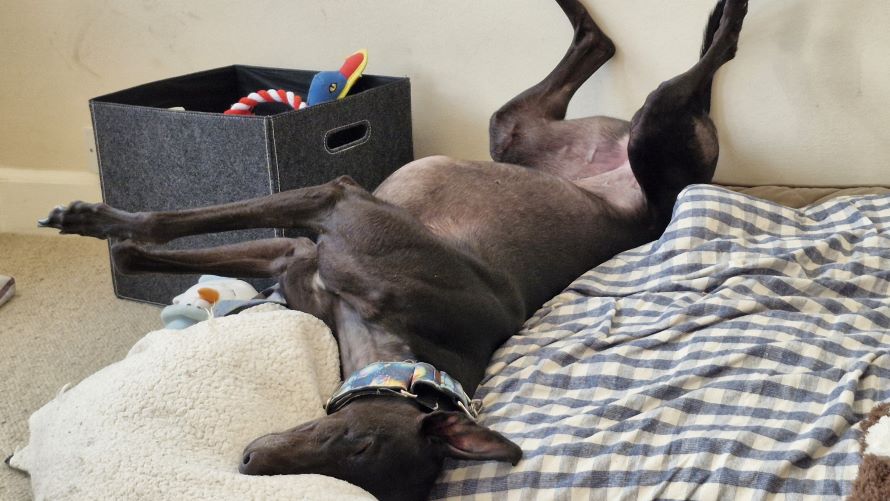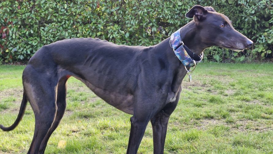 Likes many Greyhounds, some of her favourite things are relaxing on her bed, leaning on people for a fuss and treats - chicken really is the way to her heart. Maggie's not yet mastered the art of playing with toys but with some encouragement once she's settled she might enjoy a chase game with a fluffy toy.