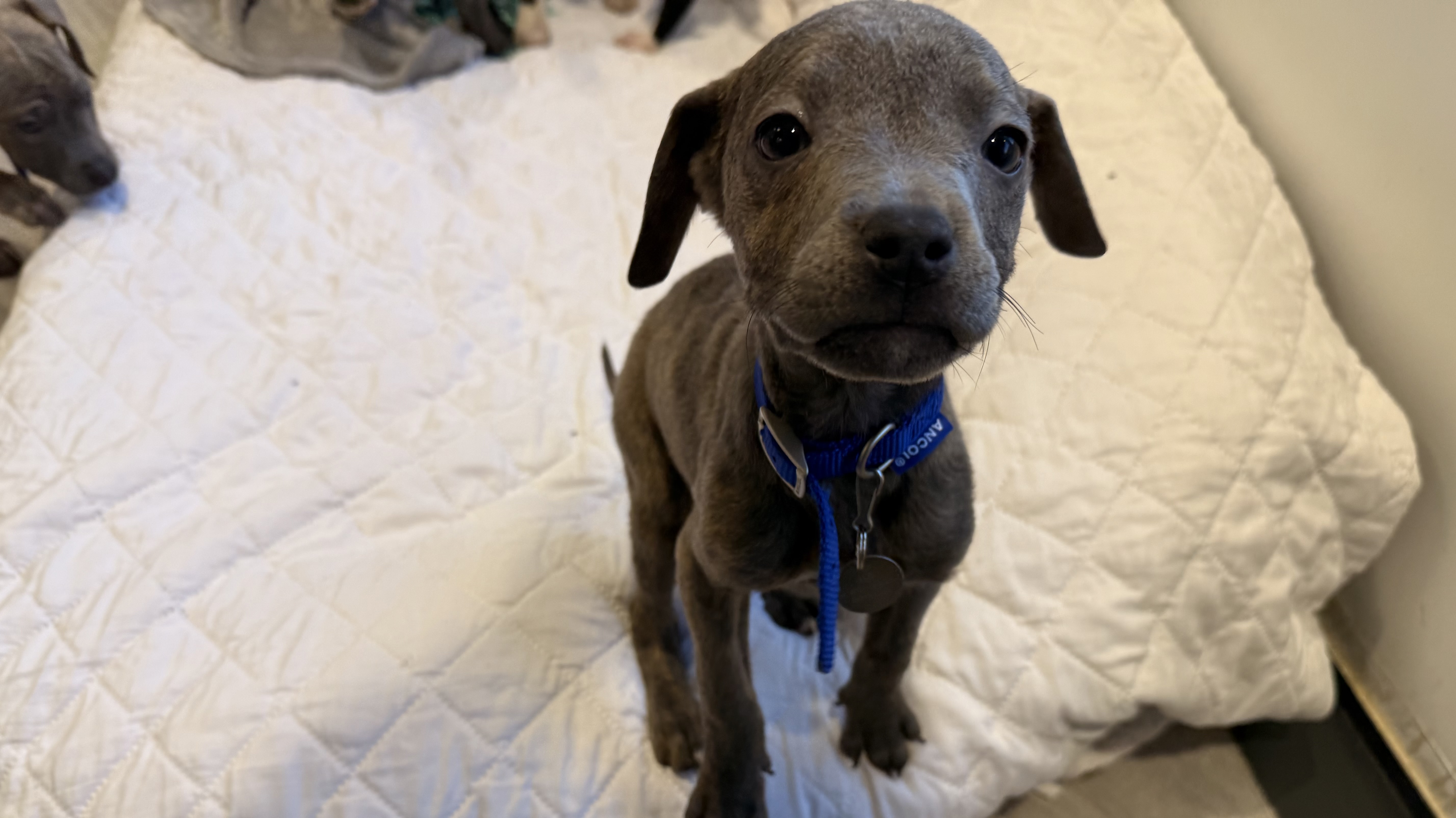 Maryland is a sweet, lively Presa Canario mixed breed puppy who is just starting to learn about the big wide world. Like all puppies, she is full of curiosity and enthusiasm and loves interacting with people. She can be a little mouthy at times, but this is typical puppy behaviour and she can easily be redirected onto toys.