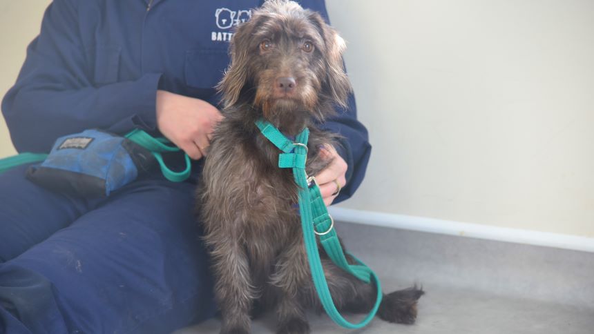 Mavis is a sensitive Patterdale Terrier cross based at Battersea Old Windsor who is looking for a quiet home where she can settle in at her own pace.