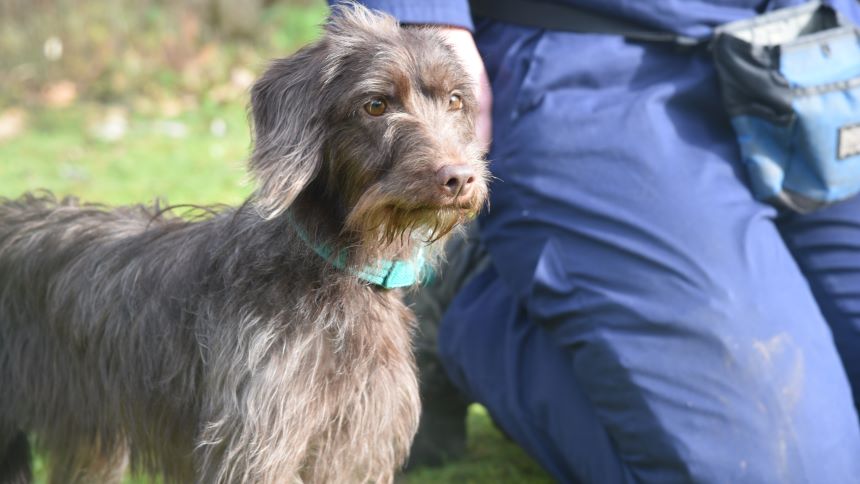 Mavis is a worried dog who is looking for supportive and patient new owners who can help her flourish into a more confident dog in time. She can be worried of new people and does better when people are calm and quiet around her.