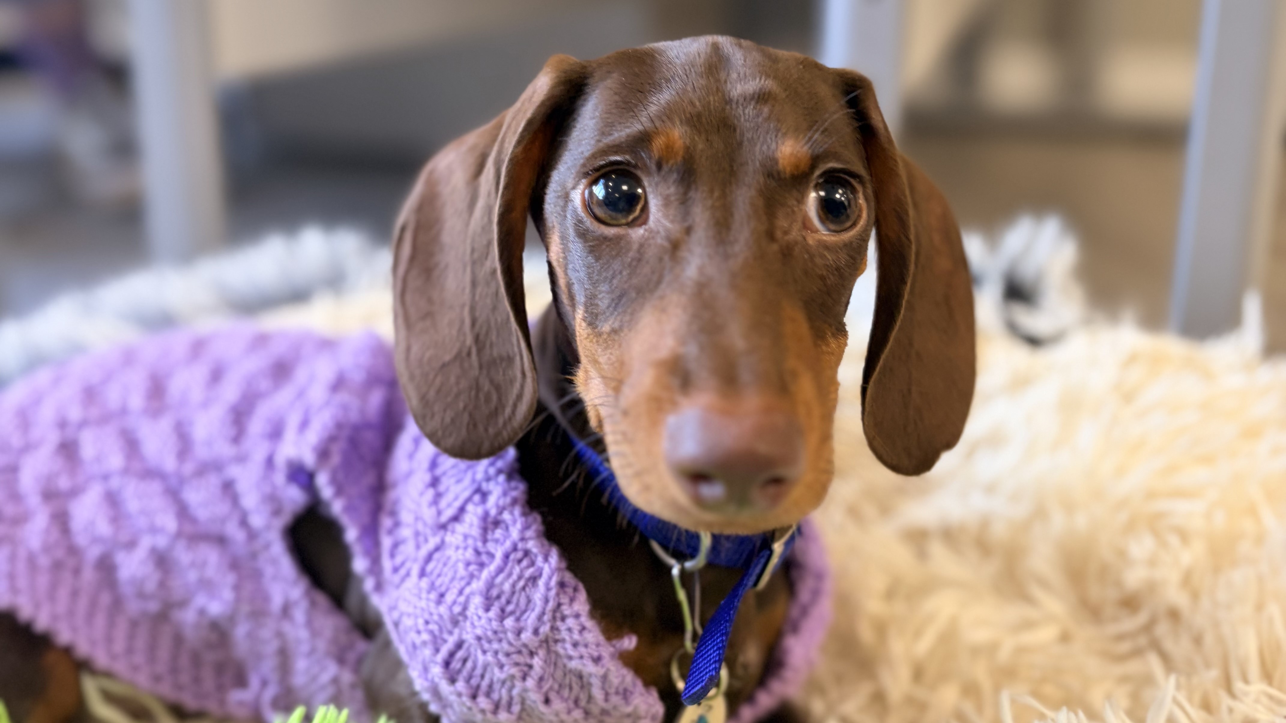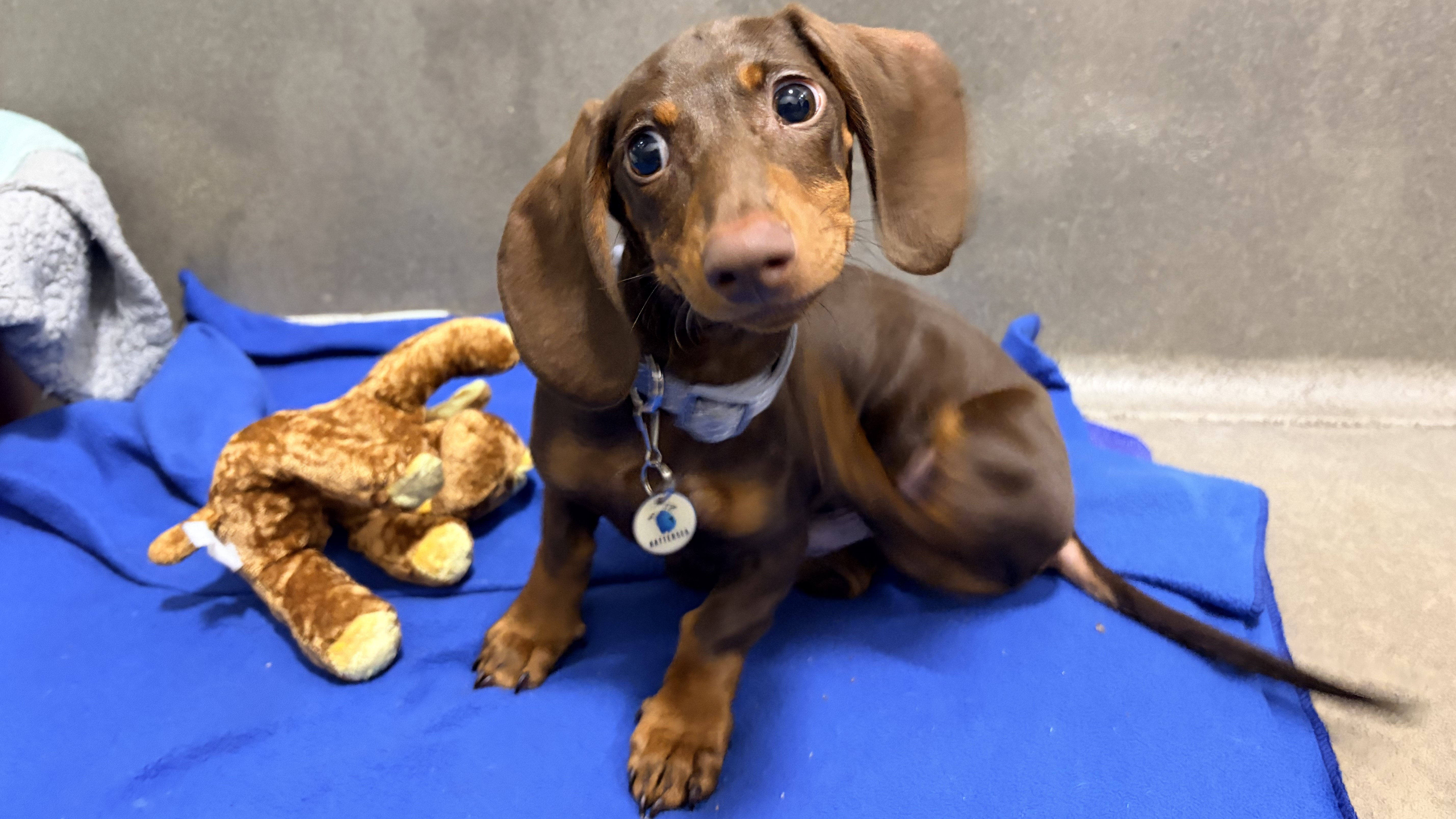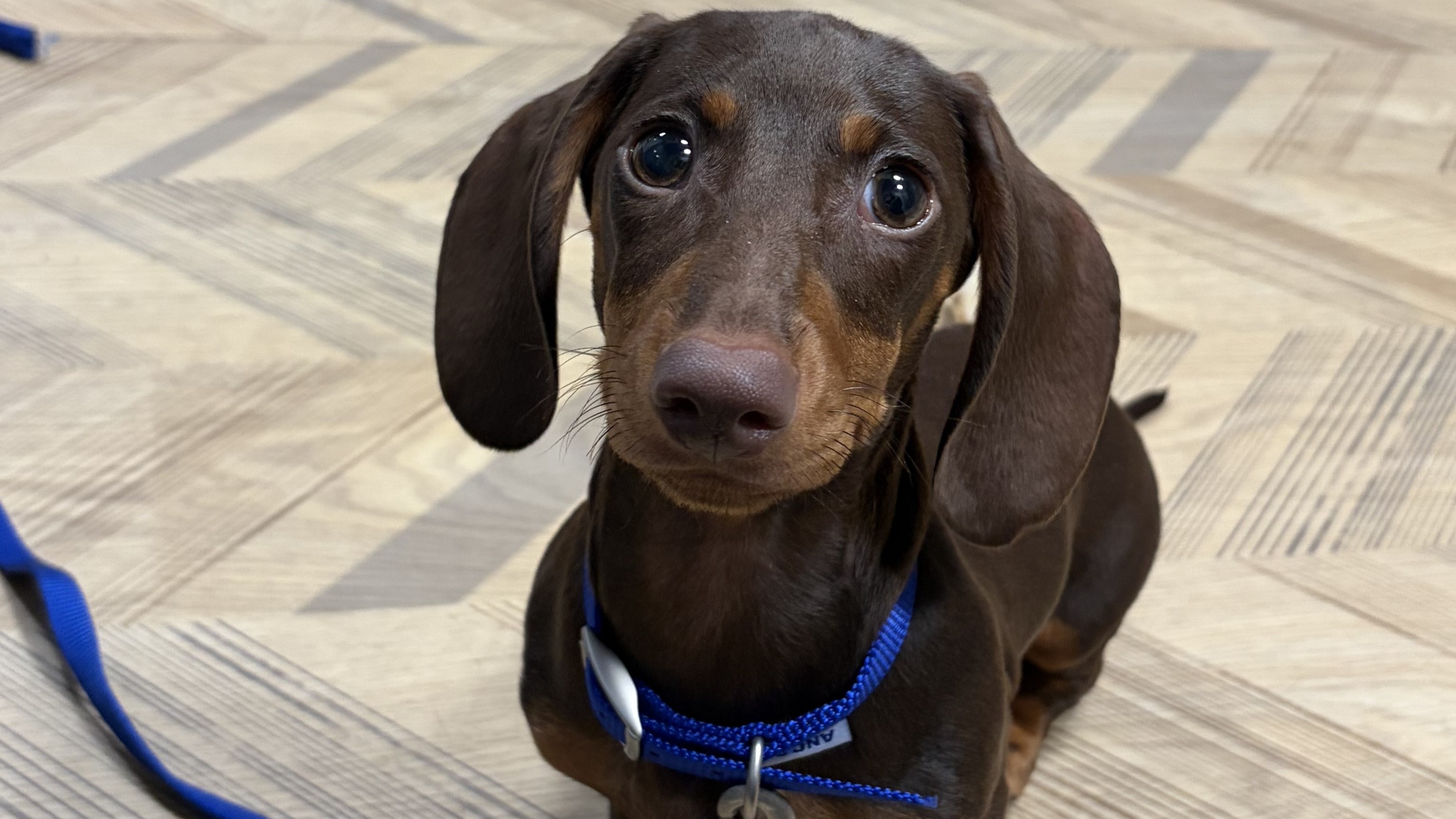 Meet Milo, a 5-month-old miniature dachshund with the biggest heart in a tiny body. He came to us with a very limited history so we know little about his life before Battersea. This wiggly little sausage is friendly, playful, and quick to make friends wherever he goes, and he has already shown (or rather, heard!) to have a lot to say--true to his breed, he can be quite vocal and will let you know when he is unsettled by something. Milo is a sensitive soul who loves a fuss, enjoys his toys, and is always ready to explore the world.