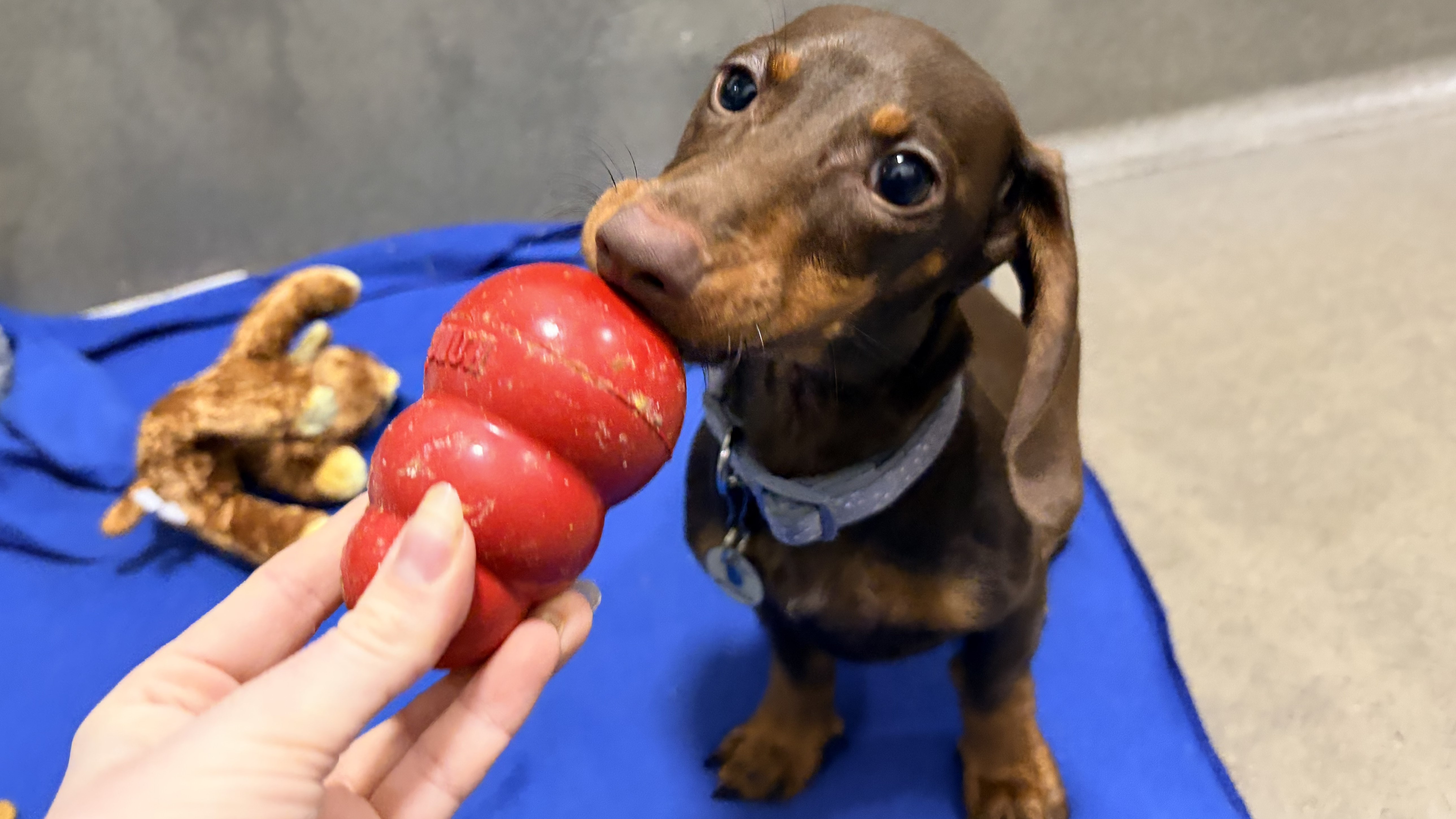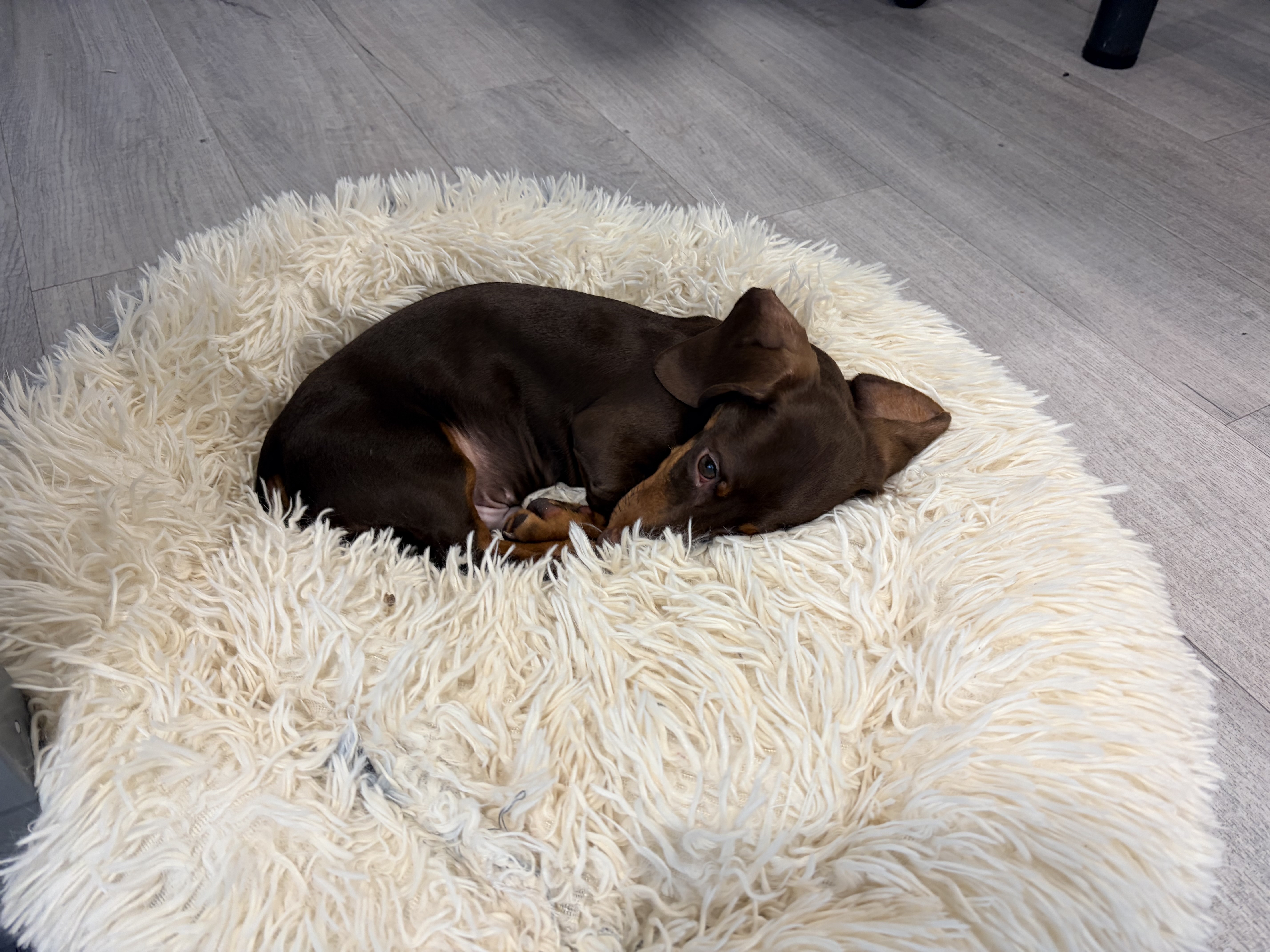 He has shown to be friendly and playful with other dogs so would potentially benefit from a steady role model dog to show him the way. Milo would suit a loving home where he can build confidence and feel safe, and would hugely benefit from owners with prior experience of and eagerness to research the dachshund breed, as he has already started to exhibit typical dachshund traits. With gentle guidance and early training, he’ll grow into a wonderfully well-rounded companion. If you’re looking for a sweet, joyful pup with a keen scent-hound nose, intelligent brain, stubborn wit, and signature dachshund long body to share your days with, Milo is ready to steal your heart!
