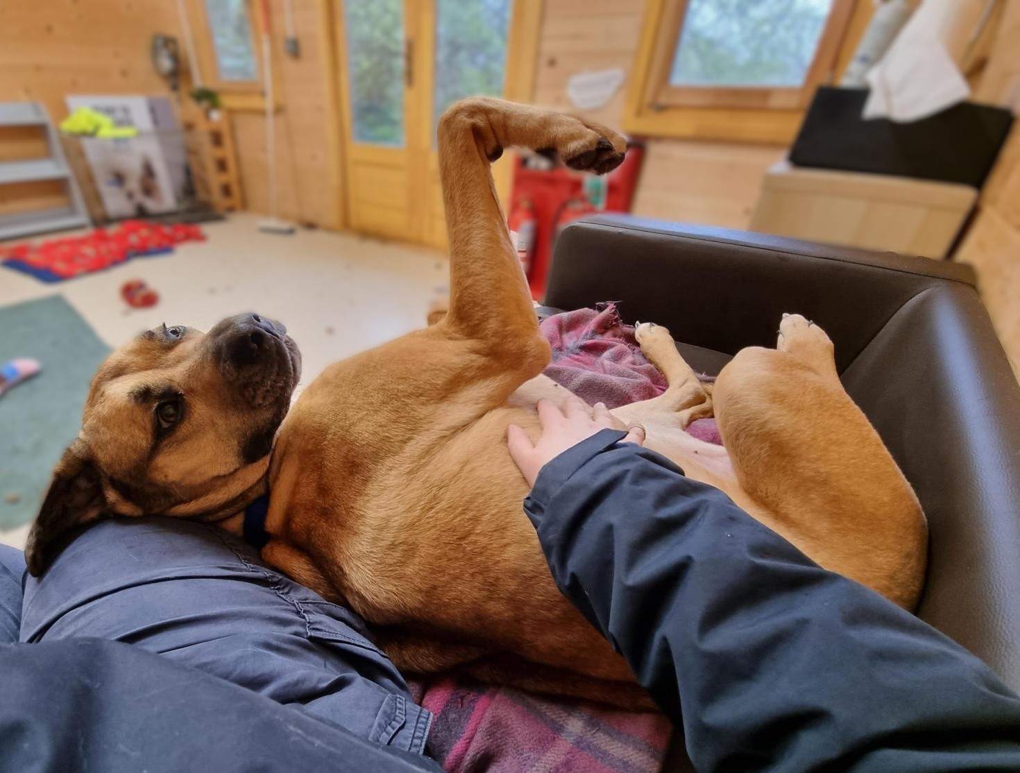 Nala is a bit of a worried girl and needs new owners who are patient and understanding that she likely won't leave the house for a while. It is also a possibility that as Nala has been this way her whole life, she may not make it out on walks and would instead prefer to have a quiet garden to relax in and have as her outside area. New owners should understand that pushing Nala to face what she finds scary will have adverse effects and would likely slow down or even stop bonds being built. We have taken Nala to private fields and she has benefited from quieter locations but finds very open or noisy locations overwhelming, so she would love her new owners to continue taking her to secluded places where she feels safe. She has been a bit unsure about getting into the car at times but has made progress with this and would benefit from her new owners spending some time continuing to building up positive experiences with travelling. It is recommended that Nala’s new owners have experience with dogs with anxiety and worry before due to her lack of confidence.