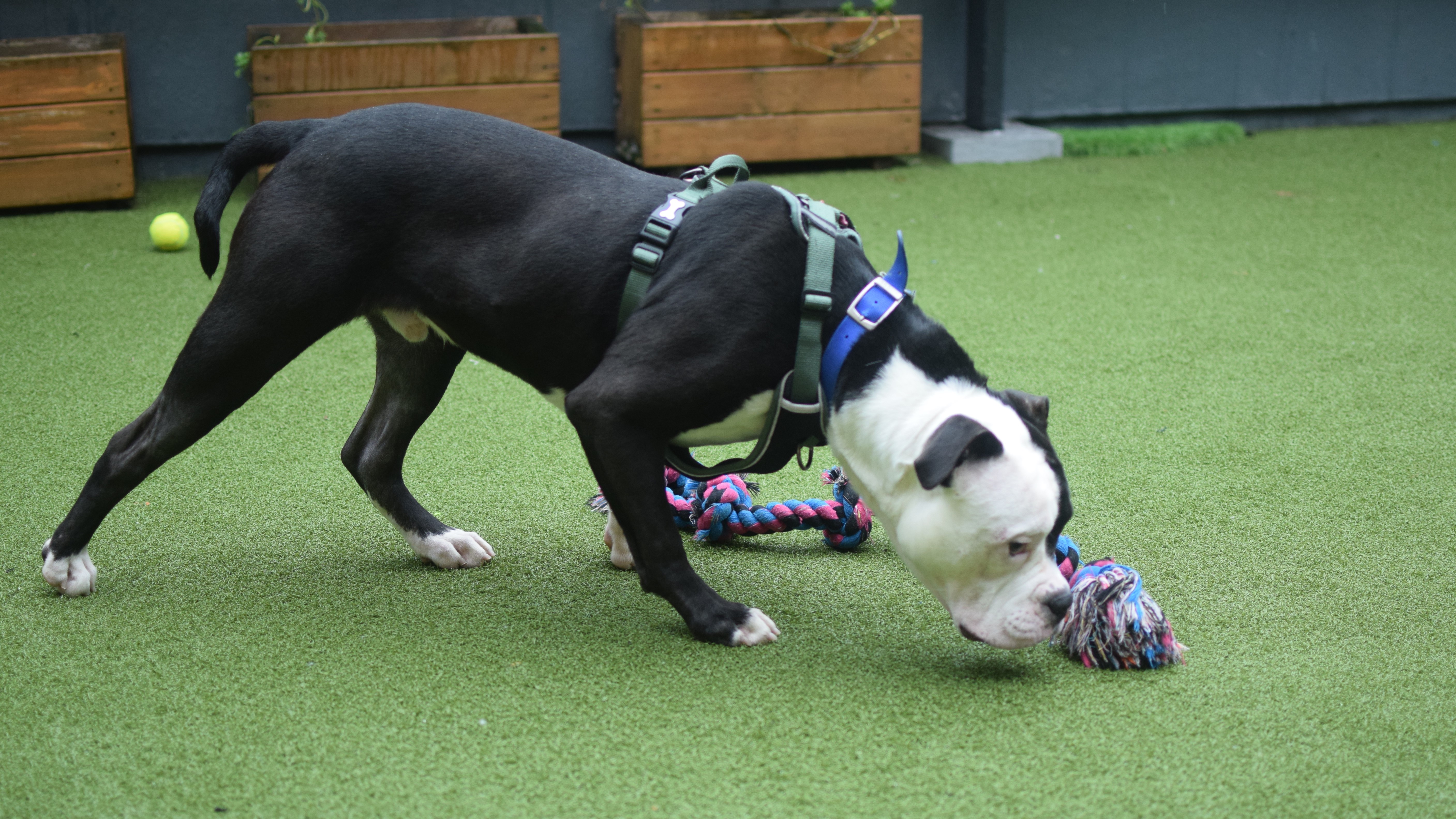 He was described as friendly, playful and excitable, and that absolutely shines through once you get to know him. Like many young dogs, Nelson has found kennel life a little overwhelming but with time and routine he has made great progress and continues to improve every day!