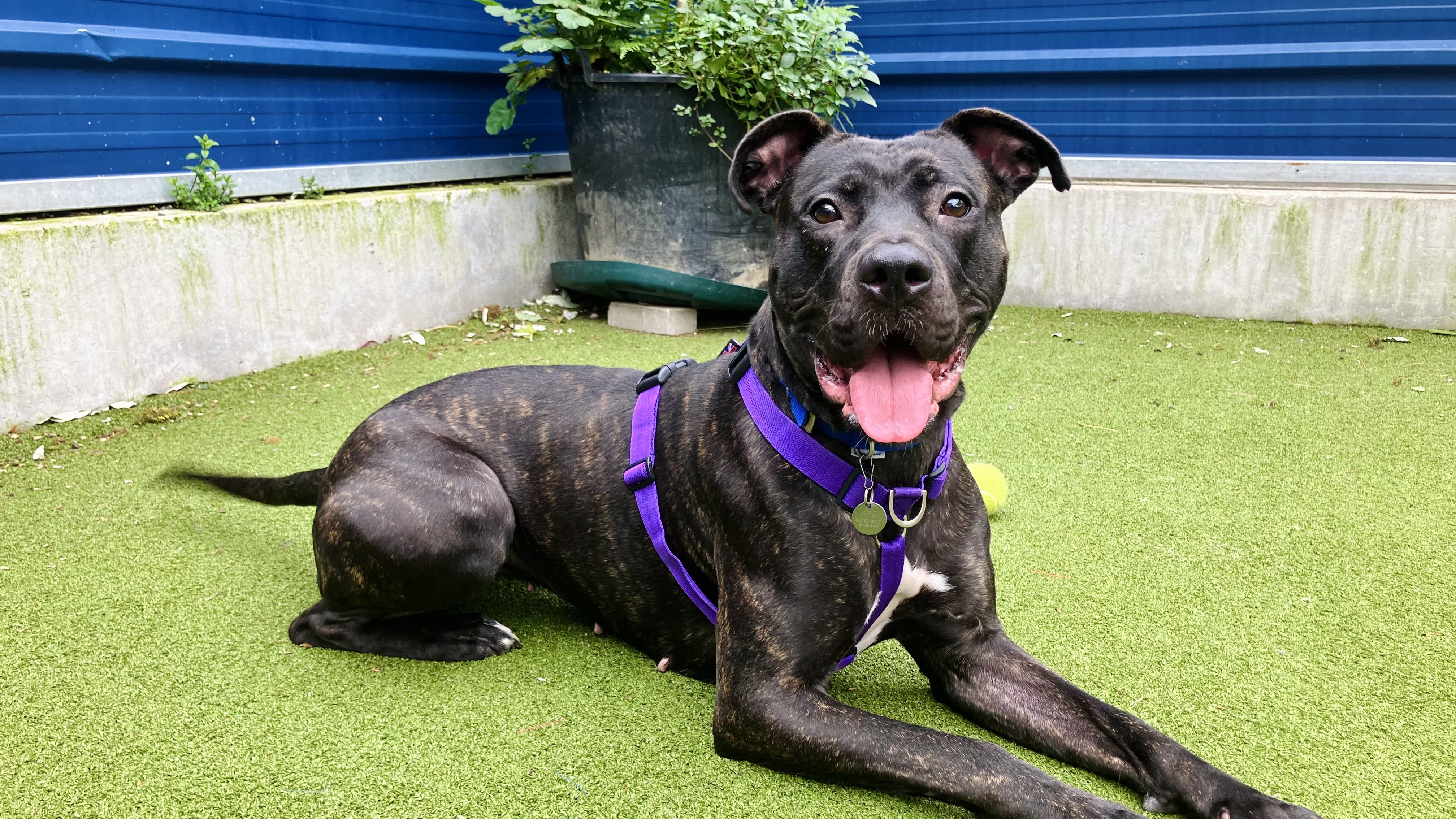 Meet our wonderful Ocean! She has come on leaps and bounds since her stay with us at Battersea! She has a wonderful, fun character and would be perfect for active owners who have the time and commitment to dedicate to her and who will continue with the additional training she requires.