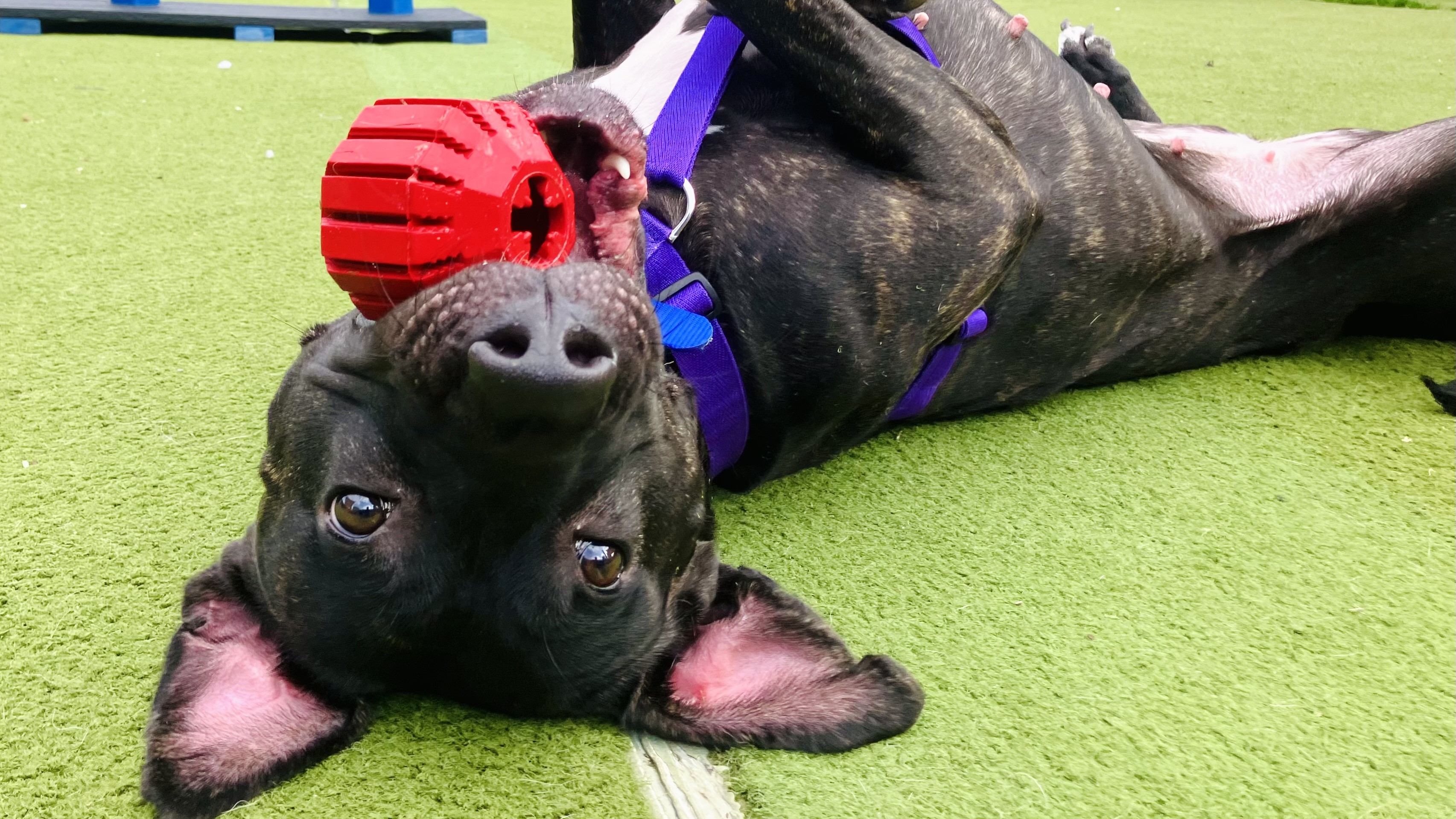 She loves nothing more than to play with her toys and have calm hands on with people which will help her settle as she can at times be sensitive and worried when being handled by new people. She has shown amazing progress onsite in terms of her confidence building and is always wagging her tail when greeting her care group and her known people!
