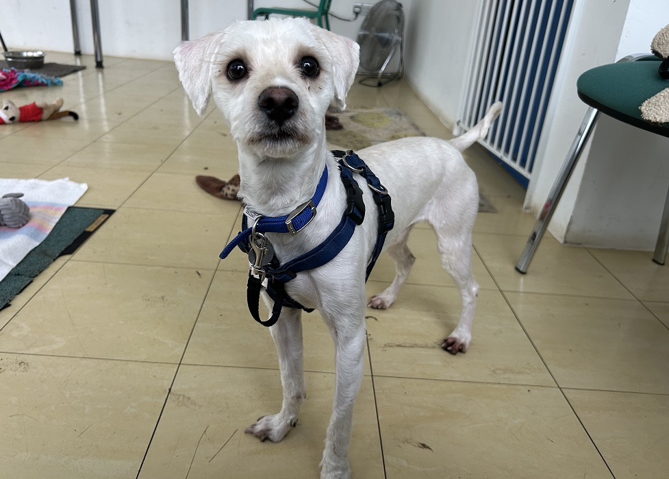 Oscar is worried of formal handling and grooming and it is imperative his new owners really understand and can commit to the support he needs in this area, as when he came into he was very overgrown and horribly matted, causing him great discomfort. Due to his coat type, he will need dedicated owners who understand the importance of maintaining the poodle type coat properly. Owners will need to spend time continuing to build on the positive association we have started with his handling and grooming here, building up to brushing him everyday. They will need to factor in the financial responsibility of monthly trips to the groomer to keep his coat and skin in good condition and prevent him from becoming uncomfortable, matted or suffering from skin infections.