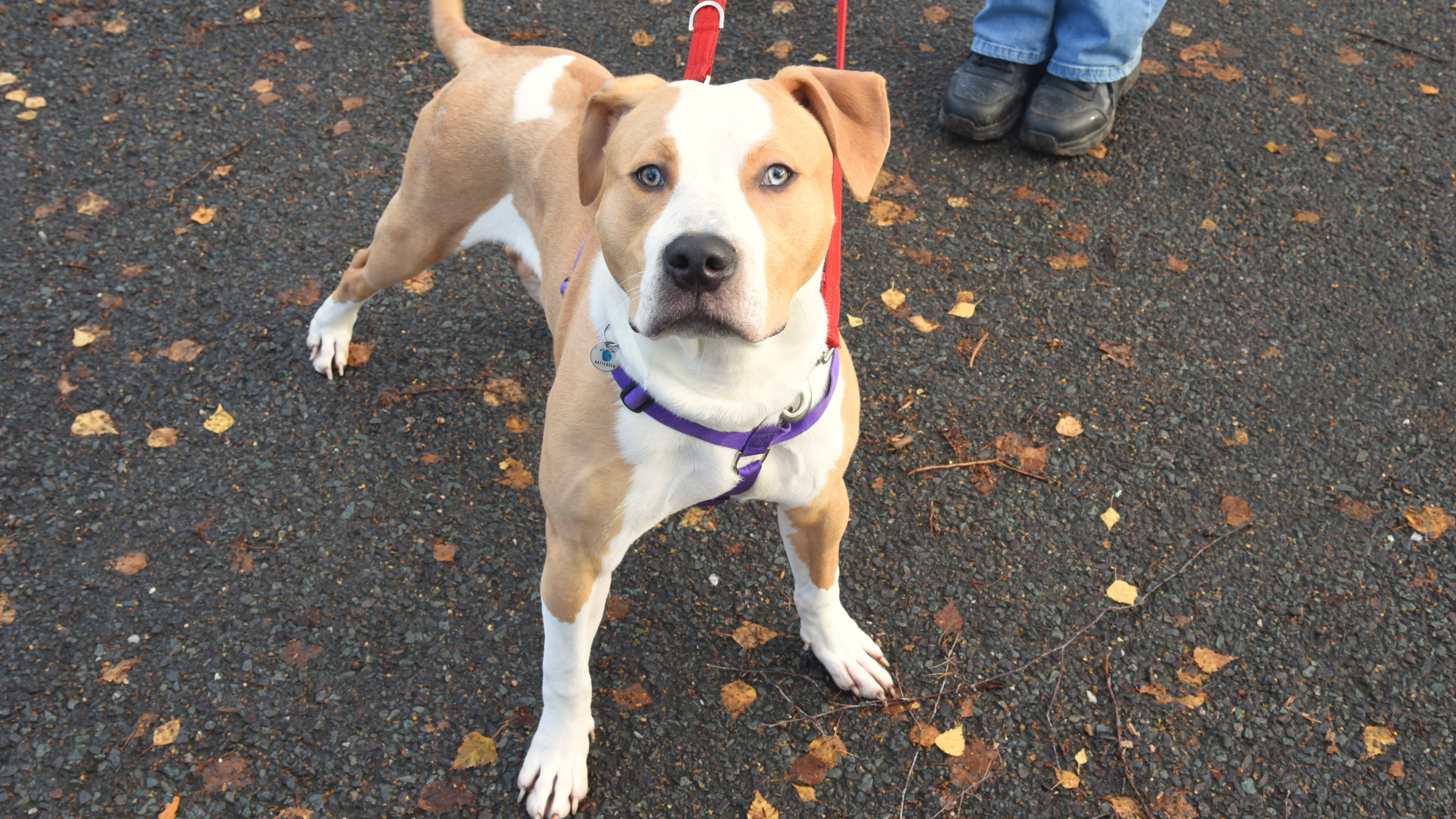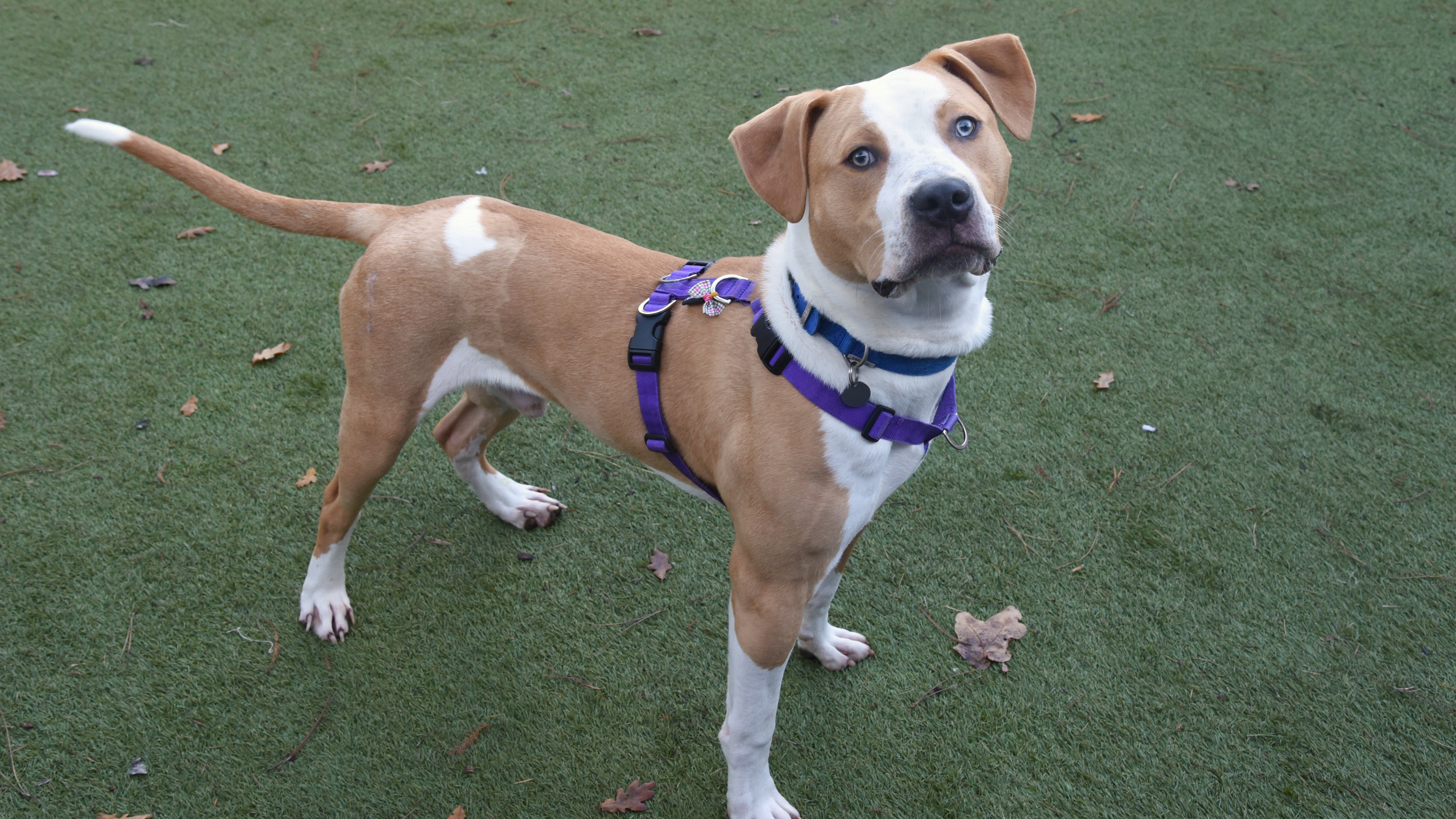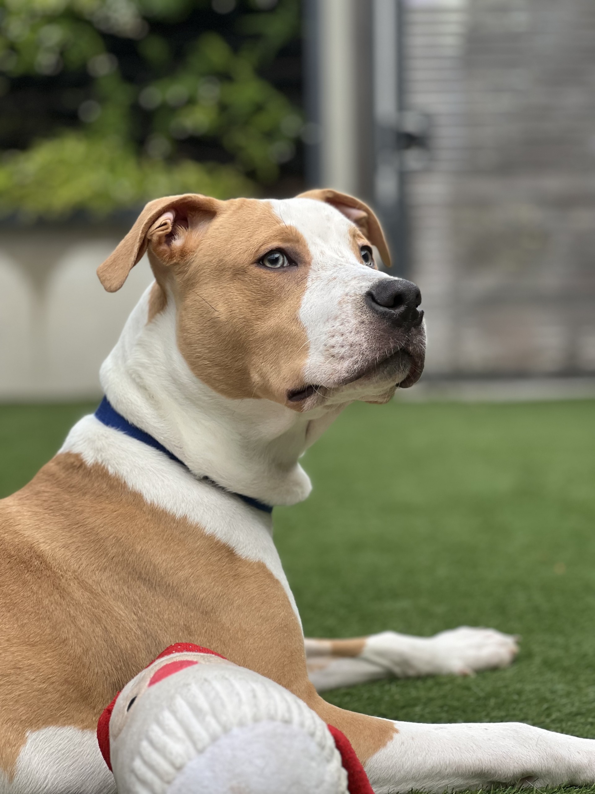 Pablo arrived at Battersea a gift and through no fault of his own. He is an enthusiastic American Bulldog cross who loves to play with toys and have cuddles with his known handlers. He is based at our Old Windsor centre.