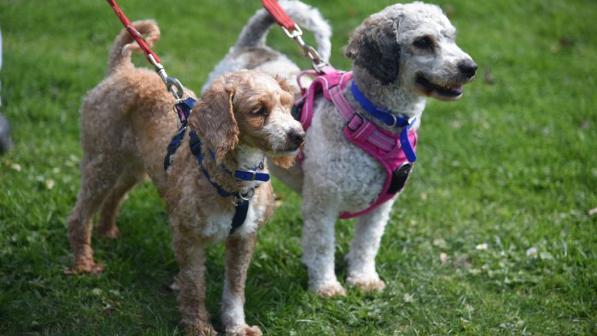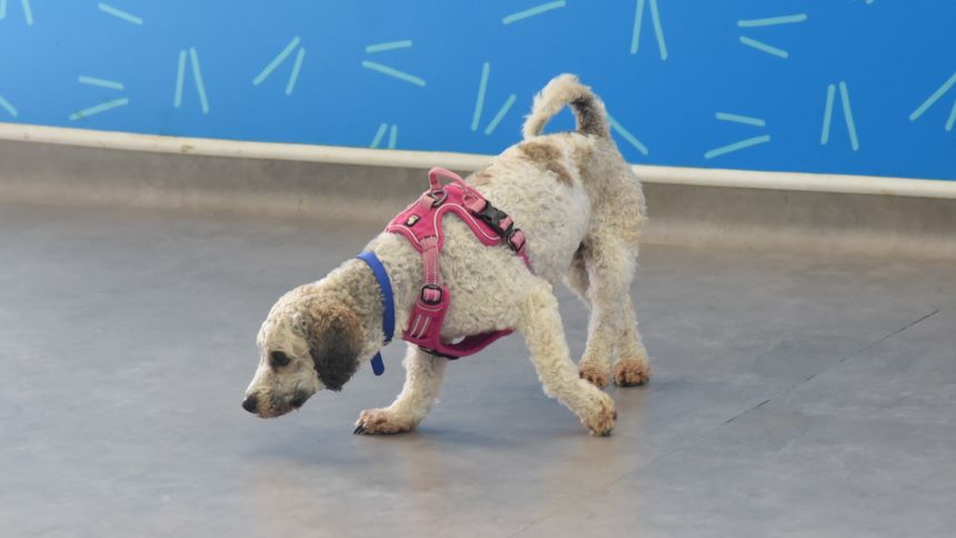 Pear & Peach have shown to be mostly independent when out on lead walks, and they’re usually able to stay settled when they see other dogs at a distance. They have met dogs of various sizes during their stay with us. Pear is generally comfortable around other dogs and handles greetings well. Peach may be a little vocal at first, but she has grown in confidence during her time with us and is showing much improved manners when meeting new dogs.. They would benefit from some calm steady walking friends to help keep them socialised.