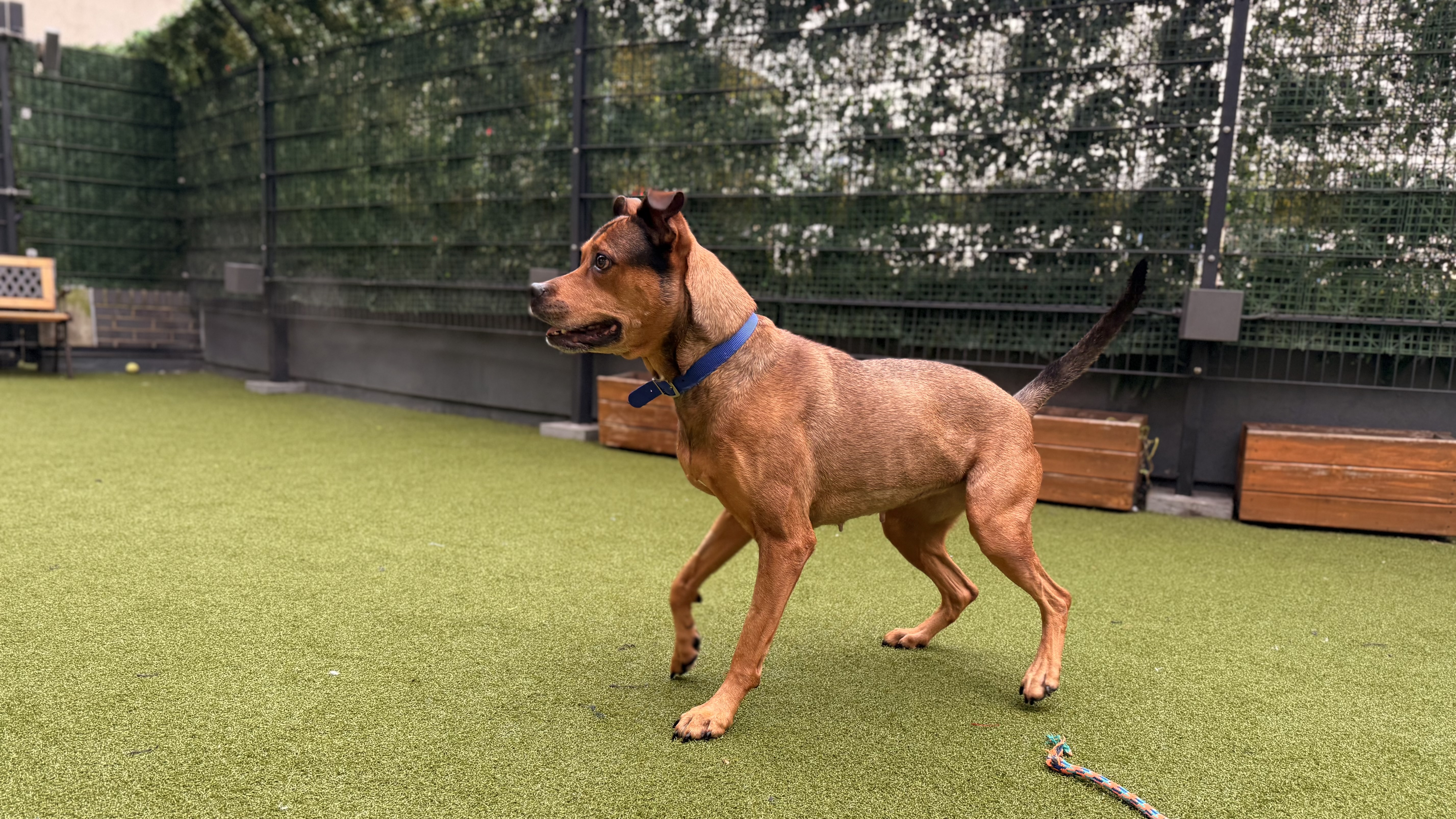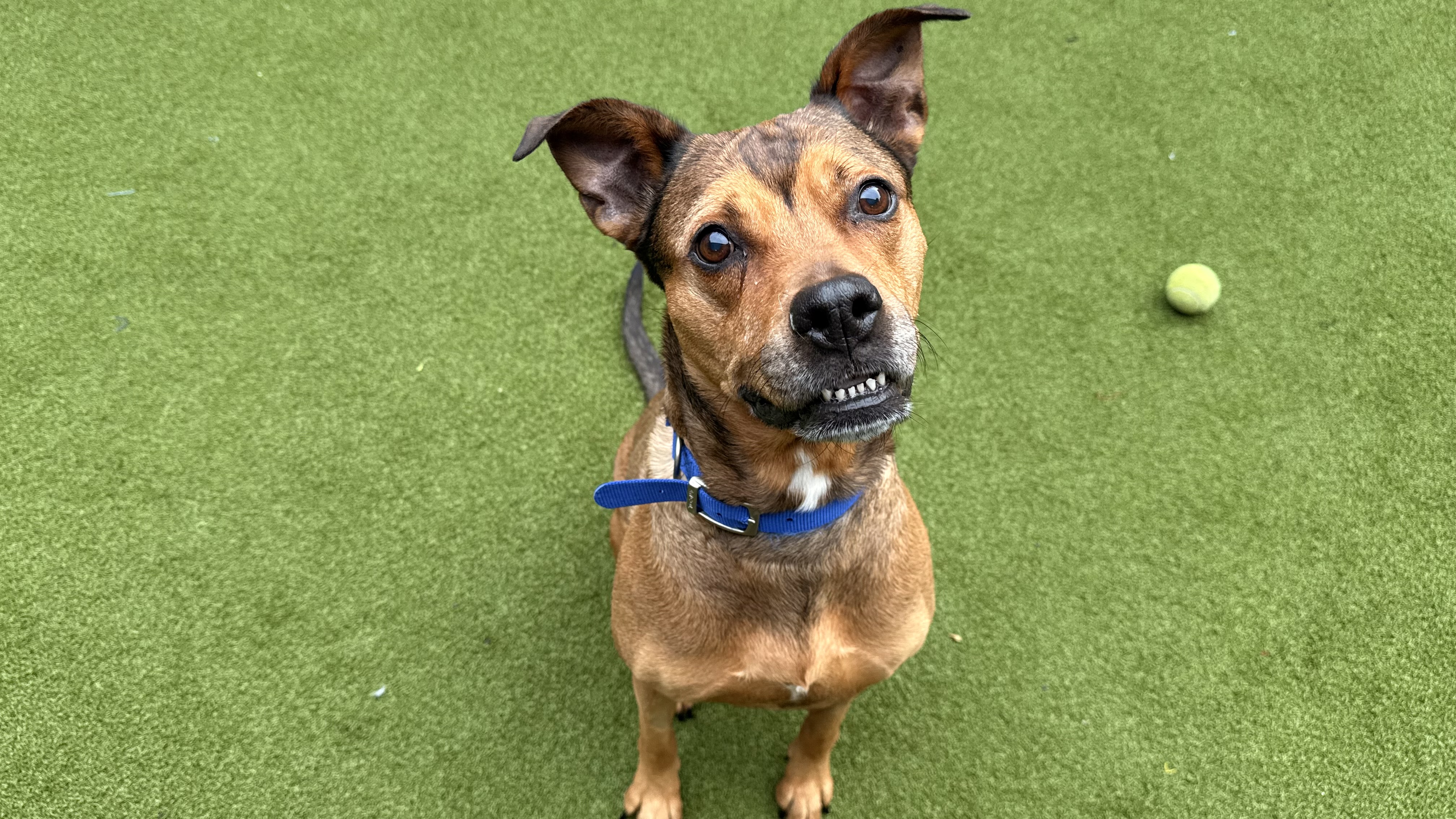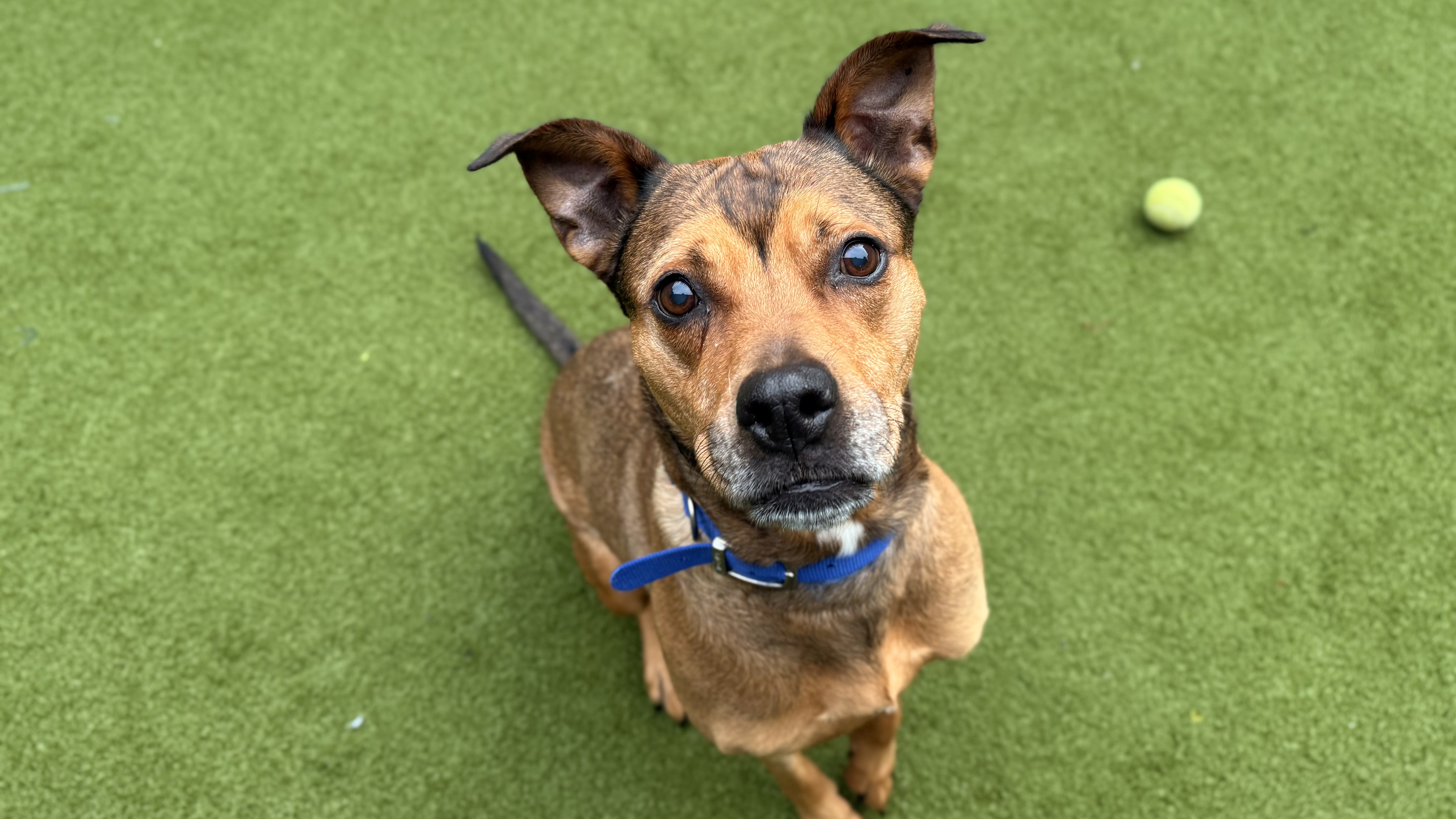She would suit a single owner, couple, or family who enjoy a relaxed pace, plenty of cuddles, and the occasional playful fetch session. Pear has not previously lived with children, but on site she has been playful with and without toys and has shown no sensitivities to handling. Given her lovely nature and size, she would be best suited to a home with older children (8+).