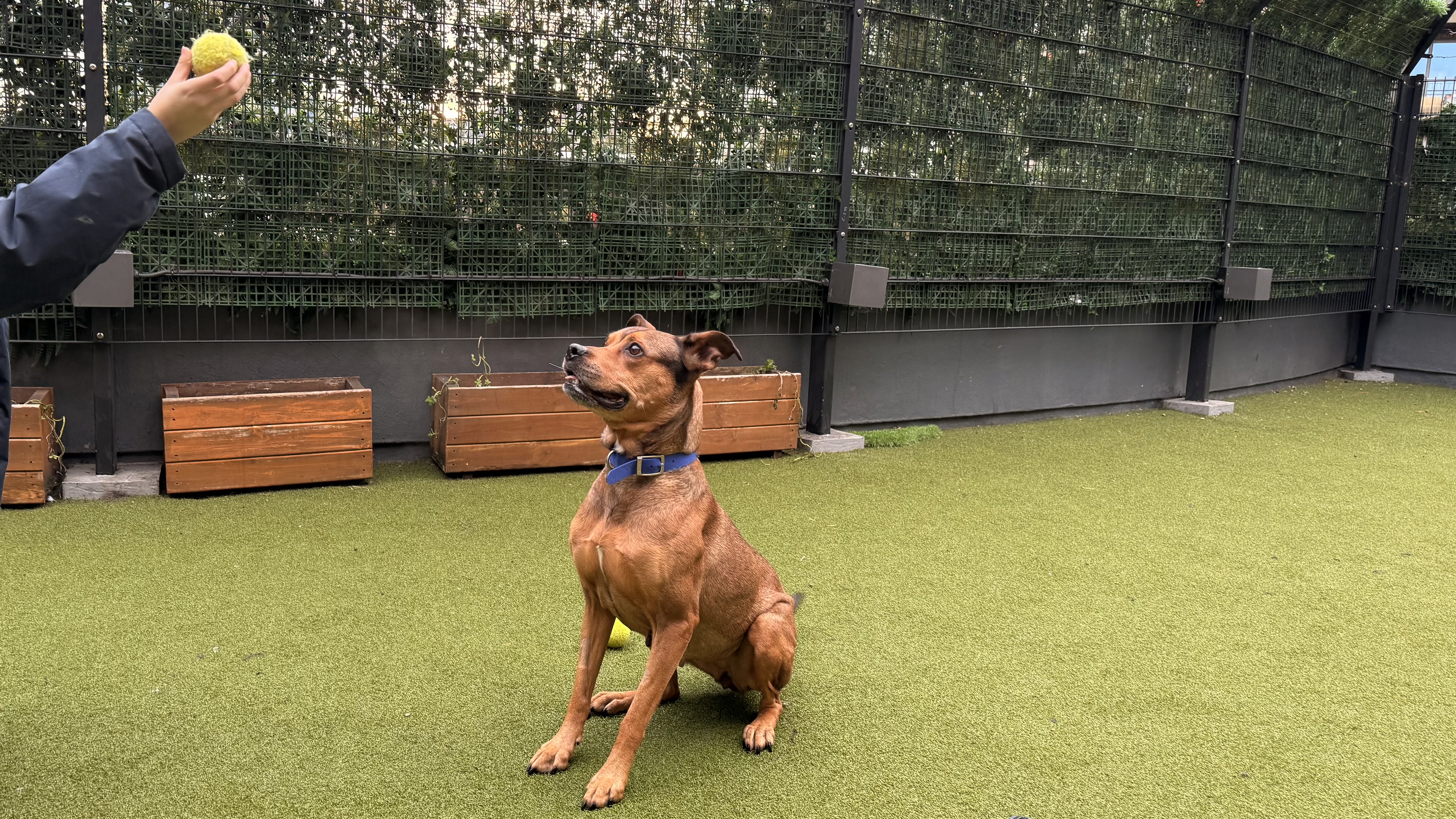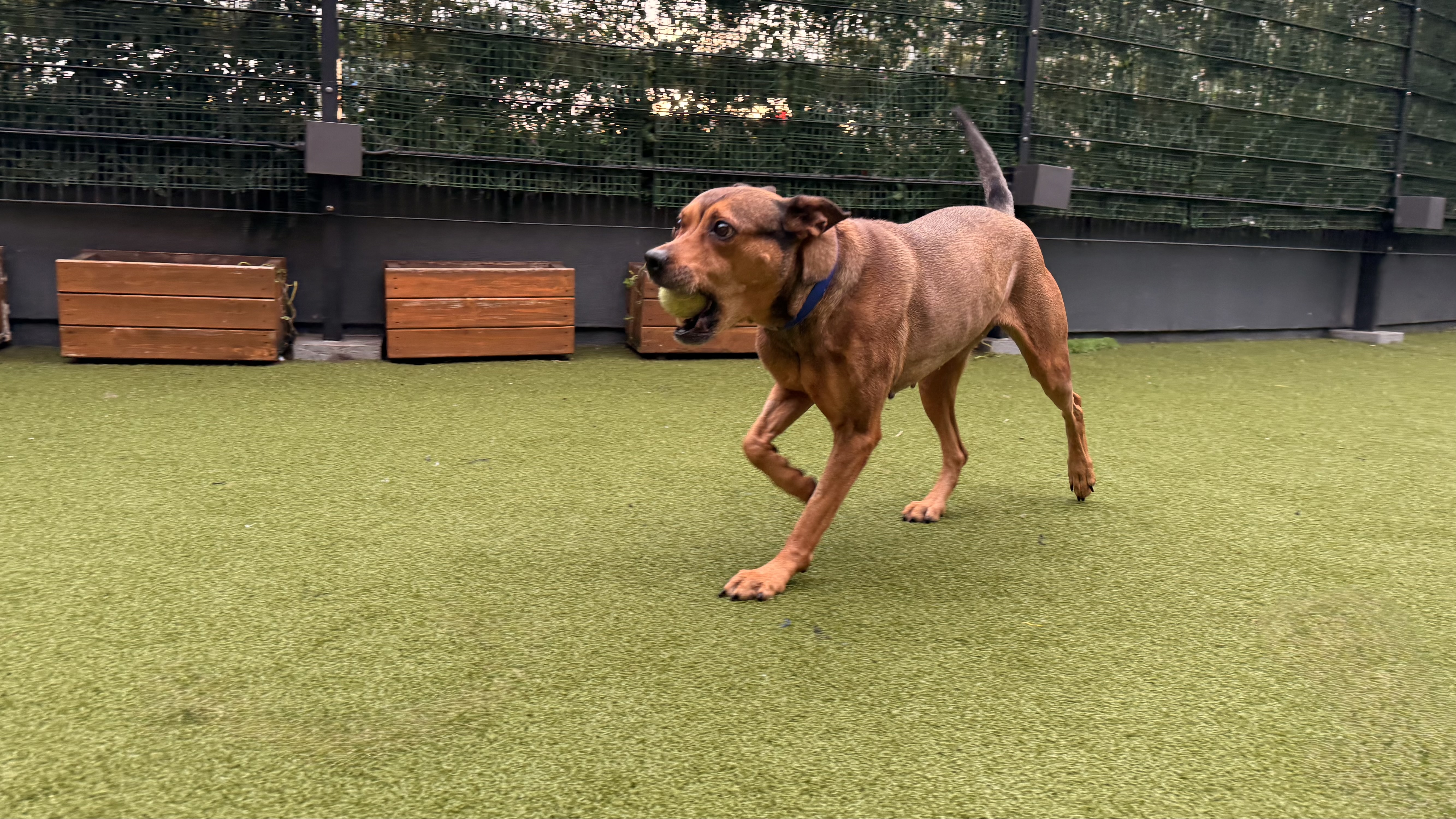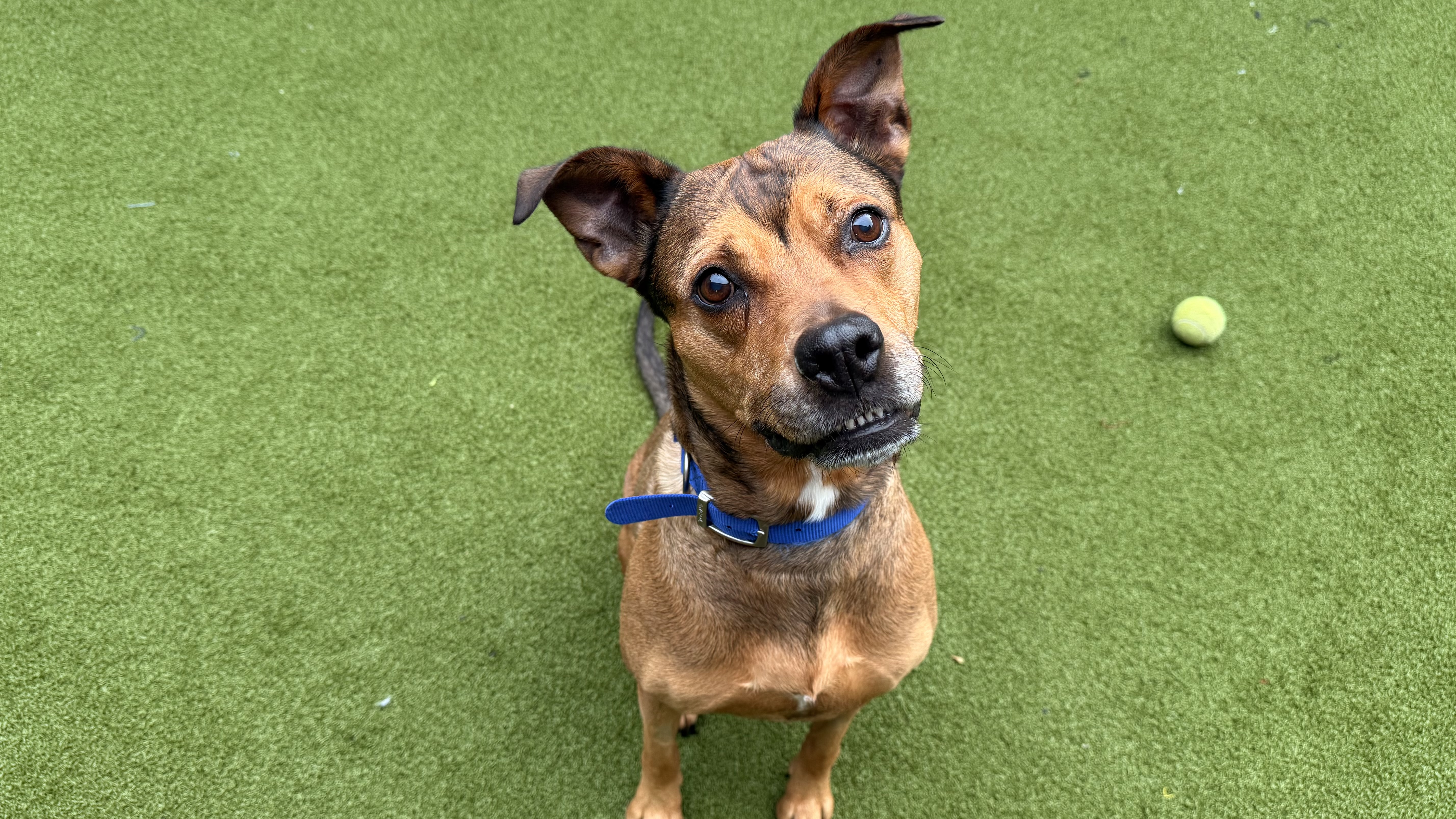 She would suit a single owner, couple, or family who enjoy a relaxed pace, plenty of cuddles, and the occasional playful fetch session. Pear has not previously lived with children, but on site she has been playful with and without toys and has shown no sensitivities to handling. Given her lovely nature and size, she would be best suited to a home with older children (8+).