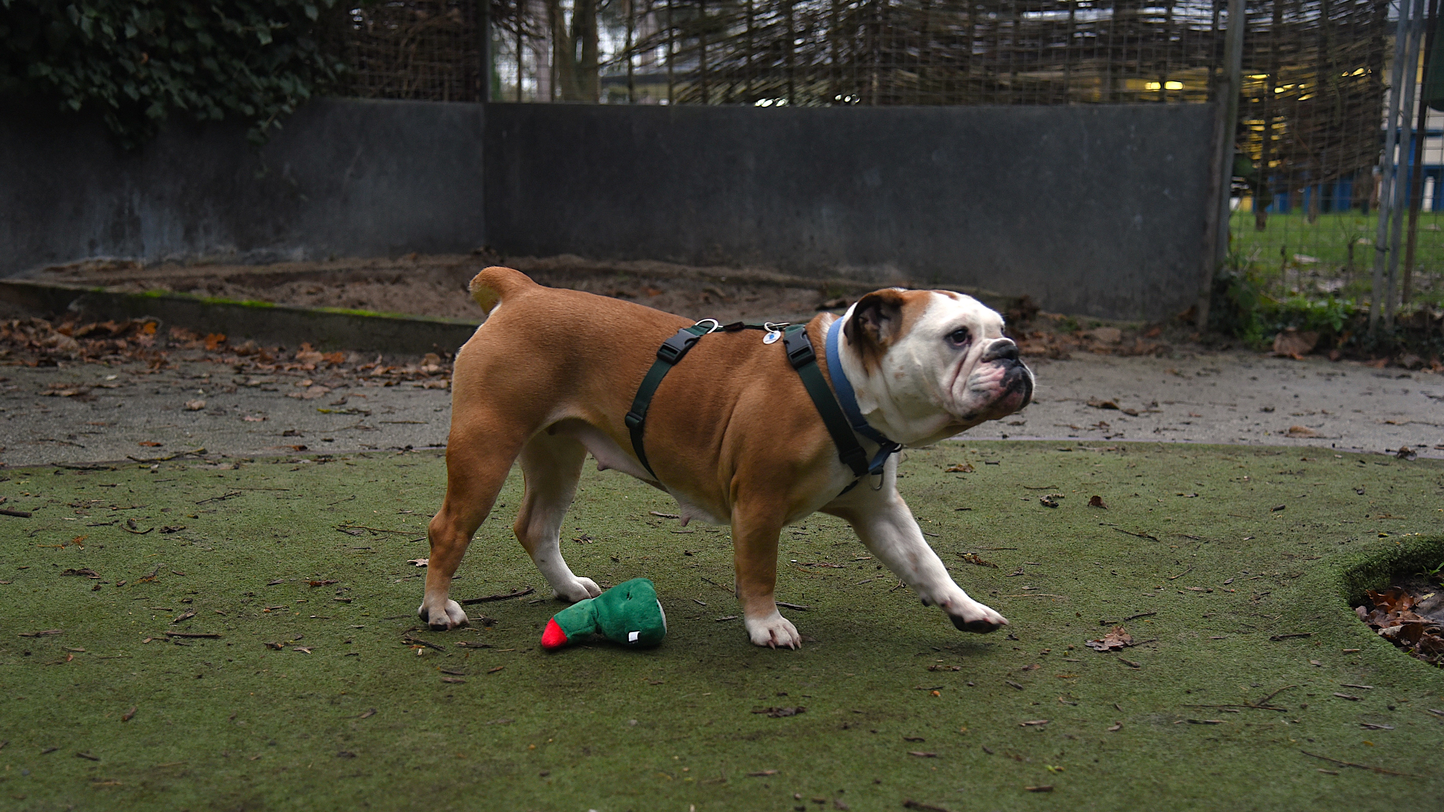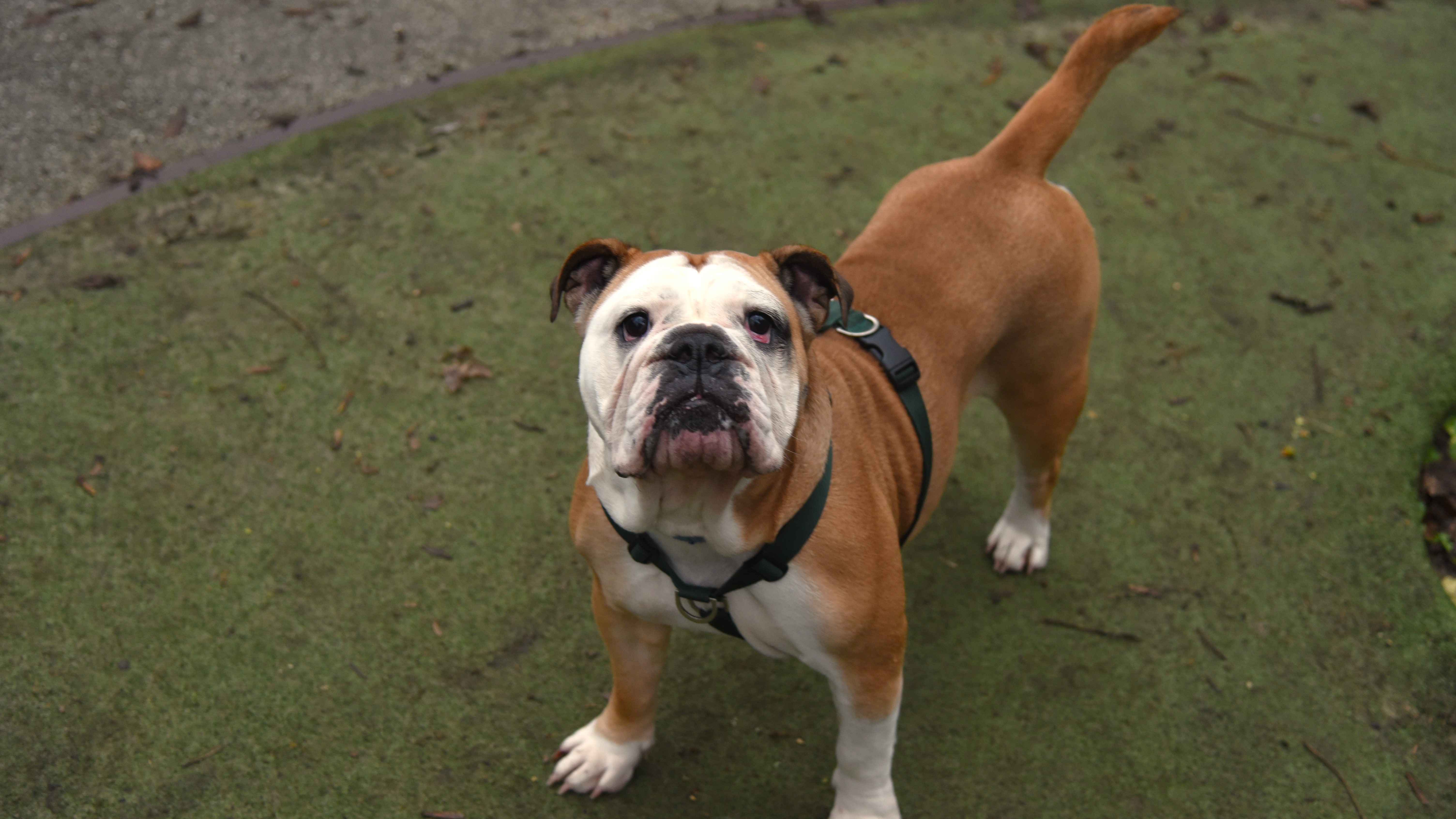 Peggy is a delightful Bulldog who enjoys being with her favourite people and eating snacks.