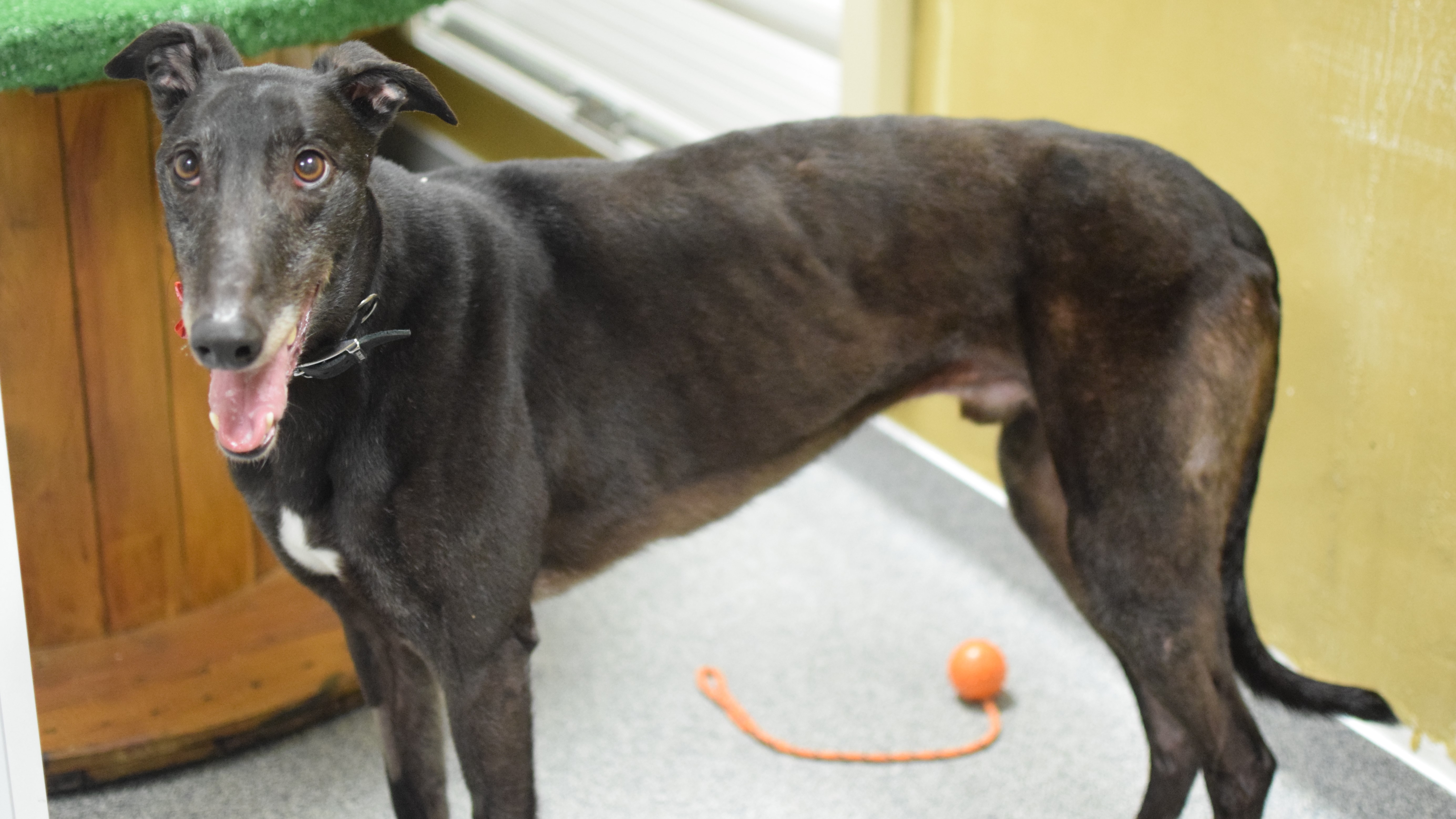 He was described by his previous kennels as being a fantastic dog who would make a great companion for anyone! He was also reportedly kennelled with another Greyhound previously with no issues.