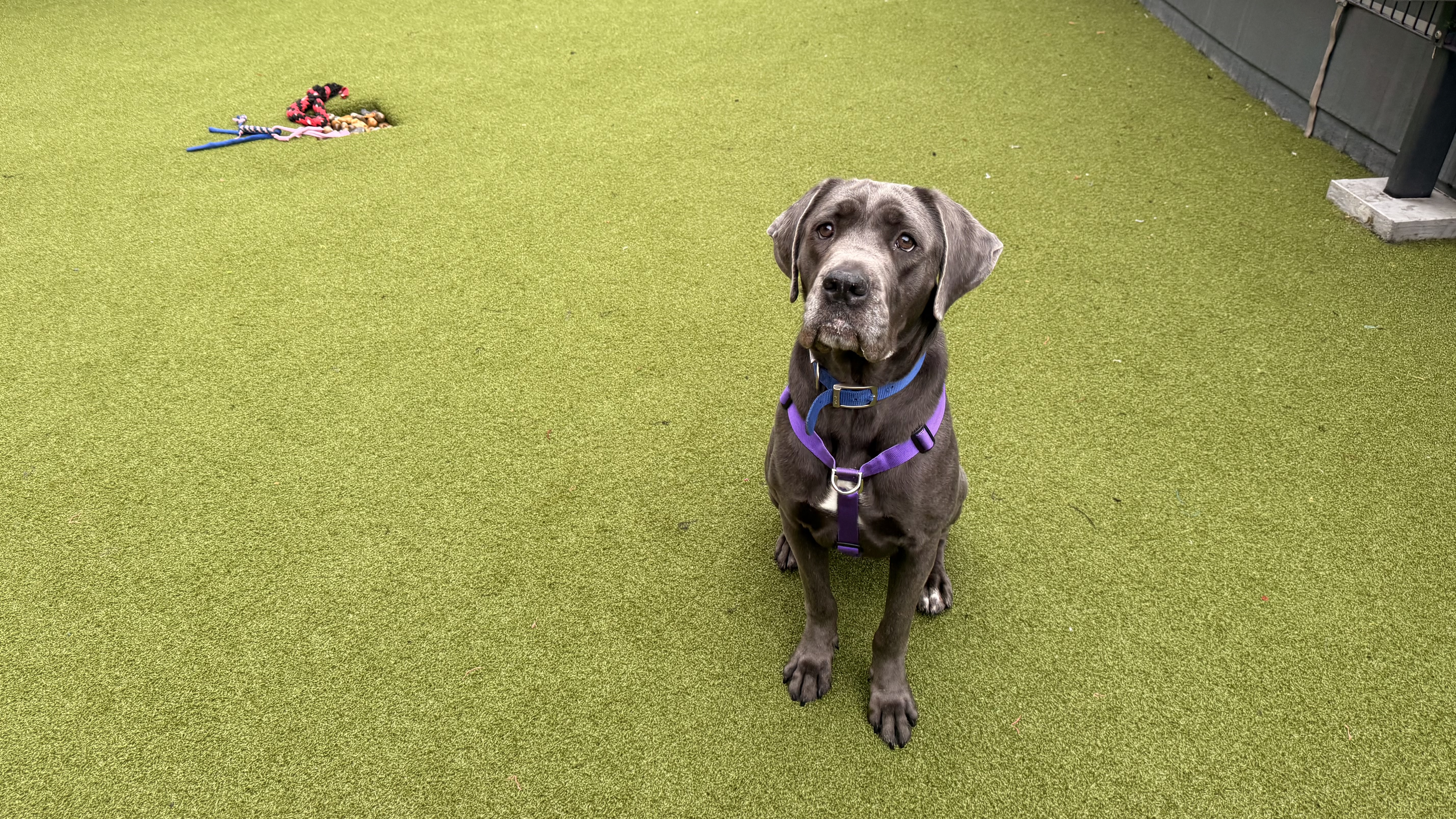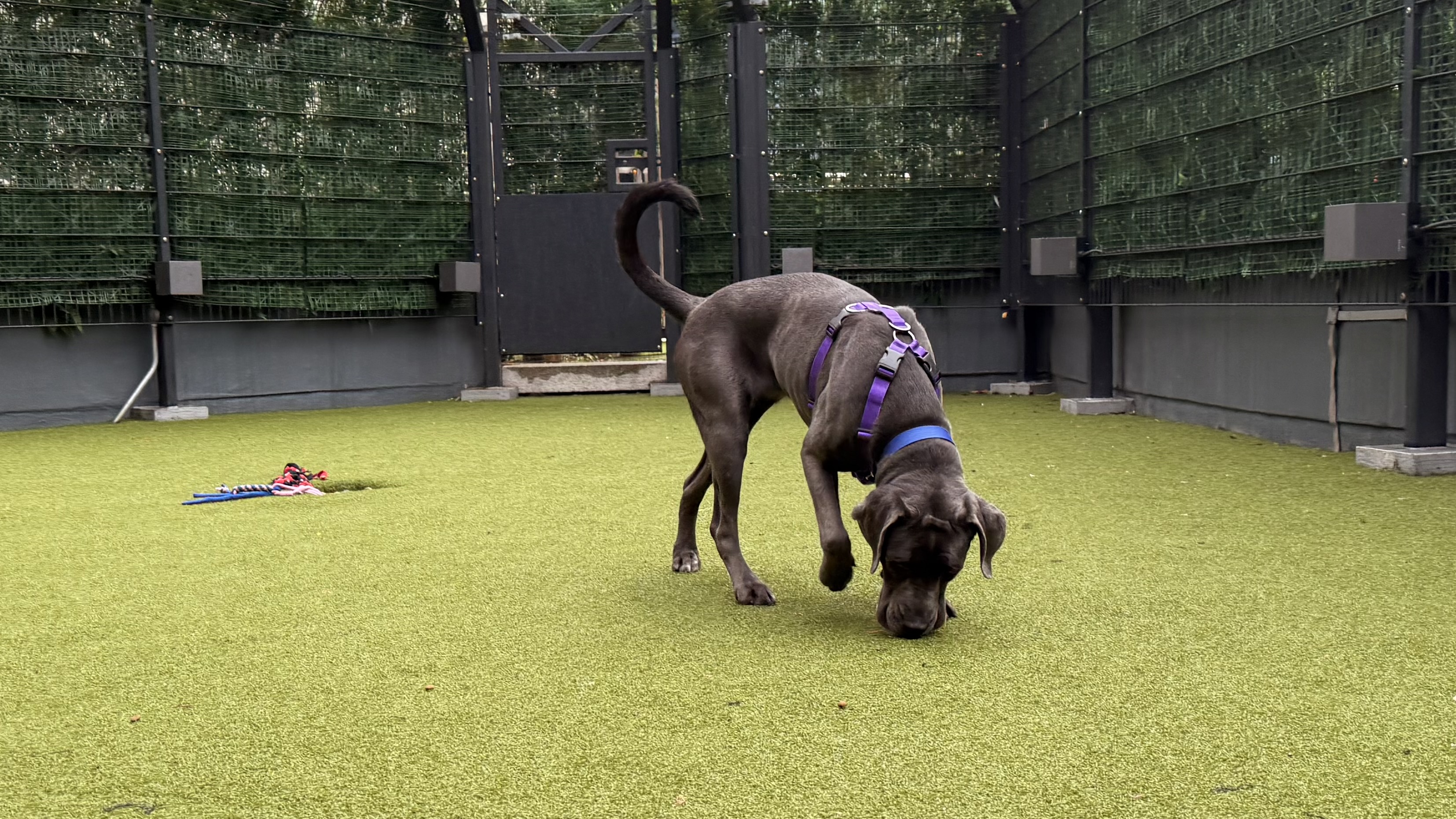 She is a delightful girl who has shown to really struggle onsite, especially outside. Roxy is quite noise sensitive and lacks confidence, and has therefore required some additional training with her humans to help her cope and address those worries!