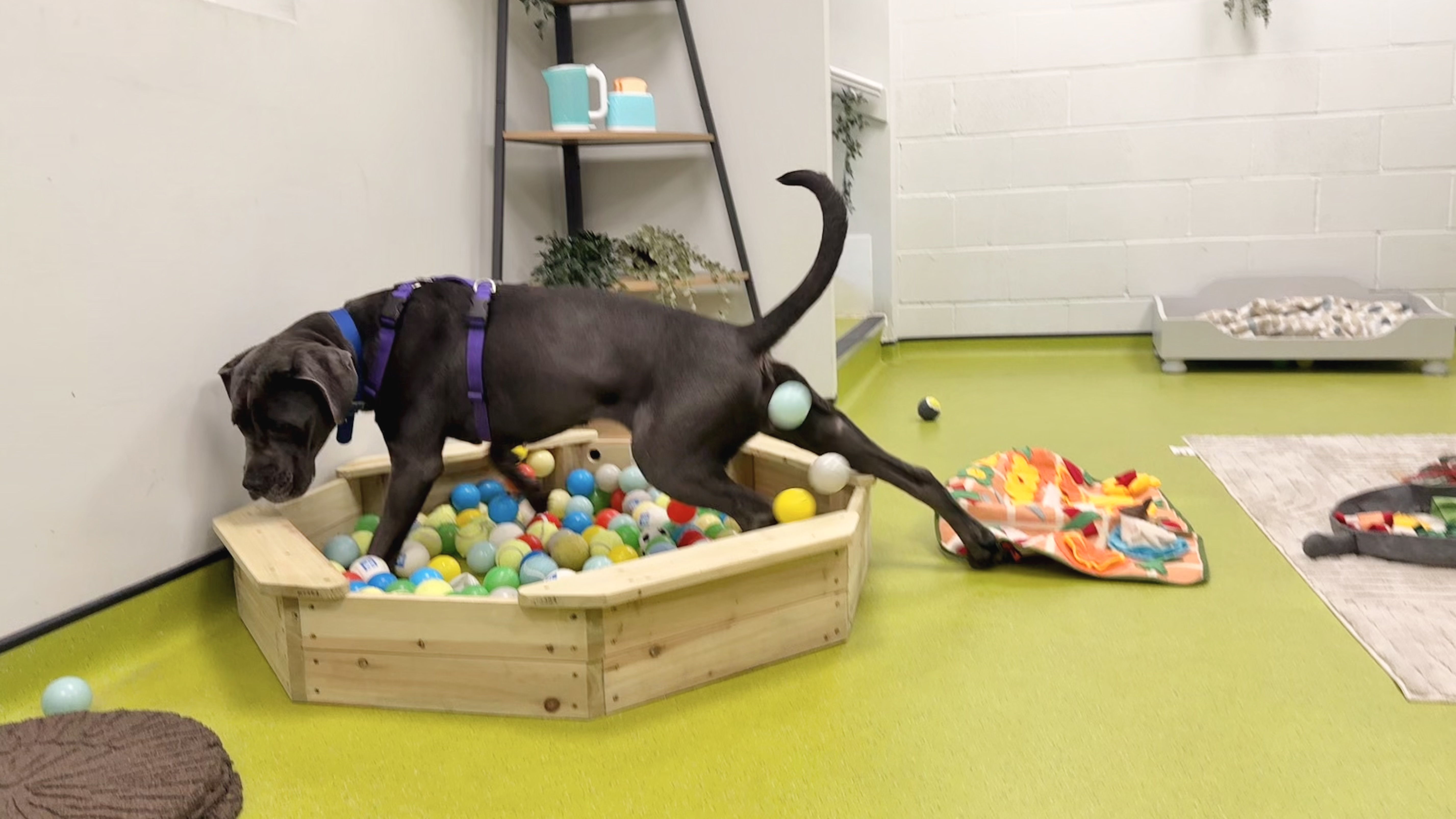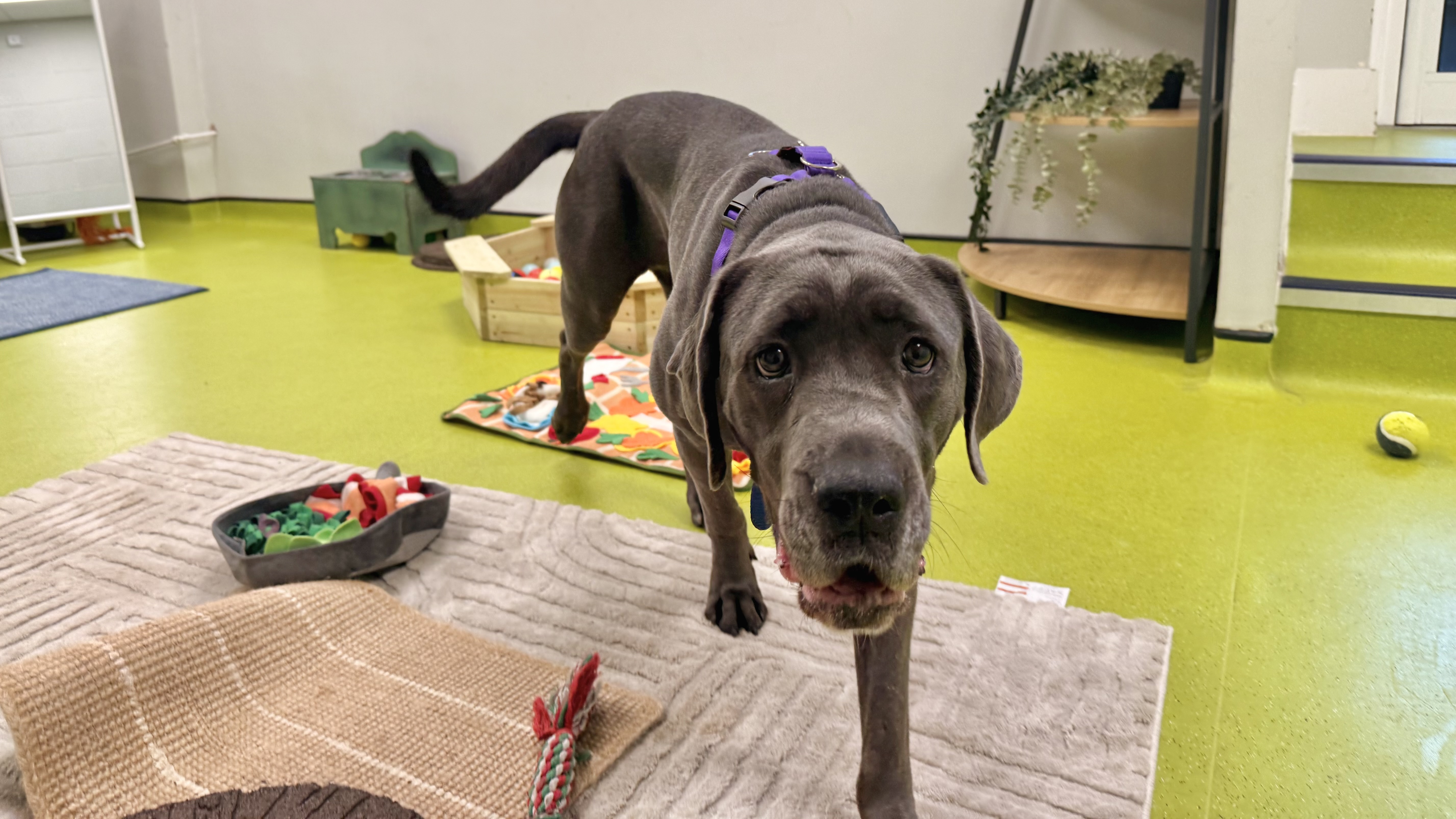 Roxy loves to explore new food enrichment and enjoys playing with toys. Roxy although has been worried outside and panics, we have taught her to utilise some tools that help her cope with her feelings, and become more settled and relaxed on her own.