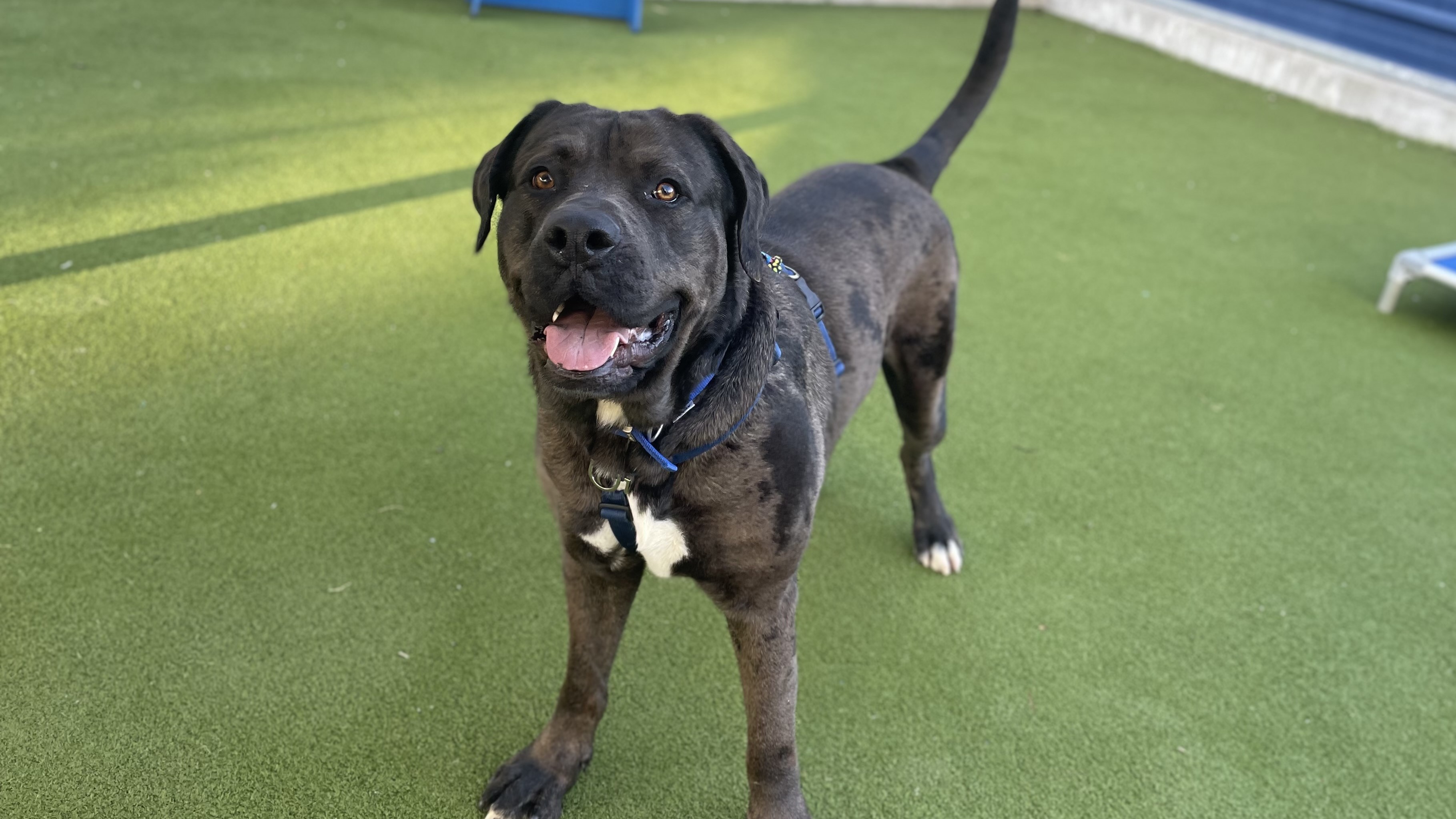 Scooby arrived at Battersea as a gift. He has a lovely history in his previous home with people, dogs and visiting children. Onsite, he has become a firm staff favourite due to his goofy and playful nature! He has bundles of energy to burn and sometimes forgets his own size, but there is not a bad bone in his body just a real zest for life.