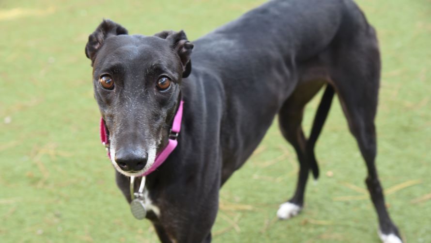 Shirley has met dogs of different sizes and has shown friendly behaviour. She can be a little worried when first seeing hello but quickly finds her confidence and can enjoy a calm interaction. She may be able to live with another dog of a similar temperament and can match her playstyle., another gentle Greyhound would be an ideal companion for her.