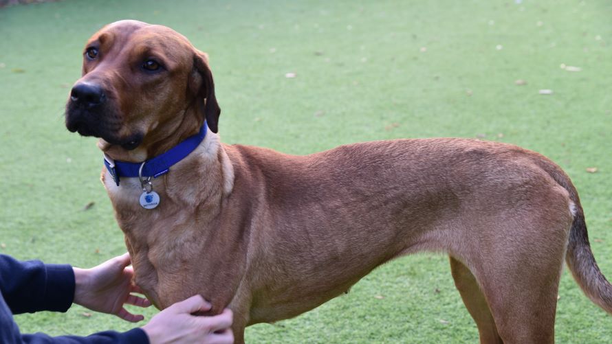 Silver is an endearing Rhodesian Ridgeback cross who enjoys zooming around off the lead in the paddocks here at Battersea Old Windsor.