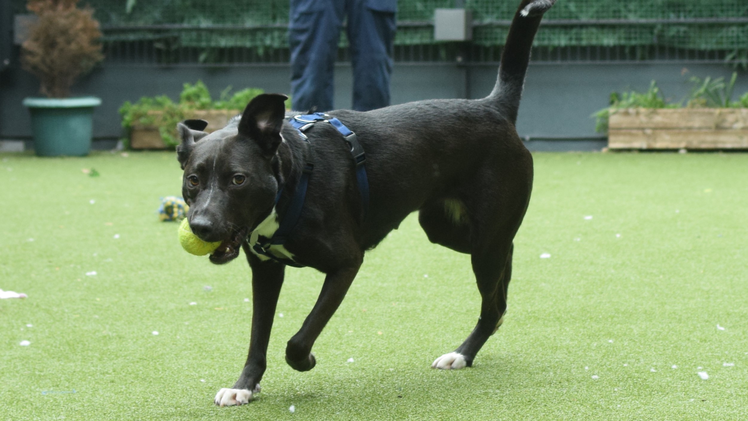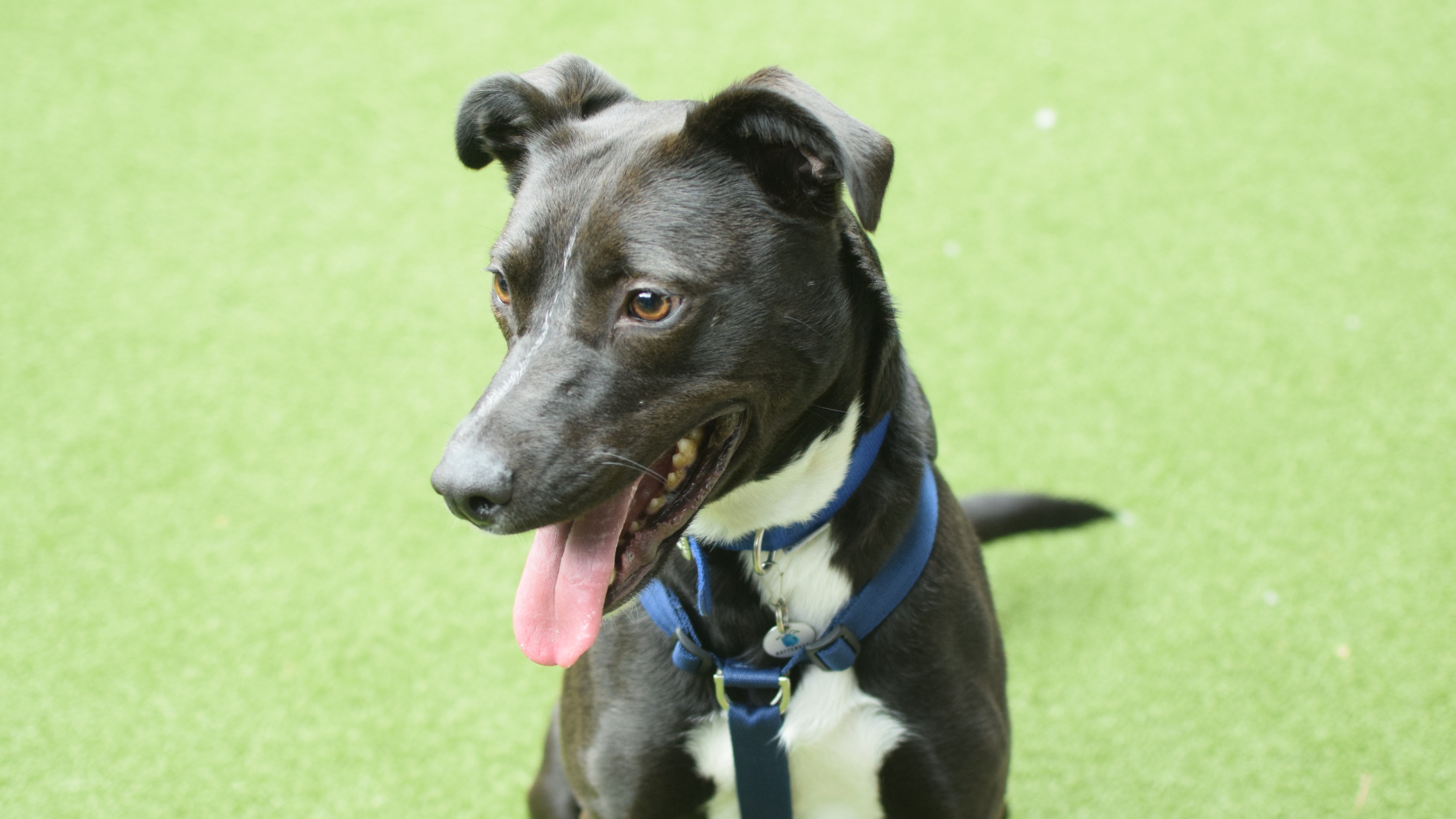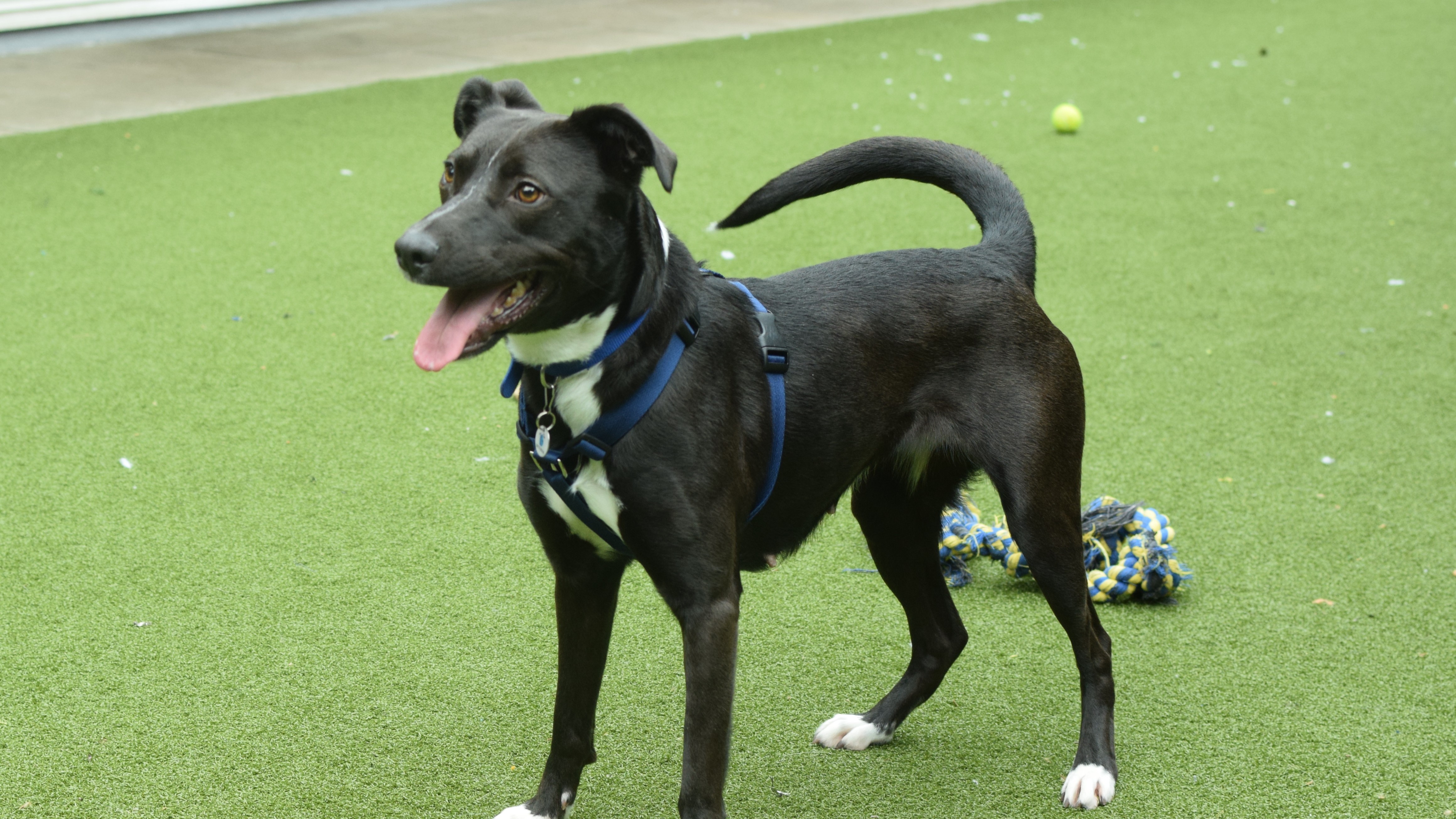 Since being under our care she has found kennel life difficult. Often very vocal, mostly for attention and has been reactive to dogs when on her walks. When meeting dogs, she can be friendly but will tell off if another dog is too much for her. We've seen some controlling behaviours at times towards other dogs which won't always be tolerated. She will need ongoing socialisation with steady matches that will tolerate her controlling side without being too much for her.