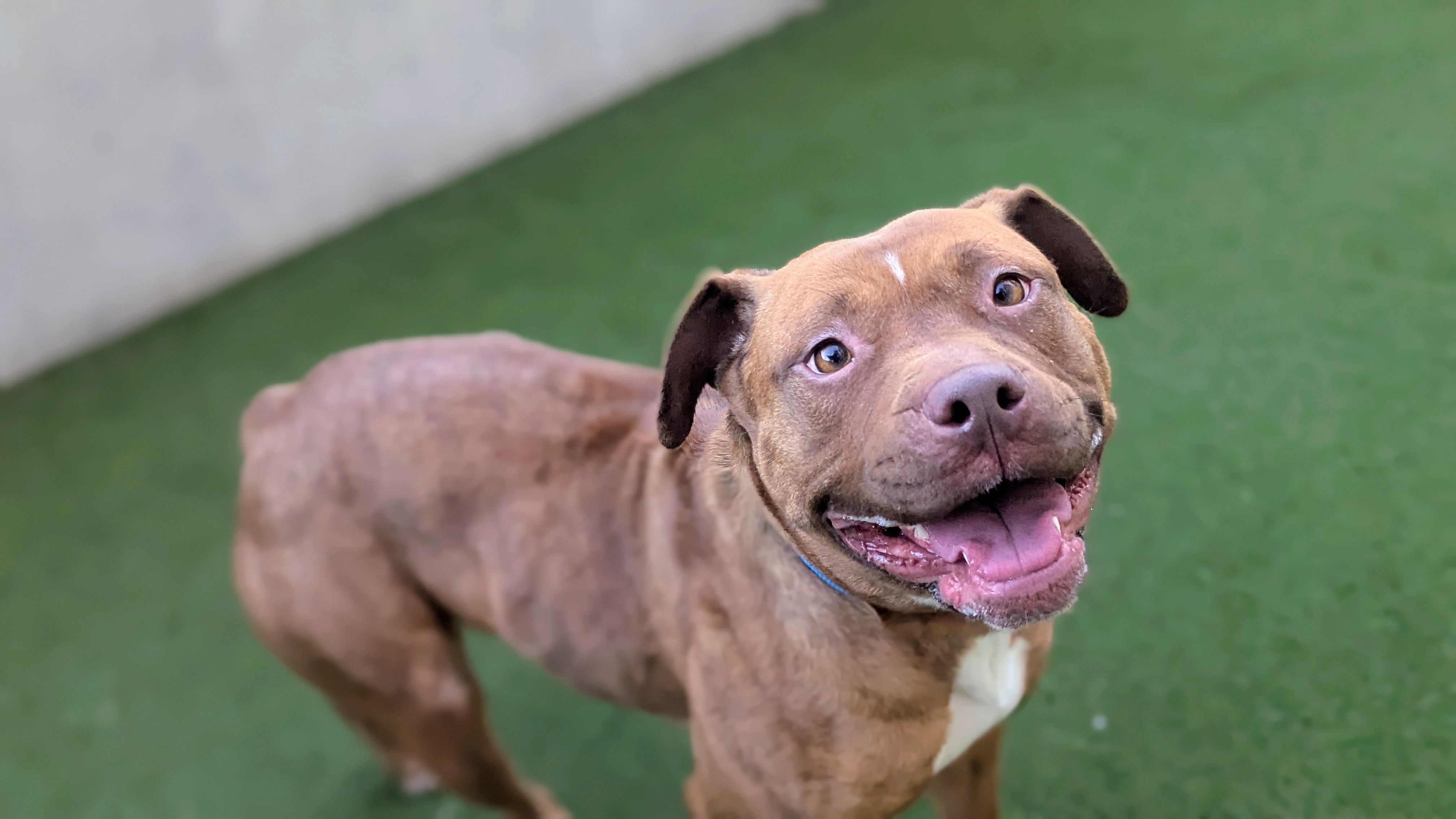 Stormy is looking for a home away form the inner city and would love to have access to her own private garden. She could live with older children/teenagers who are respectful of her space. This beautiful girl has so much love to give and has won staff over with her bouncy and affectionate nature. She would be the most wonderful of companions in any household lucky enough to have her.