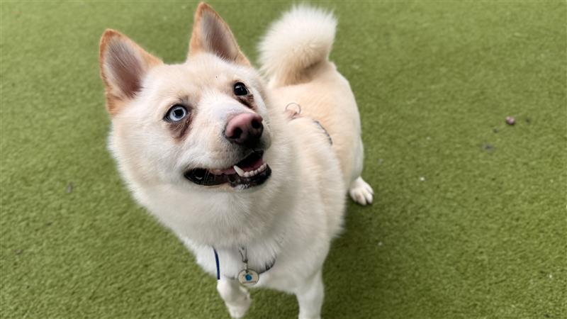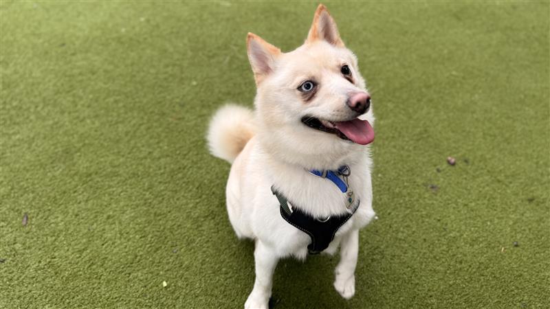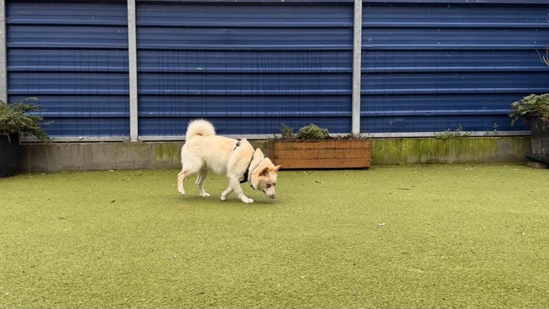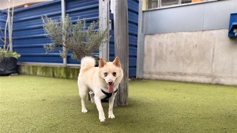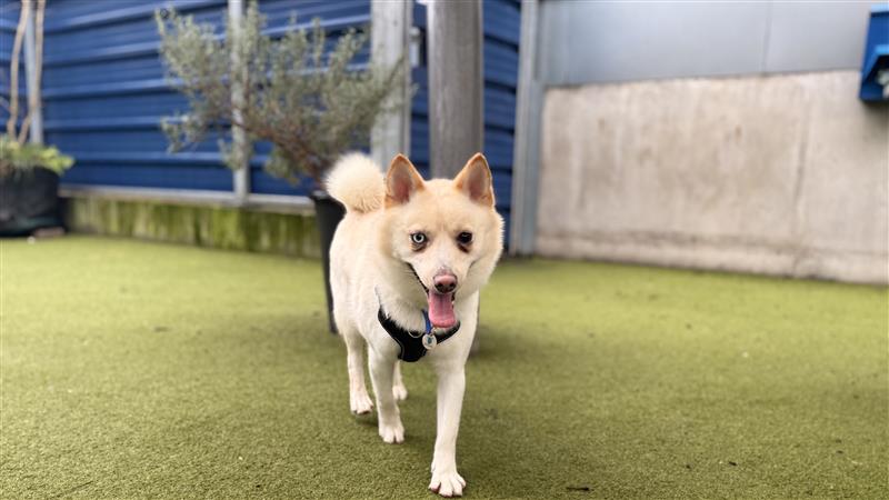 Sunny is a beautiful mixed breed dog, with a dense fluffy coat and captivating eyes. He loves his people and will approach for a fuss, especially under the chin, and is also known to give you his paw to hold.